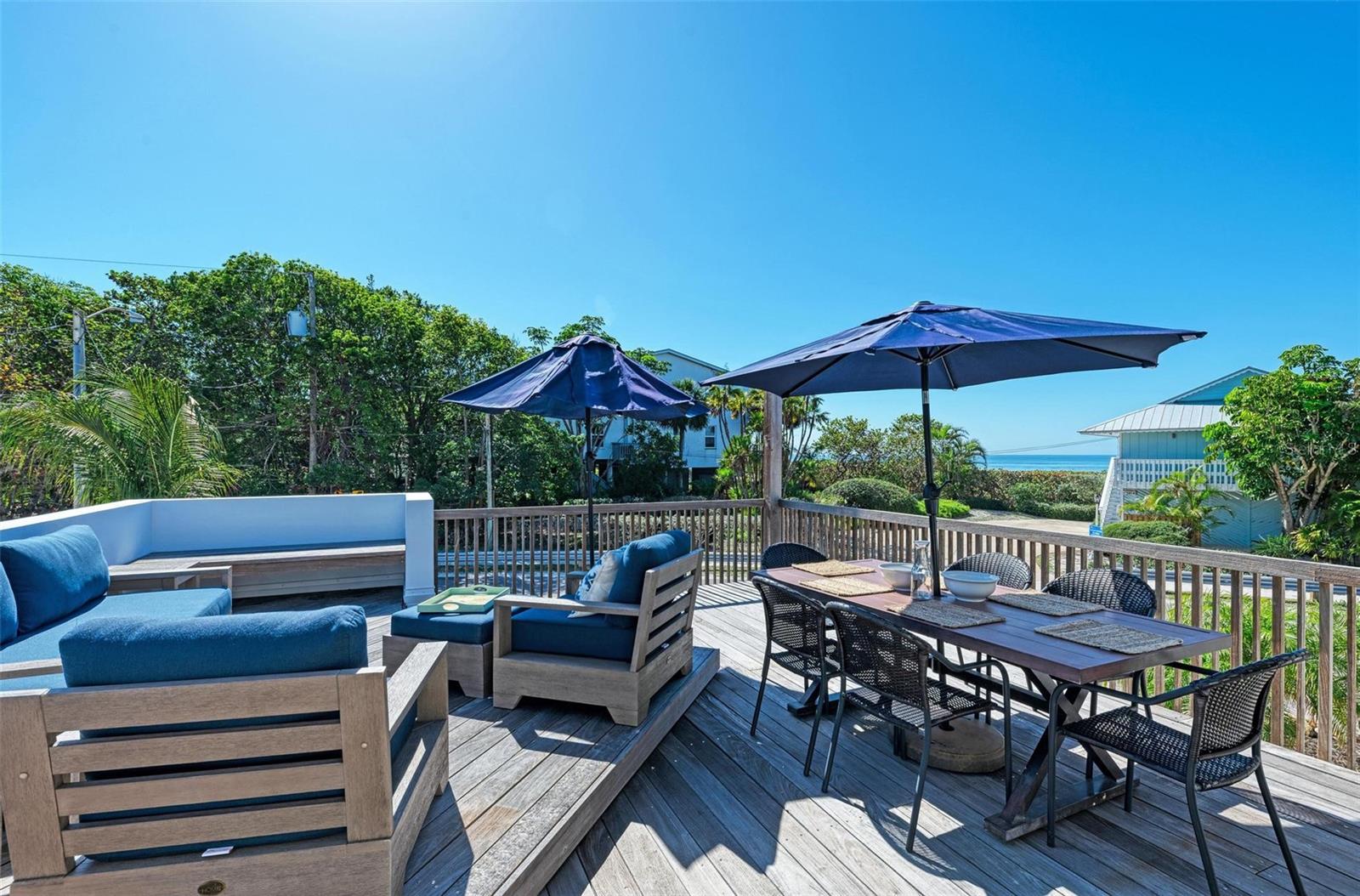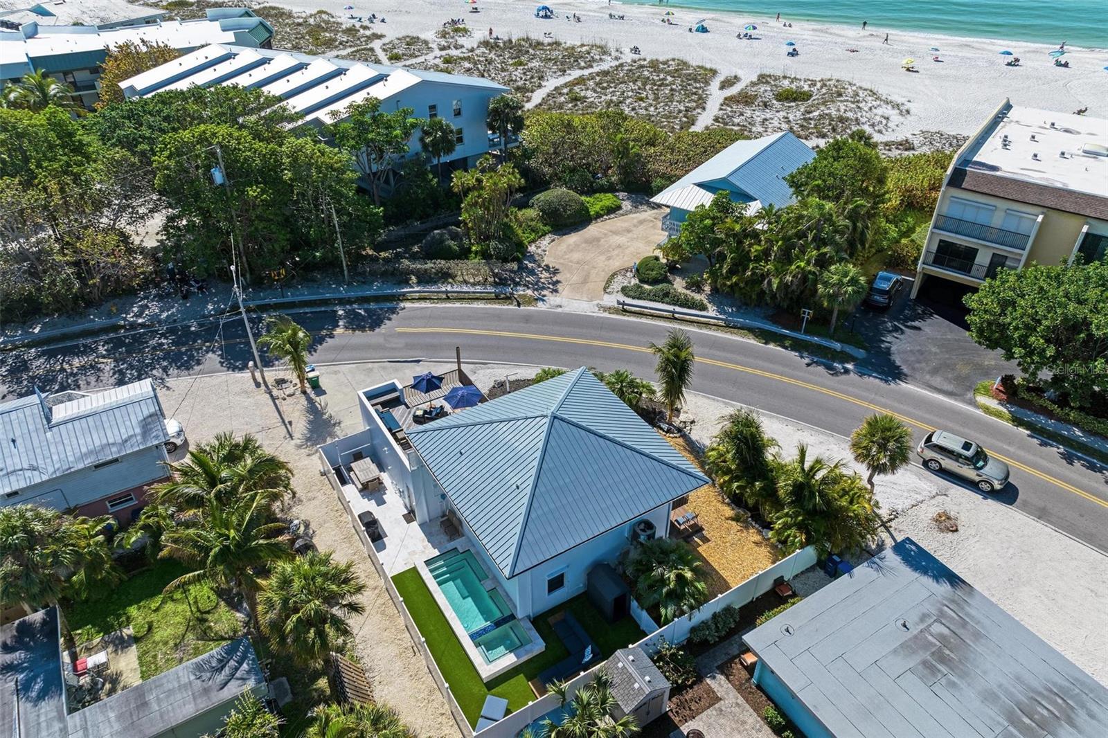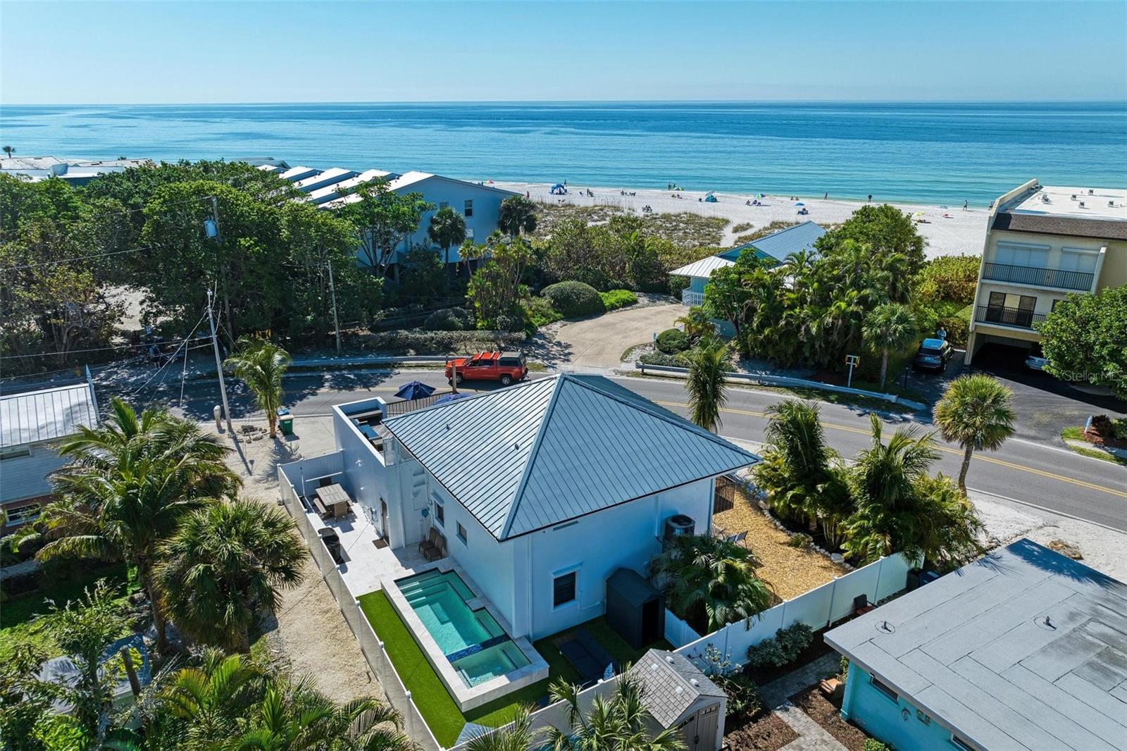 Beautiful sunsets from the rooftop deck with views of the Gulf of Mexico are waiting for you, just bring the wine. This home has it all. Location, design by Frank Lloyd Wright Fellow, H. Patterson Fletcher, views of the Gulf and a newly built private pool oasis. Three bedrooms, two bathrooms and a roof top deck. Built to stay, this property and is currently up and running as a vacation rental with rental history available. Just a short walk across the street down a sandy path and you are at the beach, just pack your shoulder bag and you are there! This property is priced to sell, bring your offers!