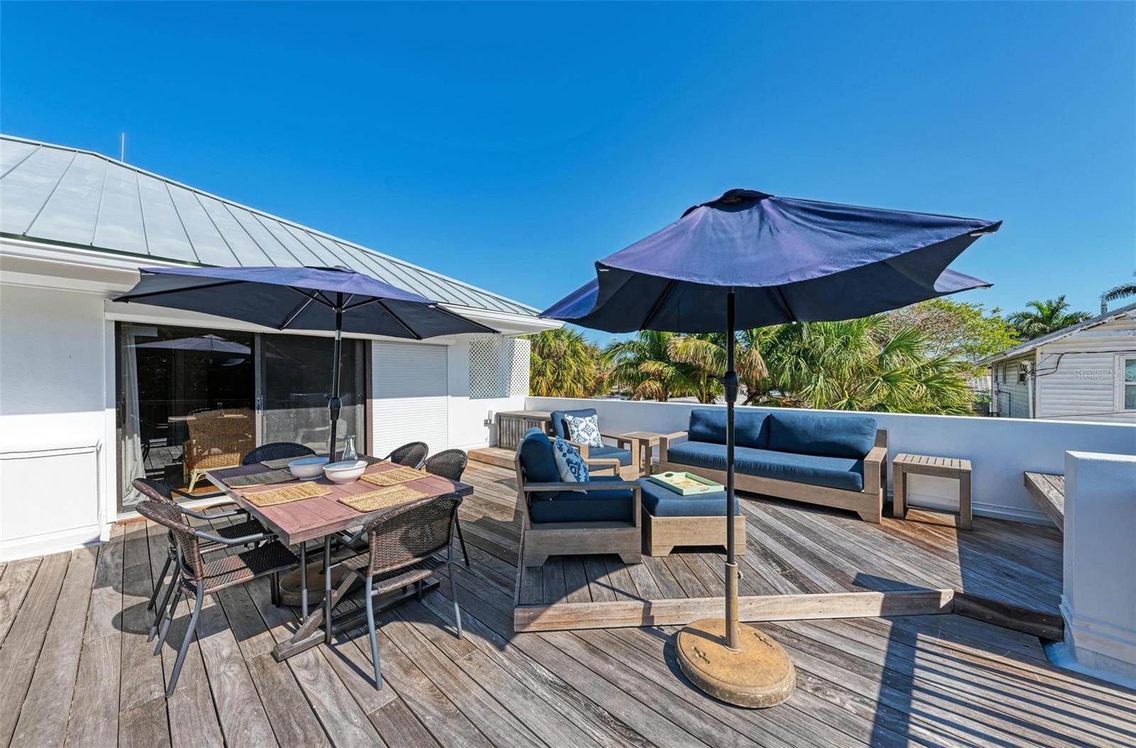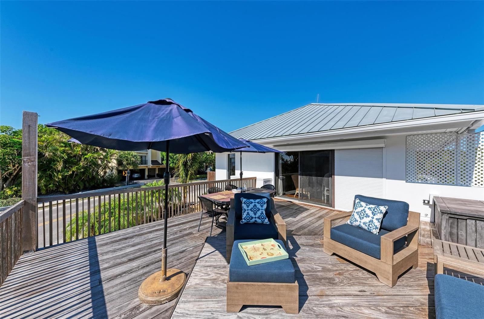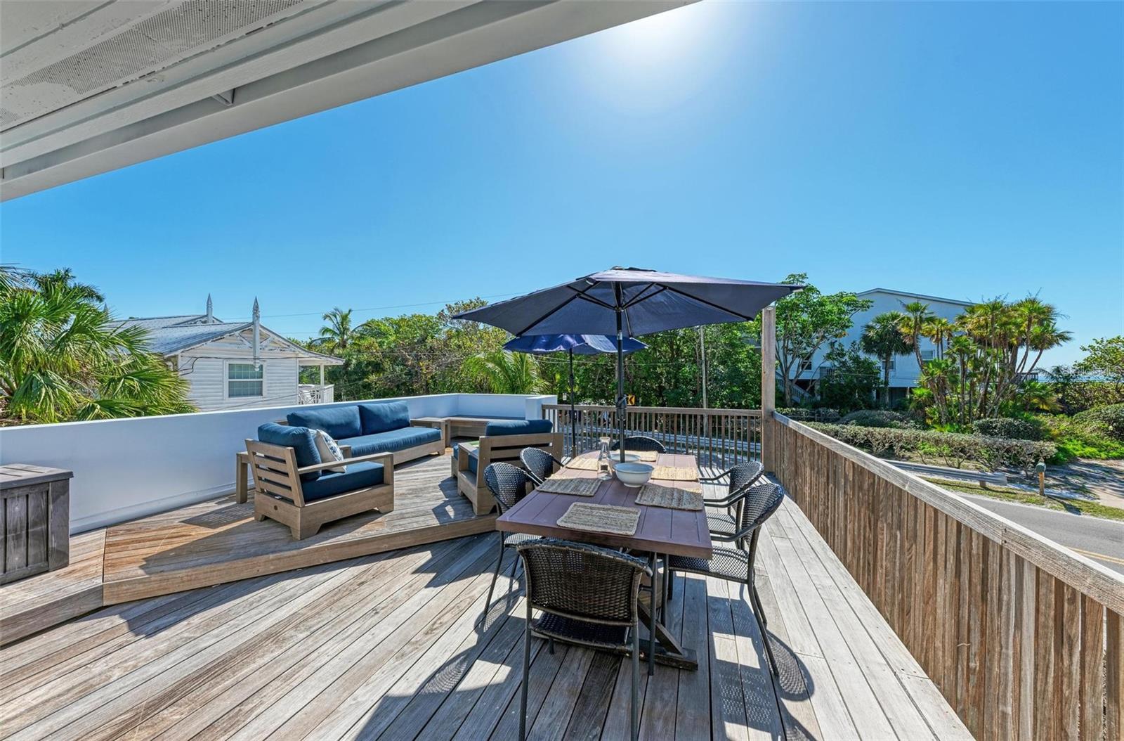 Beautiful sunsets from the rooftop deck with views of the Gulf of Mexico are waiting for you, just bring the wine. This home has it all. Location, design by Frank Lloyd Wright Fellow, H. Patterson Fletcher, views of the Gulf and a newly built private pool oasis. Three bedrooms, two bathrooms and a roof top deck. Built to stay, this property and is currently up and running as a vacation rental with rental history available. Just a short walk across the street down a sandy path and you are at the beach, just pack your shoulder bag and you are there! This property is priced to sell, bring your offers!