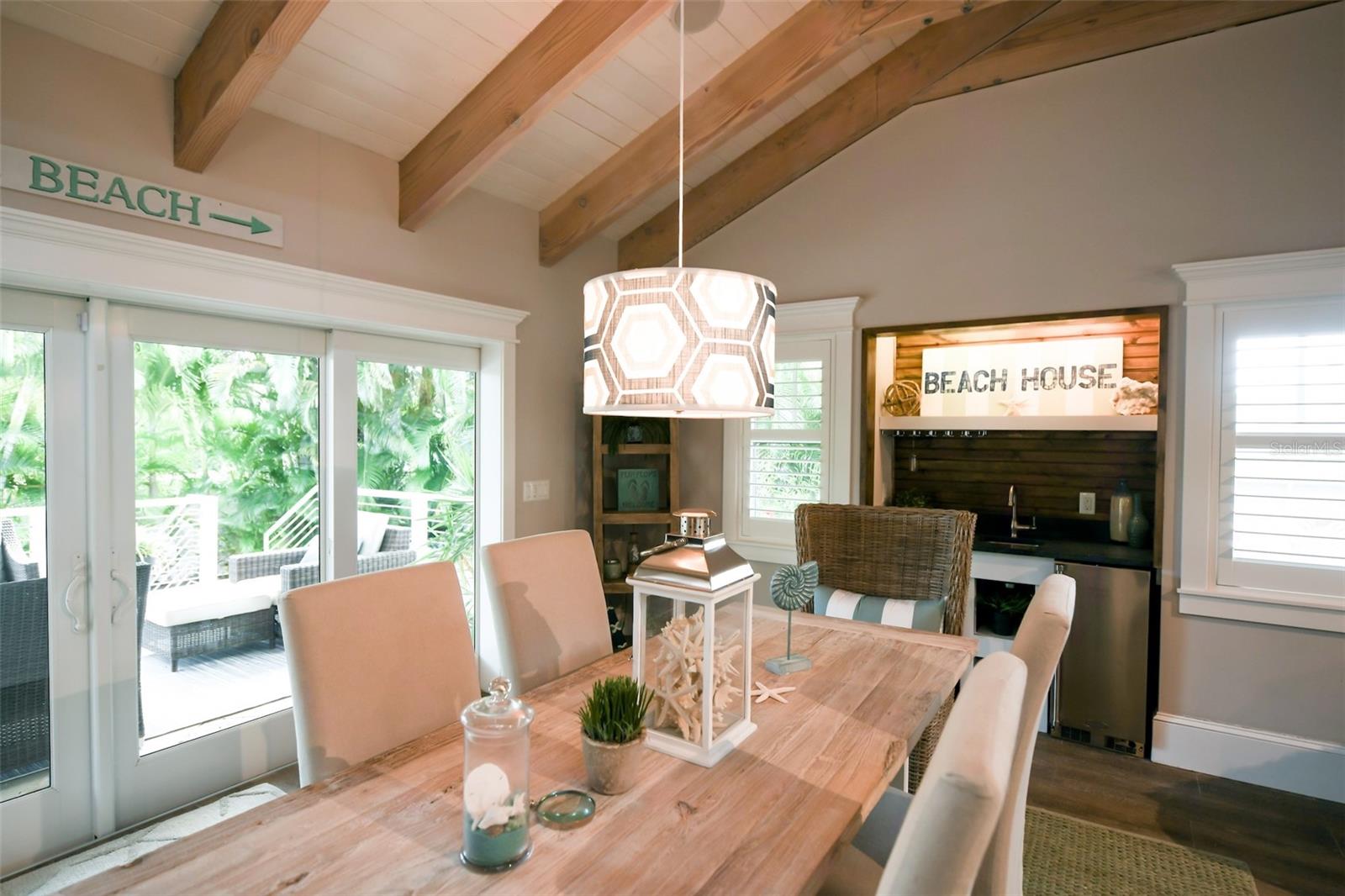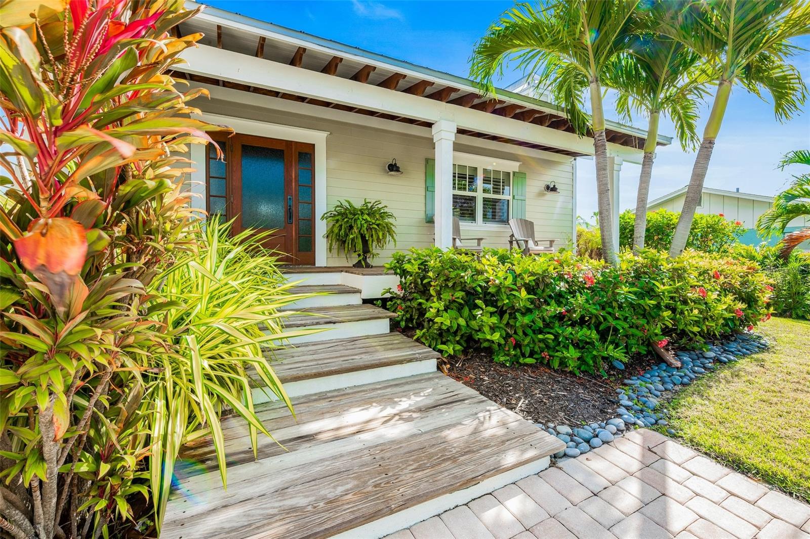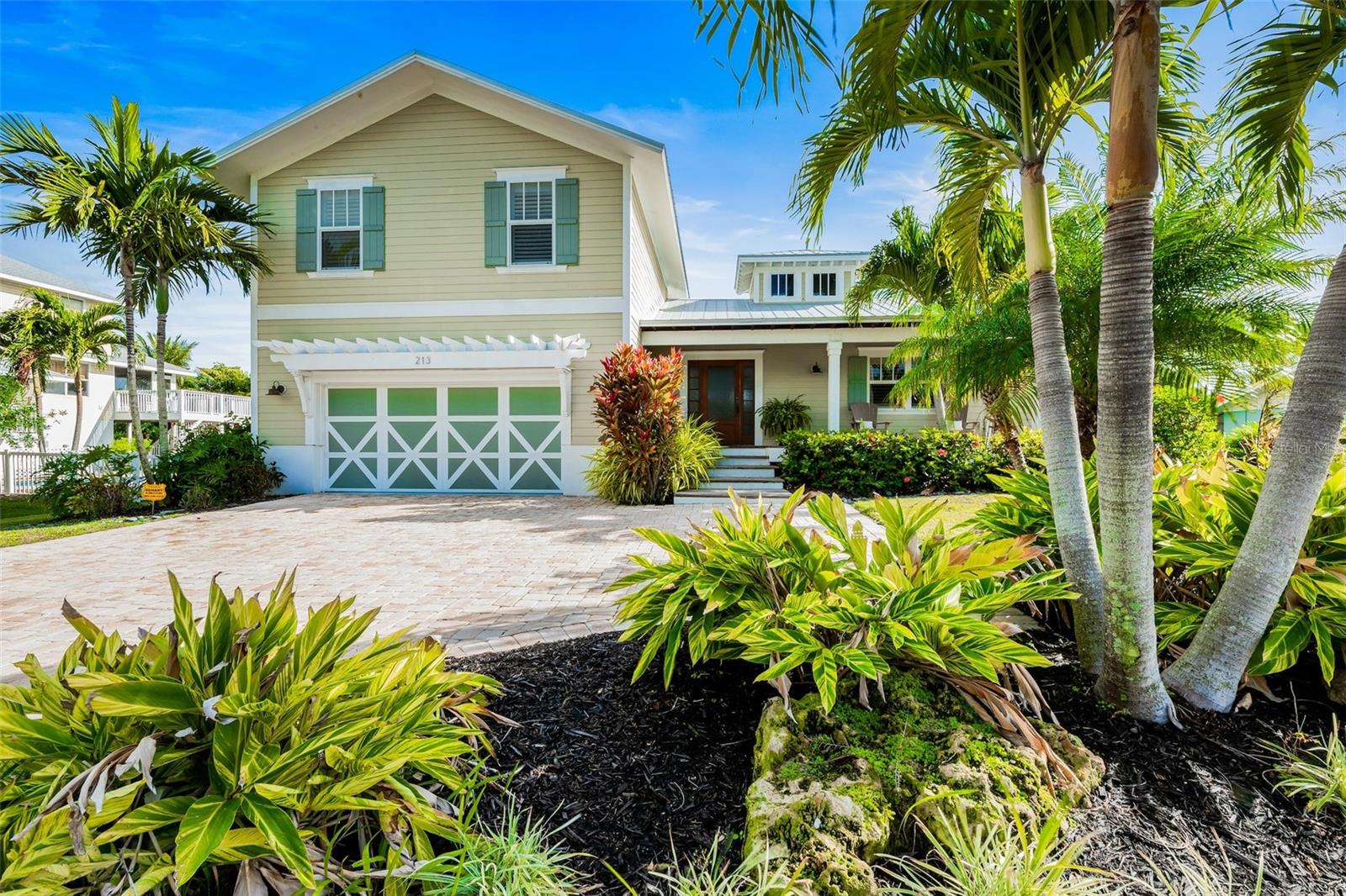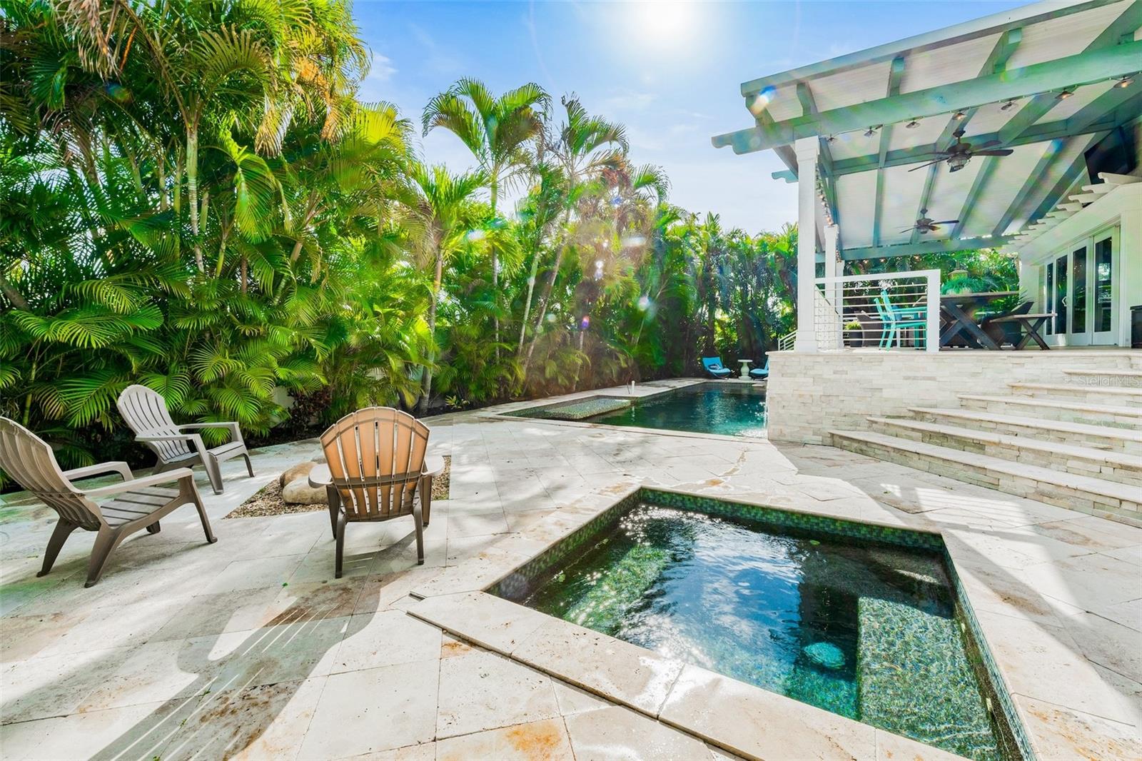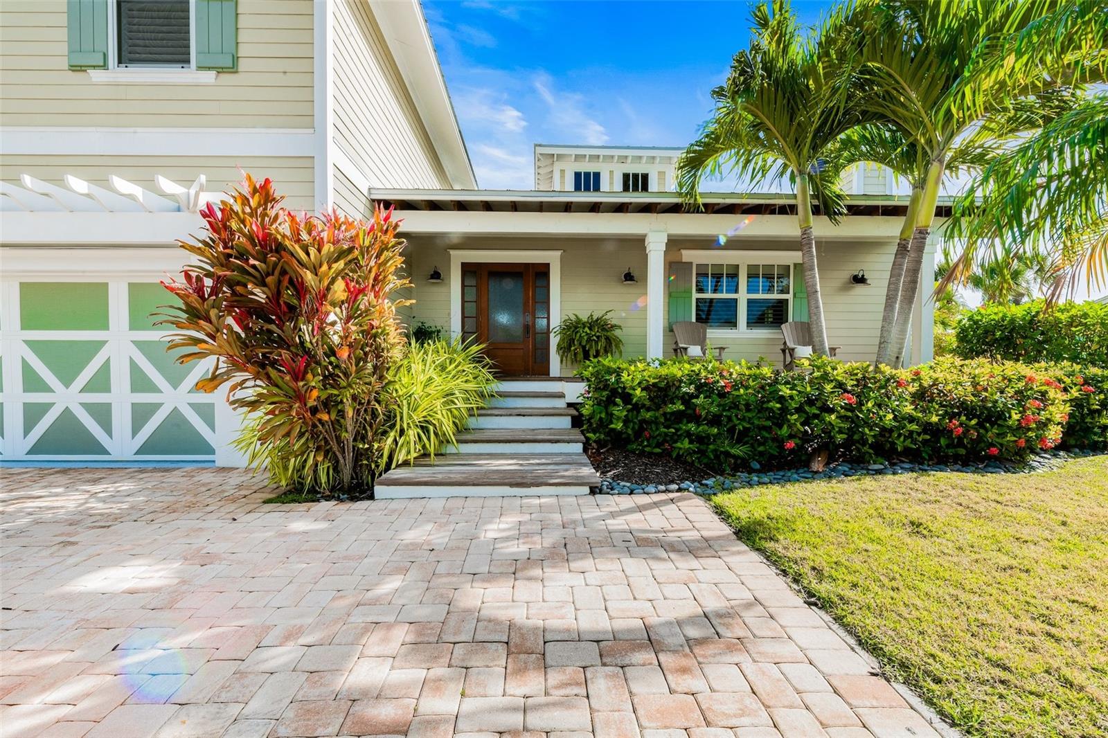 Slightly Elevated Coastal Gem with Reduced Flood Risk on Anna Maria Island! This stunning custom-built home sits on a gentle rise, offering enhanced drainage and a lower risk of flooding—an invaluable feature for island living. Turnkey furnished and thoughtfully designed, this coastal retreat features four spacious bedrooms and three modern bathrooms, blending comfort with luxury. Just a short stroll from the pristine beaches of Anna Maria Island, the home radiates tropical charm. Retractable glass doors seamlessly connect the dining room to the deck, inviting you to soak in serene views and ocean breezes. The great room boasts an open floor plan with vaulted ceilings, creating a bright and airy ambiance perfect for relaxing or entertaining. A stylish bar area adds a touch of beachy elegance, while the chef’s kitchen is a dream come true—complete with high-end stainless-steel appliances, a gas range stove, double ovens, a commercial-sized refrigerator, custom cabinetry with soapstone counters, and a large island with seating. The main bedroom is a luxurious retreat featuring a king-sized bed, private balcony, and an ensuite bathroom with a soaking tub, walk-in shower, custom cabinetry, and a spacious walk-in closet. Upstairs, two queen bedrooms are beautifully decorated in calming coastal hues and share a hall bathroom with a walk-in shower. The fourth bedroom, located downstairs, offers easy access to the backyard and another hall bathroom with a stunning walk-in shower. Outside, step into your private tropical paradise—featuring a sparkling pool with a tranquil waterfall, a built-in table for poolside lounging, a soothing spa, and a cozy gas firepit. Surrounded by lush, mature landscaping and ample lounge seating, this serene outdoor haven is perfect for both relaxation and entertaining. Zoned R1, the home allows for 30-night rentals and boasts a strong rental history, making it ideal for year-round living or part-time enjoyment with income potential. Bonus: an undeveloped deeded boat slip adds even more value to this exceptional property.