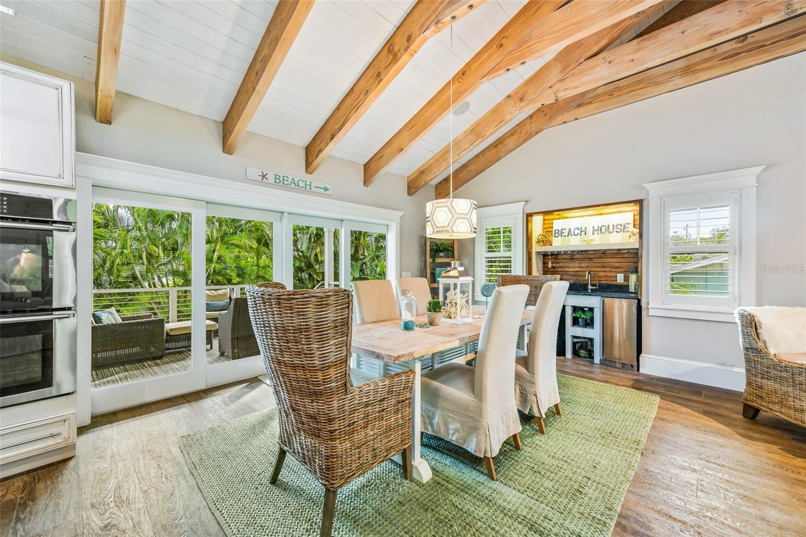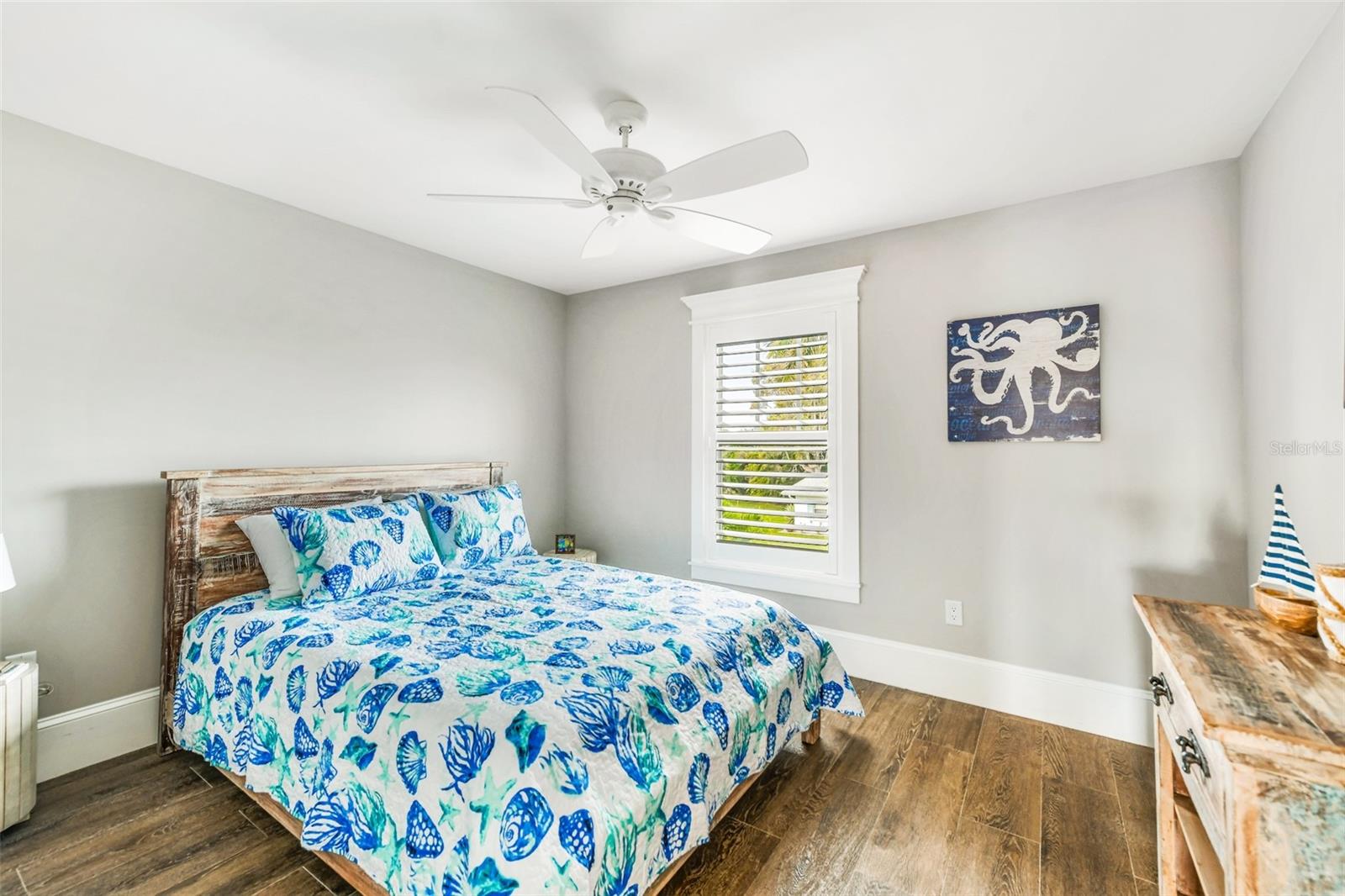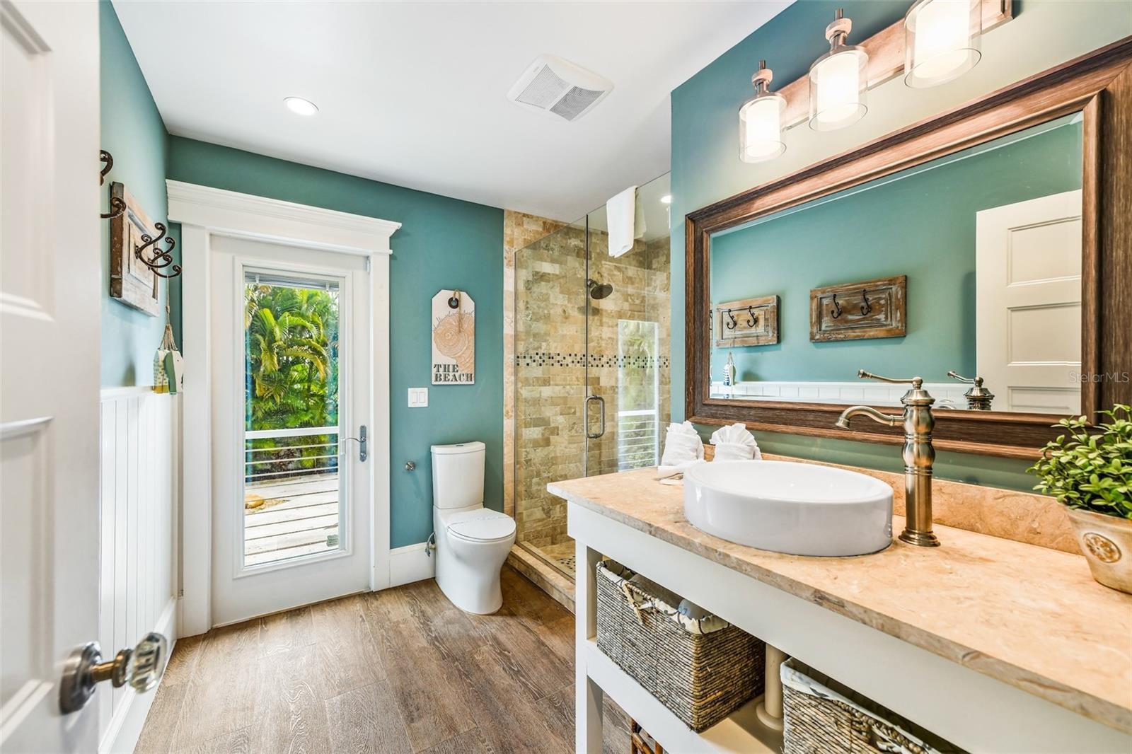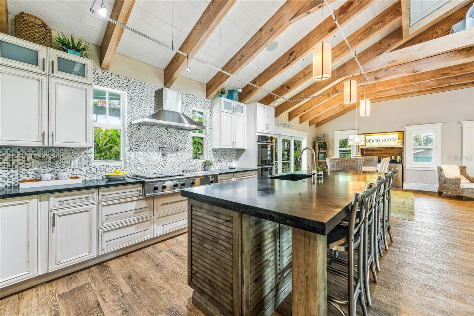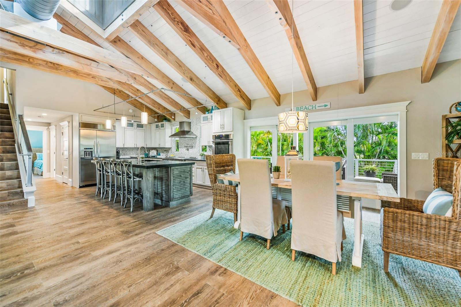 Slightly Elevated Coastal Gem with Reduced Flood Risk on Anna Maria Island! This stunning custom-built home sits on a gentle rise, offering enhanced drainage and a lower risk of flooding—an invaluable feature for island living. Turnkey furnished and thoughtfully designed, this coastal retreat features four spacious bedrooms and three modern bathrooms, blending comfort with luxury. Just a short stroll from the pristine beaches of Anna Maria Island, the home radiates tropical charm. Retractable glass doors seamlessly connect the dining room to the deck, inviting you to soak in serene views and ocean breezes. The great room boasts an open floor plan with vaulted ceilings, creating a bright and airy ambiance perfect for relaxing or entertaining. A stylish bar area adds a touch of beachy elegance, while the chef’s kitchen is a dream come true—complete with high-end stainless-steel appliances, a gas range stove, double ovens, a commercial-sized refrigerator, custom cabinetry with soapstone counters, and a large island with seating. The main bedroom is a luxurious retreat featuring a king-sized bed, private balcony, and an ensuite bathroom with a soaking tub, walk-in shower, custom cabinetry, and a spacious walk-in closet. Upstairs, two queen bedrooms are beautifully decorated in calming coastal hues and share a hall bathroom with a walk-in shower. The fourth bedroom, located downstairs, offers easy access to the backyard and another hall bathroom with a stunning walk-in shower. Outside, step into your private tropical paradise—featuring a sparkling pool with a tranquil waterfall, a built-in table for poolside lounging, a soothing spa, and a cozy gas firepit. Surrounded by lush, mature landscaping and ample lounge seating, this serene outdoor haven is perfect for both relaxation and entertaining. Zoned R1, the home allows for 30-night rentals and boasts a strong rental history, making it ideal for year-round living or part-time enjoyment with income potential. Bonus: an undeveloped deeded boat slip adds even more value to this exceptional property.