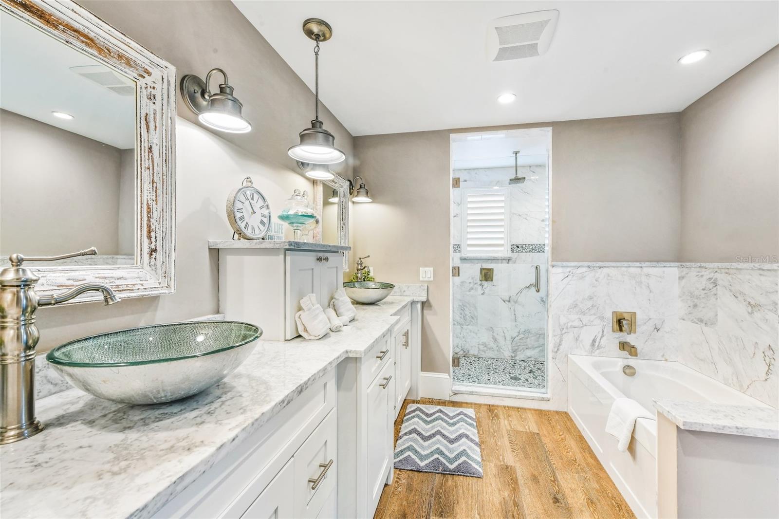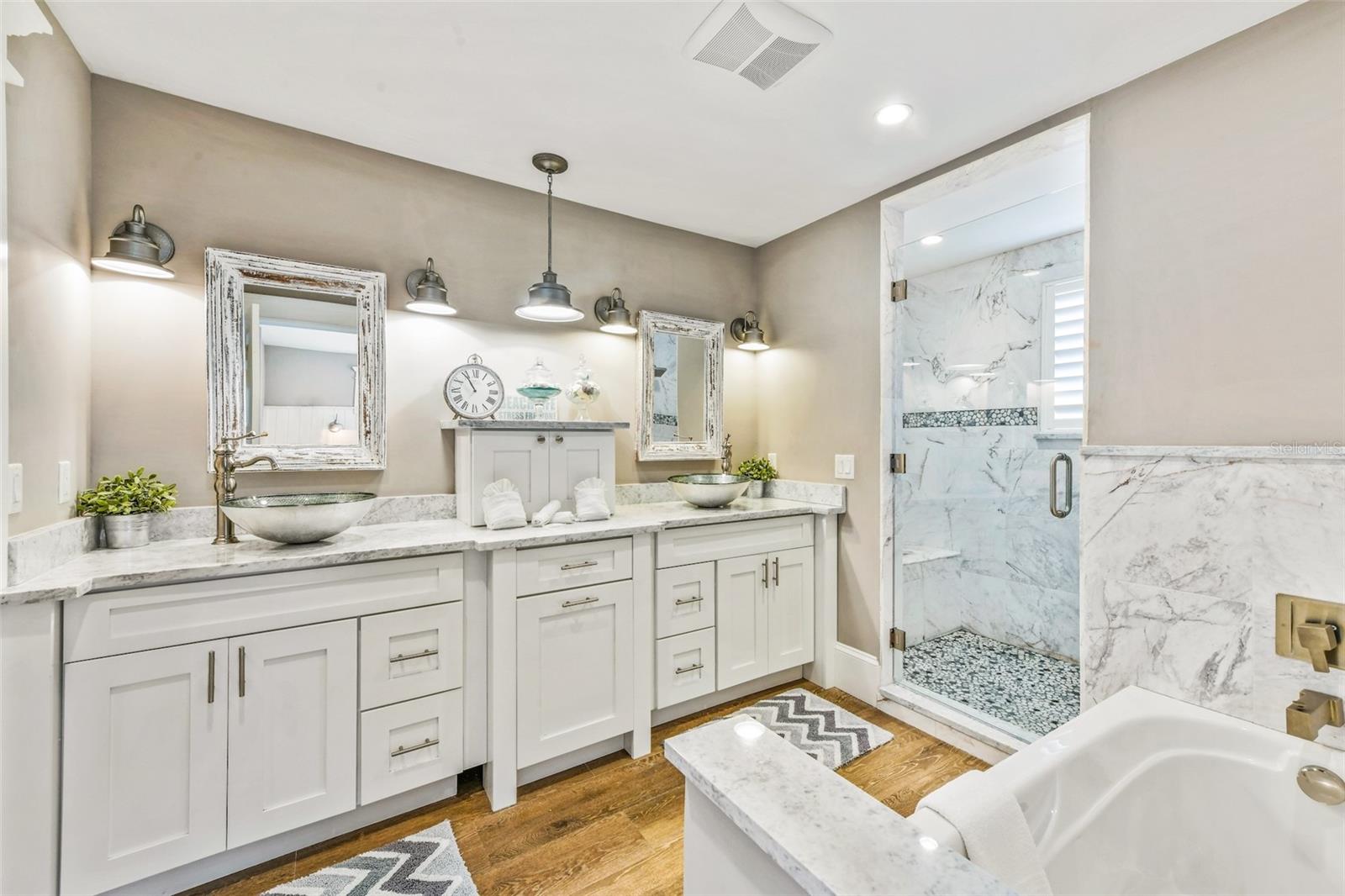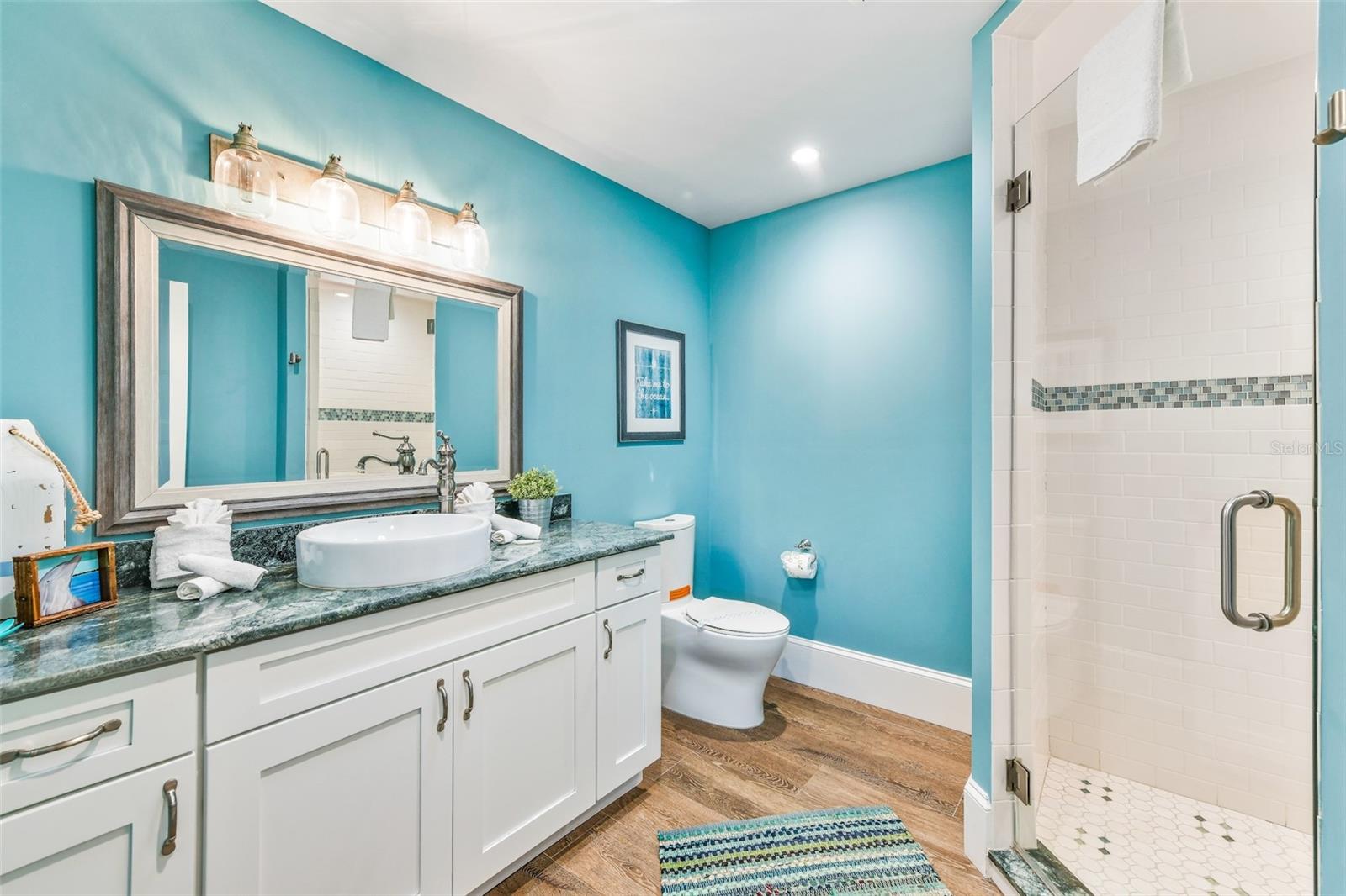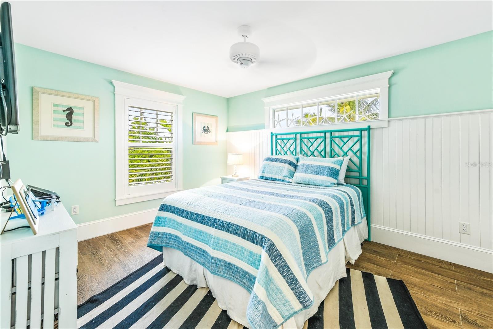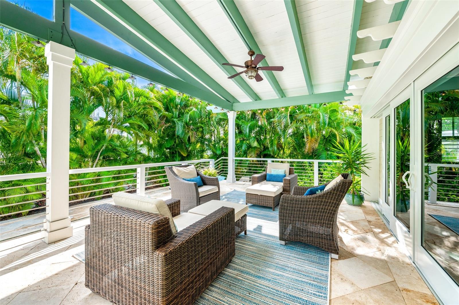 Slightly Elevated Coastal Gem with Reduced Flood Risk on Anna Maria Island! This stunning custom-built home sits on a gentle rise, offering enhanced drainage and a lower risk of flooding—an invaluable feature for island living. Turnkey furnished and thoughtfully designed, this coastal retreat features four spacious bedrooms and three modern bathrooms, blending comfort with luxury. Just a short stroll from the pristine beaches of Anna Maria Island, the home radiates tropical charm. Retractable glass doors seamlessly connect the dining room to the deck, inviting you to soak in serene views and ocean breezes. The great room boasts an open floor plan with vaulted ceilings, creating a bright and airy ambiance perfect for relaxing or entertaining. A stylish bar area adds a touch of beachy elegance, while the chef’s kitchen is a dream come true—complete with high-end stainless-steel appliances, a gas range stove, double ovens, a commercial-sized refrigerator, custom cabinetry with soapstone counters, and a large island with seating. The main bedroom is a luxurious retreat featuring a king-sized bed, private balcony, and an ensuite bathroom with a soaking tub, walk-in shower, custom cabinetry, and a spacious walk-in closet. Upstairs, two queen bedrooms are beautifully decorated in calming coastal hues and share a hall bathroom with a walk-in shower. The fourth bedroom, located downstairs, offers easy access to the backyard and another hall bathroom with a stunning walk-in shower. Outside, step into your private tropical paradise—featuring a sparkling pool with a tranquil waterfall, a built-in table for poolside lounging, a soothing spa, and a cozy gas firepit. Surrounded by lush, mature landscaping and ample lounge seating, this serene outdoor haven is perfect for both relaxation and entertaining. Zoned R1, the home allows for 30-night rentals and boasts a strong rental history, making it ideal for year-round living or part-time enjoyment with income potential. Bonus: an undeveloped deeded boat slip adds even more value to this exceptional property.