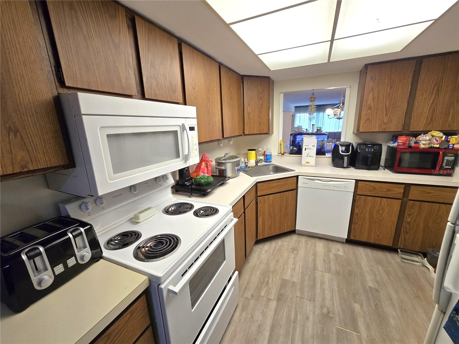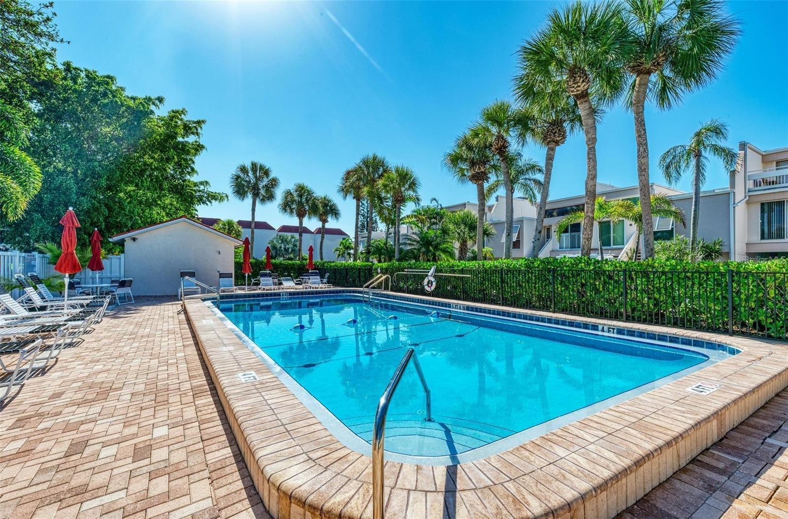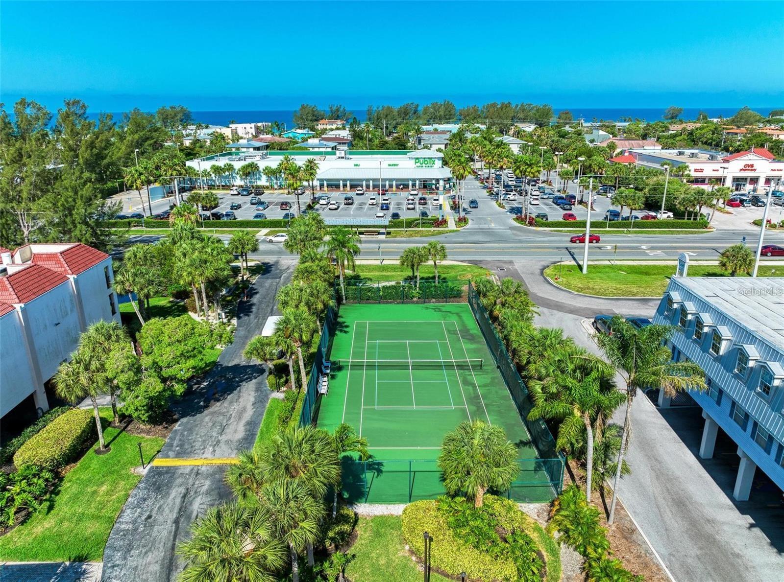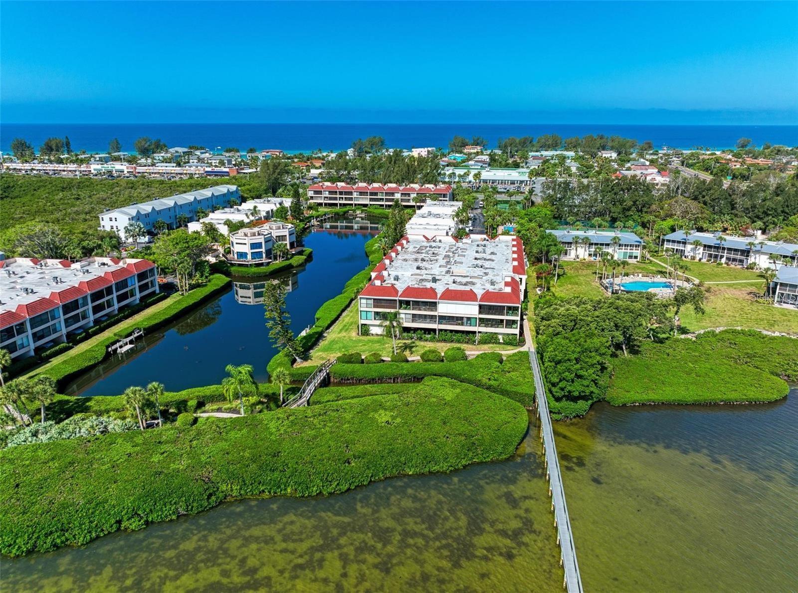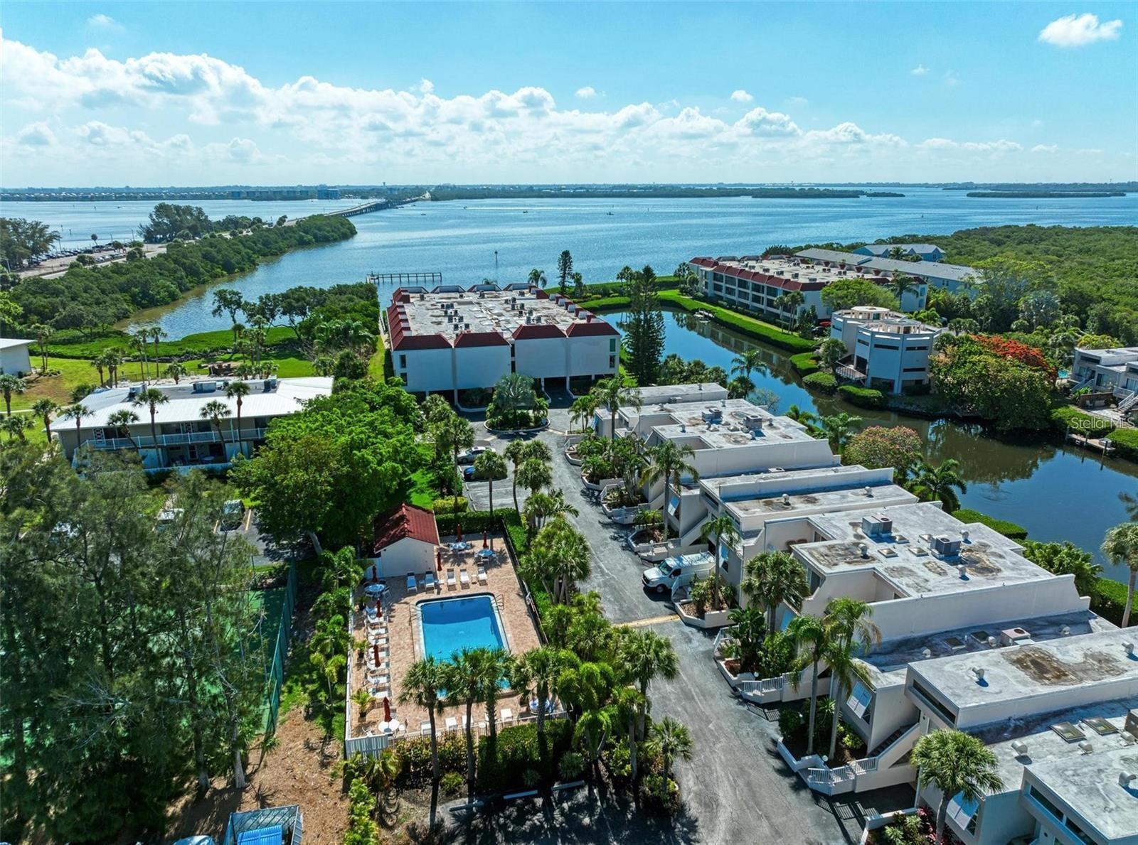 Great location for this 2bd 2bath condo. Open living /dining areas. Nice views of the pool and landscaping from your lanai. The back of the complex is a waterfront oasis with beautiful grounds, a fishing pier on the bay with places to dock a boat for the day and 4 kayak launches. There are two community pools, tennis courts, pickle ball, under building parking and inside storage cages for each condo. This building also has a fitness room, meeting/party room, room for inside storage of bikes, workshop with shelf for each resident to keep materials, a kayak rack under building. Easy walk to the beach. Outside grill available. Close to Publix, shops, restaurants, etc. Condo needs updating but would make a great investment, second or owner-occupied home. Priced to sell!