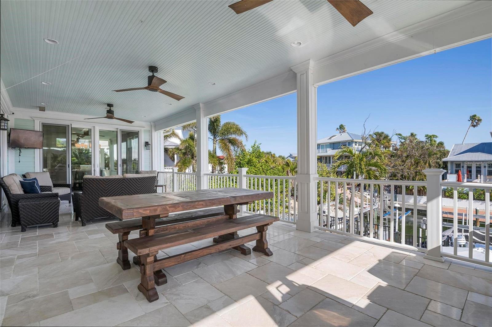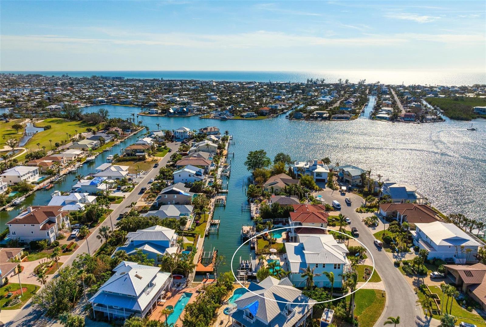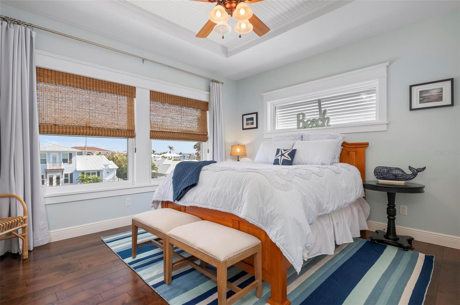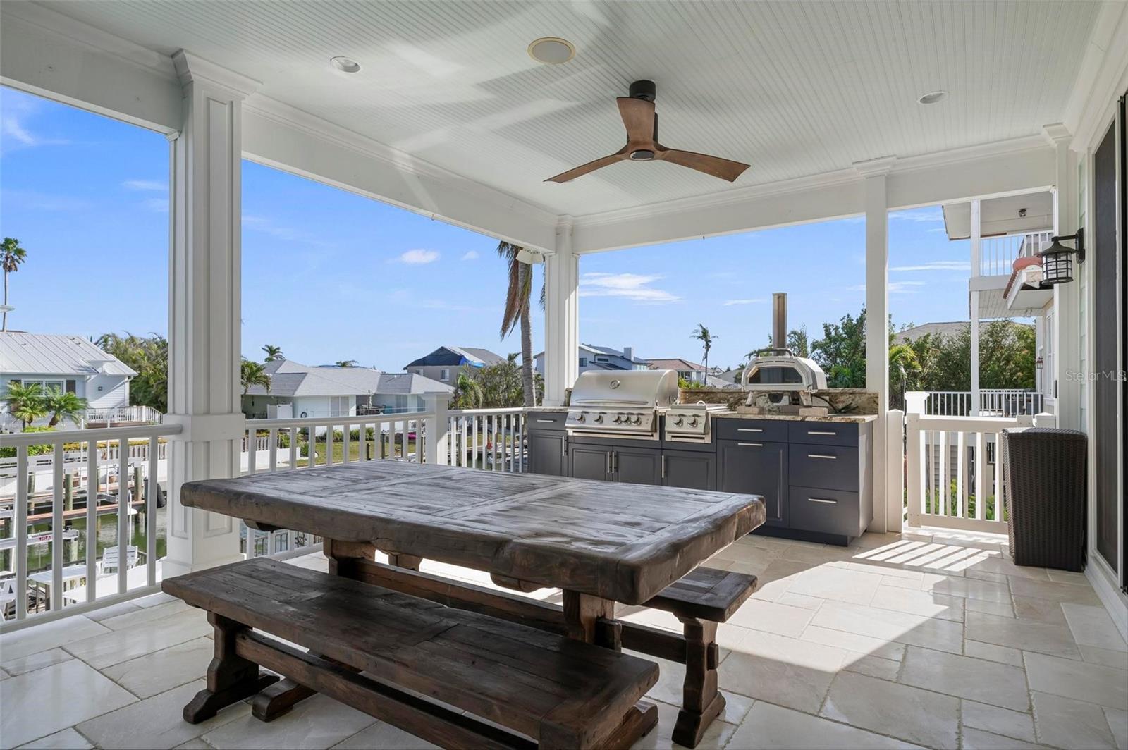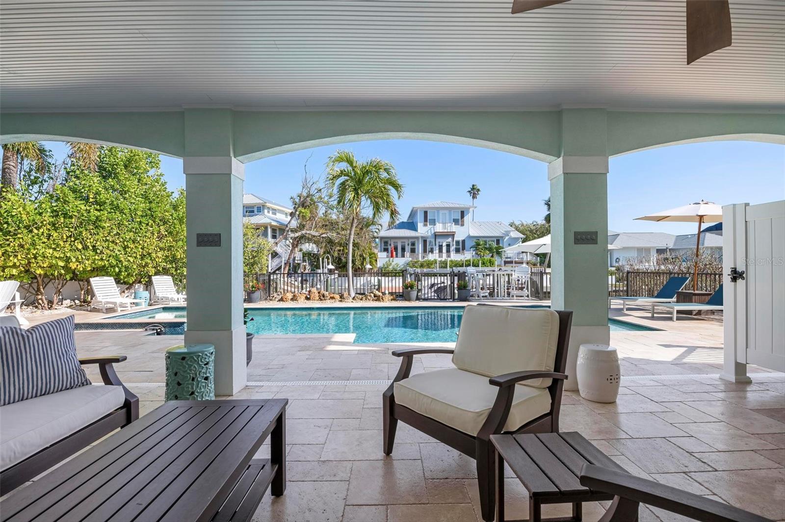 WATERFRONT LUXURY HOME ON ANNA MARIA ISLAND! This elevated home in the coveted Key Royale community had no flood, roof, or soffit damage from the recent storms. This beautiful coastal retreat has multiple balconies which provide stunning views of Bimini Bay and Tampa Bay where you can enjoy your morning coffee or admire the breathtaking sunsets. Ideally located in the North Point Harbour community of Key Royale (which has one of the highest elevations on Anna Maria Island) residents have exclusive access to tennis, pickleball, swimming, and social events and just 2 blocks from the private Key Royale Golf Club. This furnished home offers a relaxed coastal lifestyle perfect for a quiet get-away or for hosting family and friends. The natural light-filled home provides flexibility and comfort with 4 bedrooms, 3 full bathrooms + 2 half bathrooms, an office, and a spacious bonus room with wet bar. Wake up to spectacular Bay views from your upper-level primary suite then revitalize in the serene en-suite bath. Or retreat to the secondary primary en-suite on the main level for ease of access. The gourmet kitchen is a chef’s dream, featuring Wolf/Thermador/Bosch appliances, custom cabinetry, 10-foot marble island, and a bar/pantry complete with a wine chiller and beverage fridge. Ideal for entertaining or relaxing, the spacious living areas include a great room with a fireplace and dining areas with 9.5-foot ceilings and extensive detailed trim. Several large sliding doors open to the expansive rear covered balcony featuring an outdoor kitchen which is perfect for BBQs and watching the manatees and dolphins who are frequent visitors in the canal. Additional outdoor luxuries include another large covered living/dining area adjacent to the heated saltwater pool with sun shelf and waterfall spa, a dock with lift, a floating dock, an outdoor shower, and a gas fire pit. An elevator shaft to all levels, a fishing tackle room, exterior storage room for pool toys or beach gear, versatile lower-level areas, and an expanded garage for your golf cart and bikes make this the ultimate island home. Being on the nearest canal to Tampa Bay through the Bimini Bay channel, you have the easiest access for all your water activities. This home is the perfect blend of elegance and relaxation as your full-time residence or your seasonal tranquil escape. Call for a private showing today.