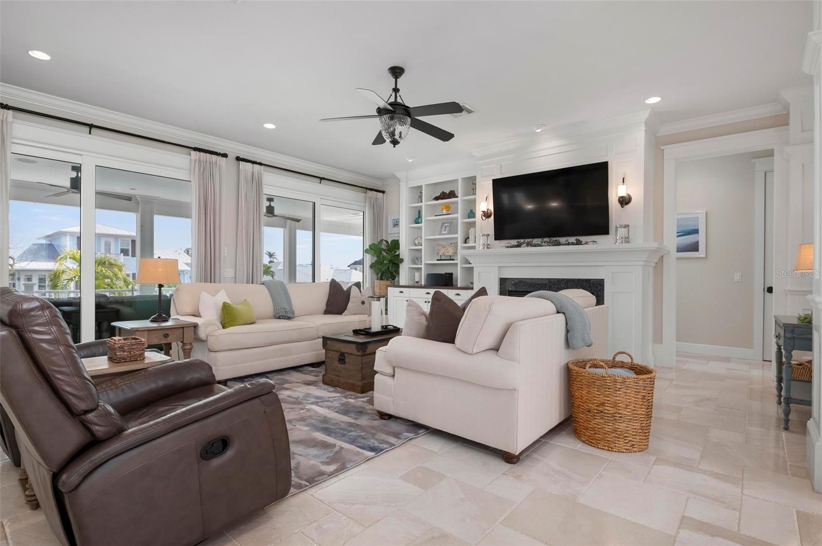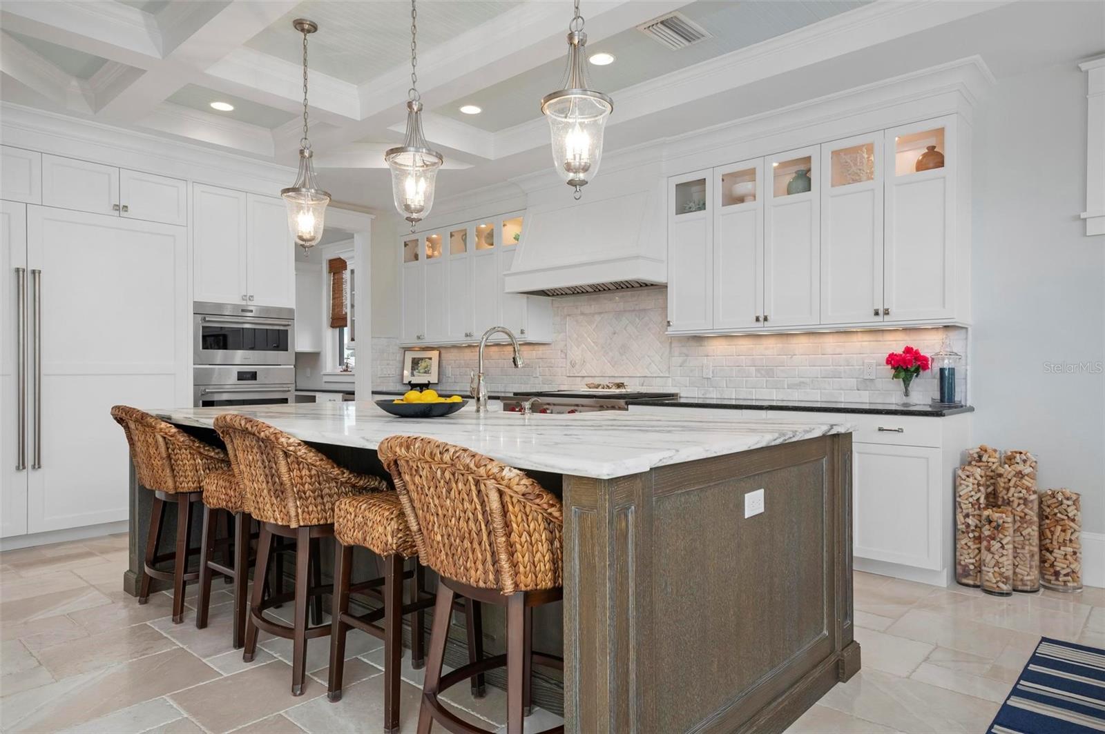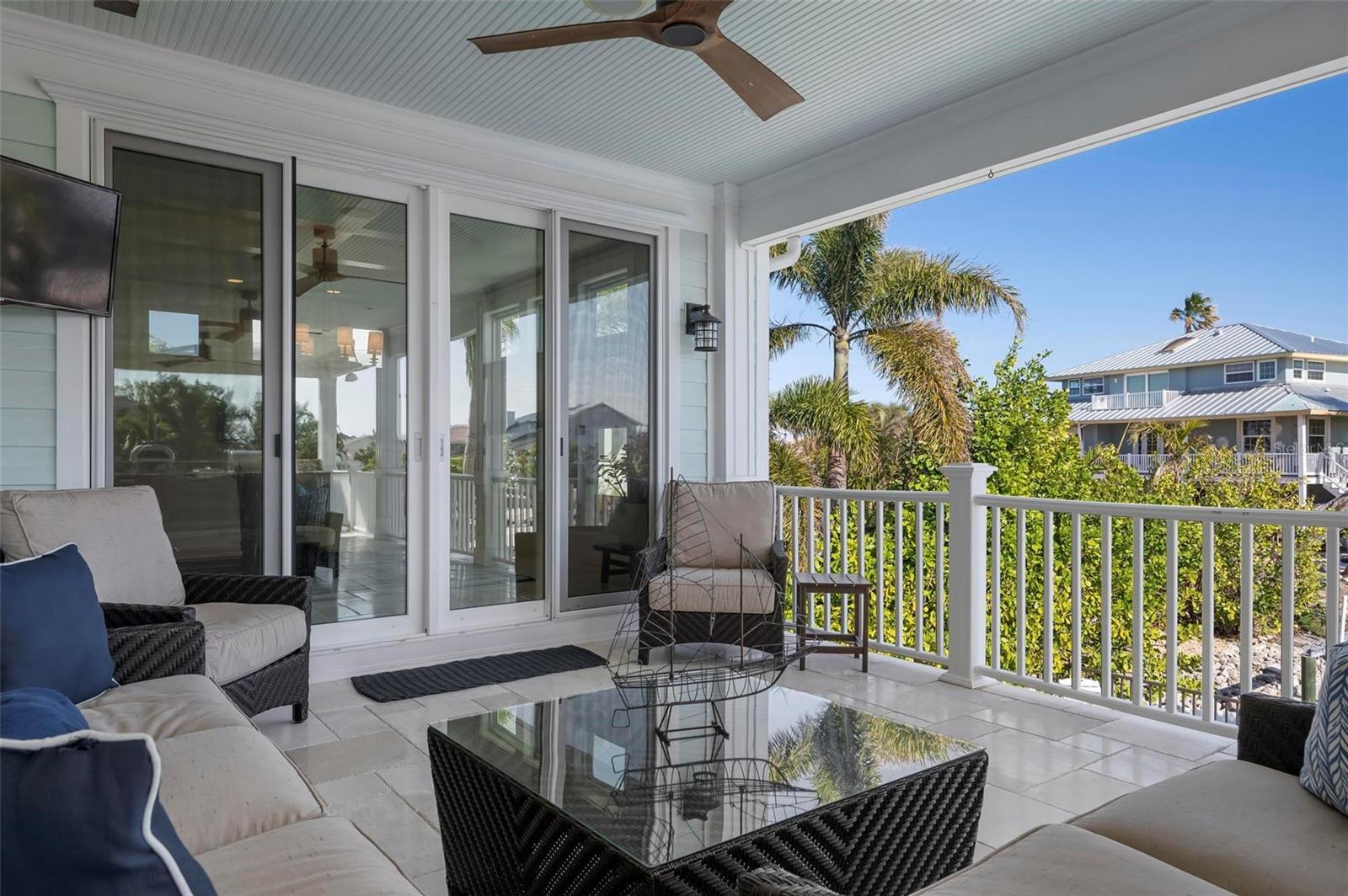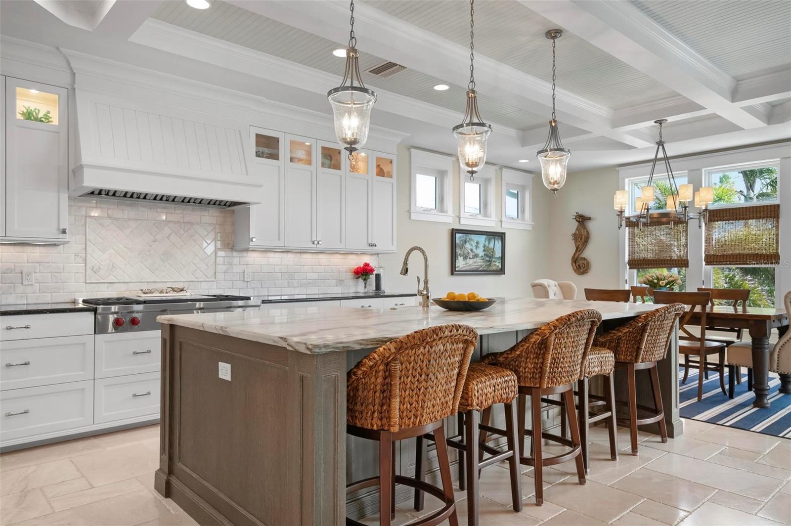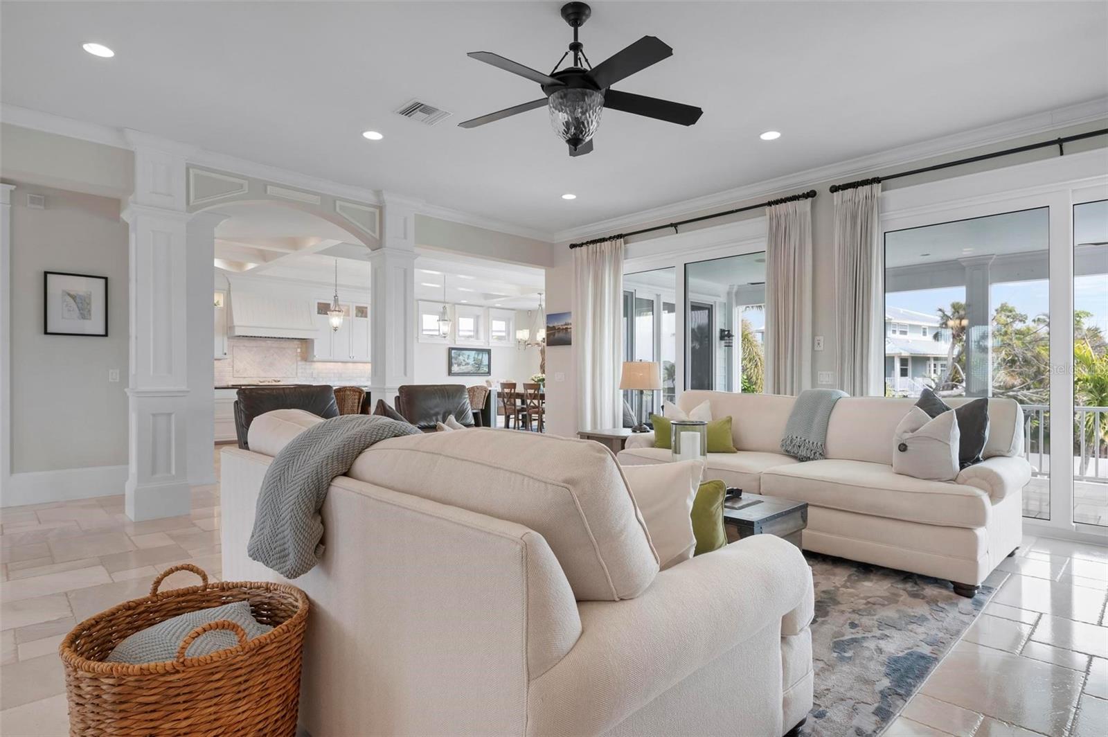 WATERFRONT LUXURY HOME ON ANNA MARIA ISLAND! This elevated home in the coveted Key Royale community had no flood, roof, or soffit damage from the recent storms. This beautiful coastal retreat has multiple balconies which provide stunning views of Bimini Bay and Tampa Bay where you can enjoy your morning coffee or admire the breathtaking sunsets. Ideally located in the North Point Harbour community of Key Royale (which has one of the highest elevations on Anna Maria Island) residents have exclusive access to tennis, pickleball, swimming, and social events and just 2 blocks from the private Key Royale Golf Club. This furnished home offers a relaxed coastal lifestyle perfect for a quiet get-away or for hosting family and friends. The natural light-filled home provides flexibility and comfort with 4 bedrooms, 3 full bathrooms + 2 half bathrooms, an office, and a spacious bonus room with wet bar. Wake up to spectacular Bay views from your upper-level primary suite then revitalize in the serene en-suite bath. Or retreat to the secondary primary en-suite on the main level for ease of access. The gourmet kitchen is a chef’s dream, featuring Wolf/Thermador/Bosch appliances, custom cabinetry, 10-foot marble island, and a bar/pantry complete with a wine chiller and beverage fridge. Ideal for entertaining or relaxing, the spacious living areas include a great room with a fireplace and dining areas with 9.5-foot ceilings and extensive detailed trim. Several large sliding doors open to the expansive rear covered balcony featuring an outdoor kitchen which is perfect for BBQs and watching the manatees and dolphins who are frequent visitors in the canal. Additional outdoor luxuries include another large covered living/dining area adjacent to the heated saltwater pool with sun shelf and waterfall spa, a dock with lift, a floating dock, an outdoor shower, and a gas fire pit. An elevator shaft to all levels, a fishing tackle room, exterior storage room for pool toys or beach gear, versatile lower-level areas, and an expanded garage for your golf cart and bikes make this the ultimate island home. Being on the nearest canal to Tampa Bay through the Bimini Bay channel, you have the easiest access for all your water activities. This home is the perfect blend of elegance and relaxation as your full-time residence or your seasonal tranquil escape. Call for a private showing today.