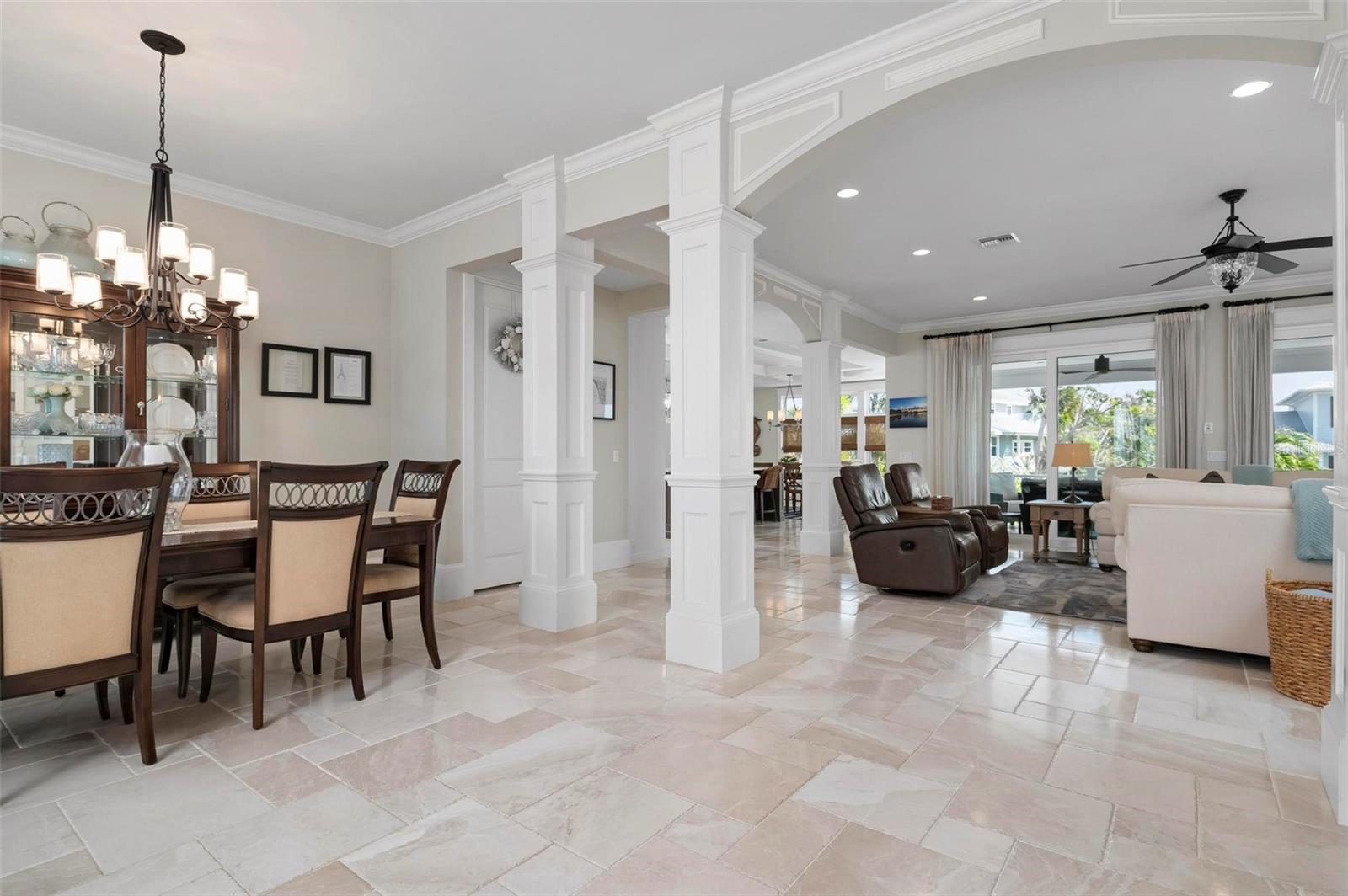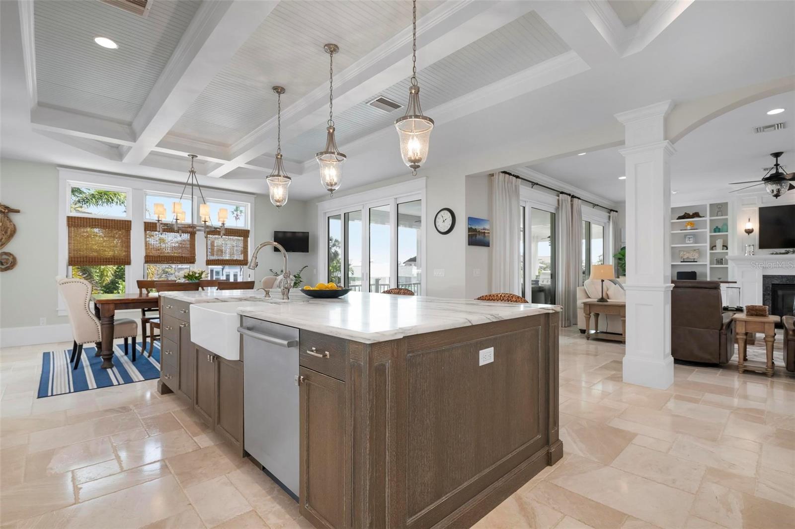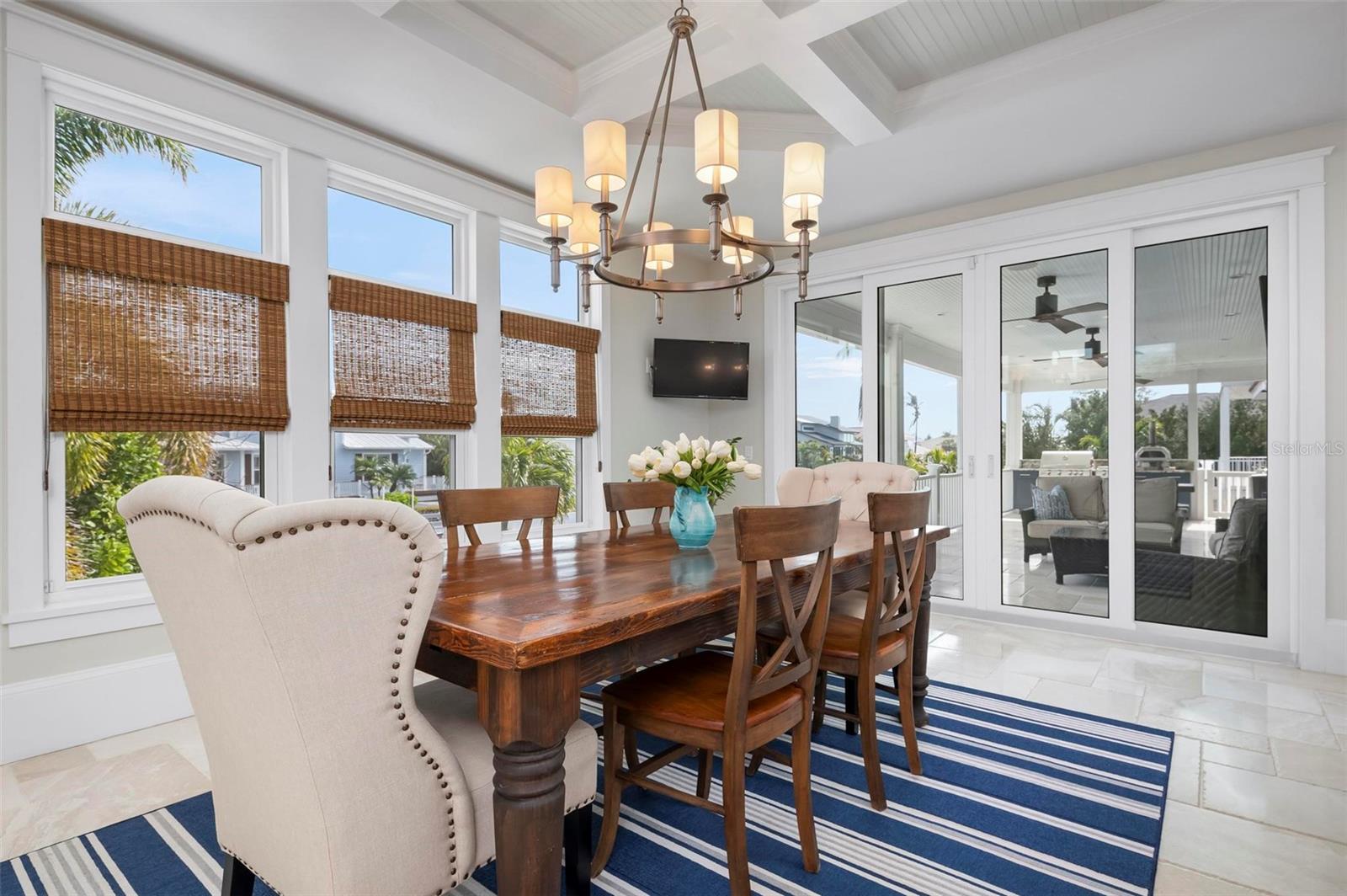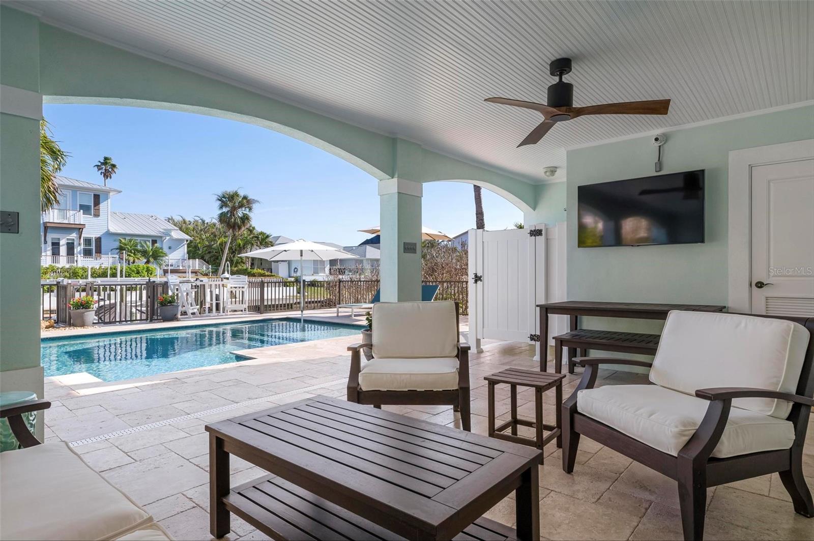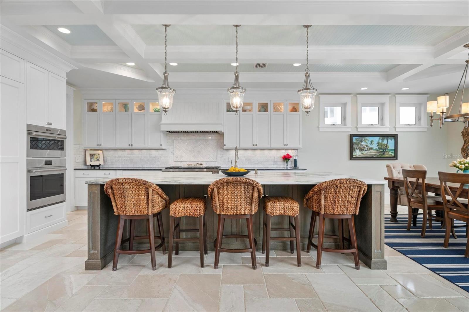 WATERFRONT LUXURY HOME ON ANNA MARIA ISLAND! This elevated home in the coveted Key Royale community had no flood, roof, or soffit damage from the recent storms. This beautiful coastal retreat has multiple balconies which provide stunning views of Bimini Bay and Tampa Bay where you can enjoy your morning coffee or admire the breathtaking sunsets. Ideally located in the North Point Harbour community of Key Royale (which has one of the highest elevations on Anna Maria Island) residents have exclusive access to tennis, pickleball, swimming, and social events and just 2 blocks from the private Key Royale Golf Club. This furnished home offers a relaxed coastal lifestyle perfect for a quiet get-away or for hosting family and friends. The natural light-filled home provides flexibility and comfort with 4 bedrooms, 3 full bathrooms + 2 half bathrooms, an office, and a spacious bonus room with wet bar. Wake up to spectacular Bay views from your upper-level primary suite then revitalize in the serene en-suite bath. Or retreat to the secondary primary en-suite on the main level for ease of access. The gourmet kitchen is a chef’s dream, featuring Wolf/Thermador/Bosch appliances, custom cabinetry, 10-foot marble island, and a bar/pantry complete with a wine chiller and beverage fridge. Ideal for entertaining or relaxing, the spacious living areas include a great room with a fireplace and dining areas with 9.5-foot ceilings and extensive detailed trim. Several large sliding doors open to the expansive rear covered balcony featuring an outdoor kitchen which is perfect for BBQs and watching the manatees and dolphins who are frequent visitors in the canal. Additional outdoor luxuries include another large covered living/dining area adjacent to the heated saltwater pool with sun shelf and waterfall spa, a dock with lift, a floating dock, an outdoor shower, and a gas fire pit. An elevator shaft to all levels, a fishing tackle room, exterior storage room for pool toys or beach gear, versatile lower-level areas, and an expanded garage for your golf cart and bikes make this the ultimate island home. Being on the nearest canal to Tampa Bay through the Bimini Bay channel, you have the easiest access for all your water activities. This home is the perfect blend of elegance and relaxation as your full-time residence or your seasonal tranquil escape. Call for a private showing today.