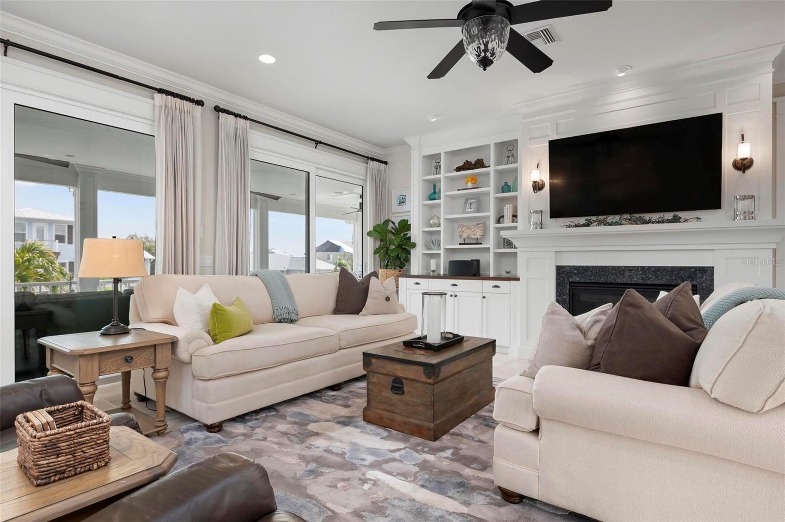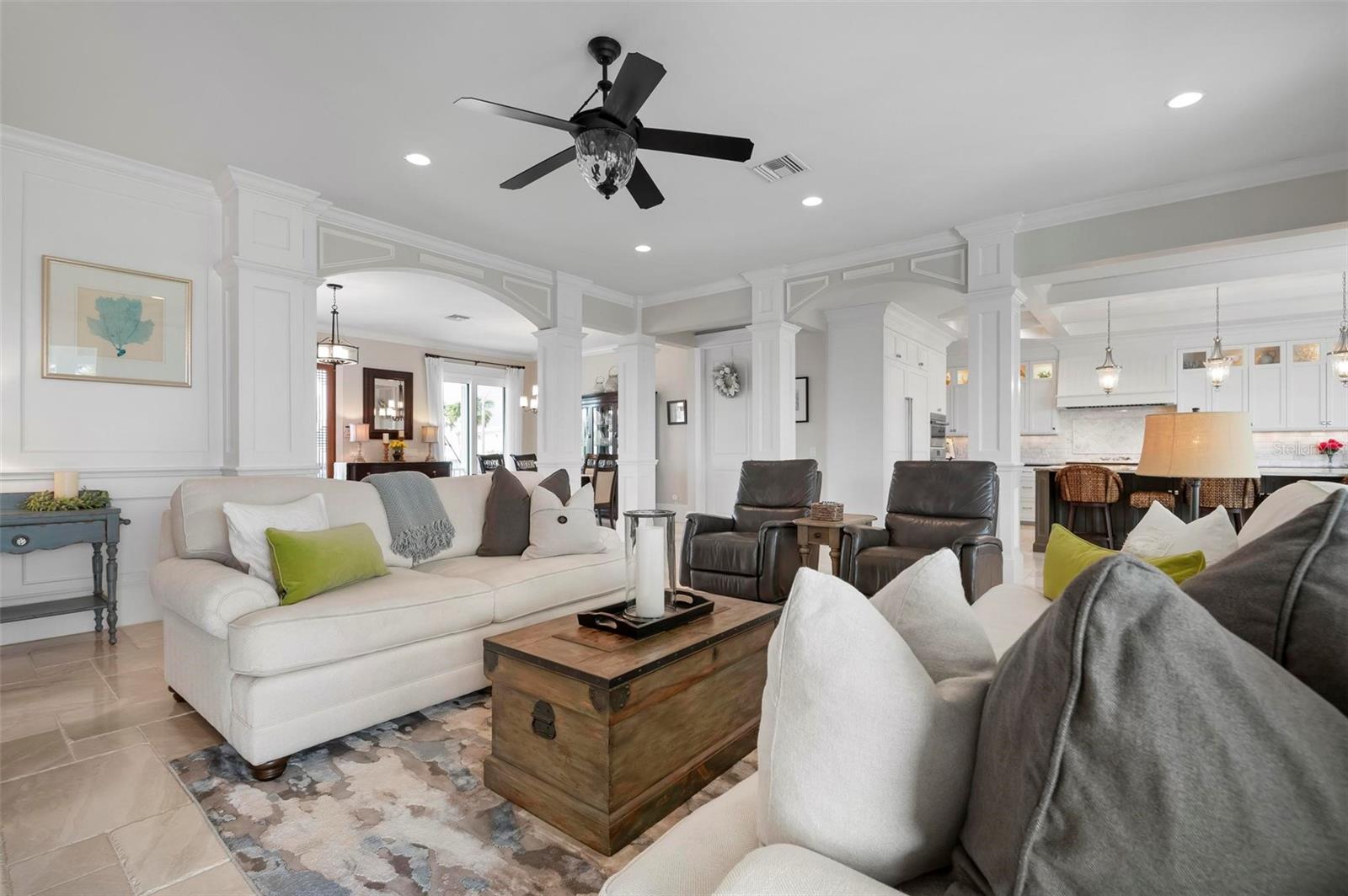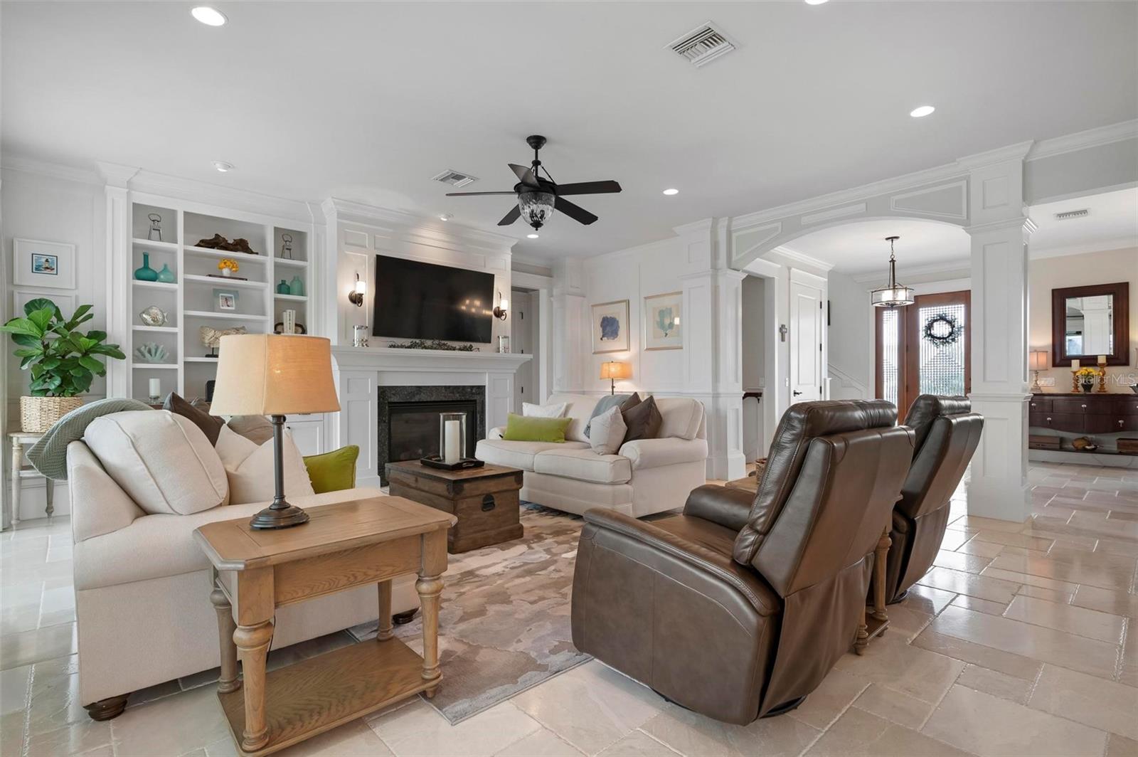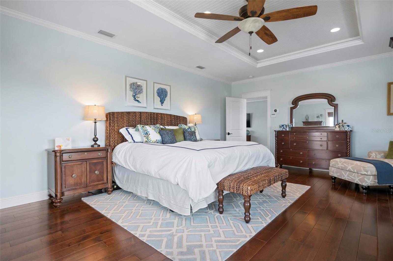 WATERFRONT LUXURY HOME ON ANNA MARIA ISLAND! This elevated home in the coveted Key Royale community had no flood, roof, or soffit damage from the recent storms. This beautiful coastal retreat has multiple balconies which provide stunning views of Bimini Bay and Tampa Bay where you can enjoy your morning coffee or admire the breathtaking sunsets. Ideally located in the North Point Harbour community of Key Royale (which has one of the highest elevations on Anna Maria Island) residents have exclusive access to tennis, pickleball, swimming, and social events and just 2 blocks from the private Key Royale Golf Club. This furnished home offers a relaxed coastal lifestyle perfect for a quiet get-away or for hosting family and friends. The natural light-filled home provides flexibility and comfort with 4 bedrooms, 3 full bathrooms + 2 half bathrooms, an office, and a spacious bonus room with wet bar. Wake up to spectacular Bay views from your upper-level primary suite then revitalize in the serene en-suite bath. Or retreat to the secondary primary en-suite on the main level for ease of access. The gourmet kitchen is a chef’s dream, featuring Wolf/Thermador/Bosch appliances, custom cabinetry, 10-foot marble island, and a bar/pantry complete with a wine chiller and beverage fridge. Ideal for entertaining or relaxing, the spacious living areas include a great room with a fireplace and dining areas with 9.5-foot ceilings and extensive detailed trim. Several large sliding doors open to the expansive rear covered balcony featuring an outdoor kitchen which is perfect for BBQs and watching the manatees and dolphins who are frequent visitors in the canal. Additional outdoor luxuries include another large covered living/dining area adjacent to the heated saltwater pool with sun shelf and waterfall spa, a dock with lift, a floating dock, an outdoor shower, and a gas fire pit. An elevator shaft to all levels, a fishing tackle room, exterior storage room for pool toys or beach gear, versatile lower-level areas, and an expanded garage for your golf cart and bikes make this the ultimate island home. Being on the nearest canal to Tampa Bay through the Bimini Bay channel, you have the easiest access for all your water activities. This home is the perfect blend of elegance and relaxation as your full-time residence or your seasonal tranquil escape. Call for a private showing today.