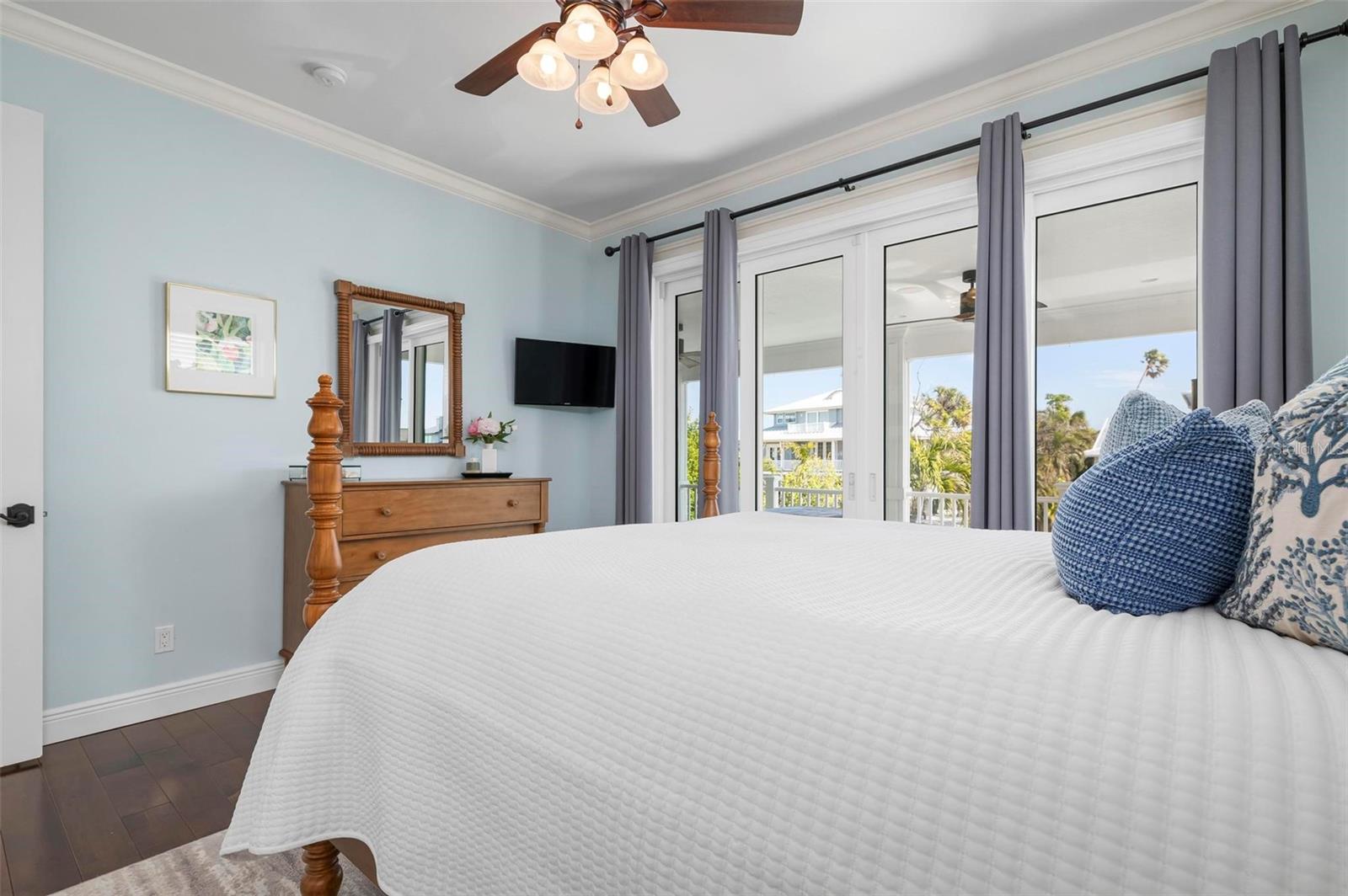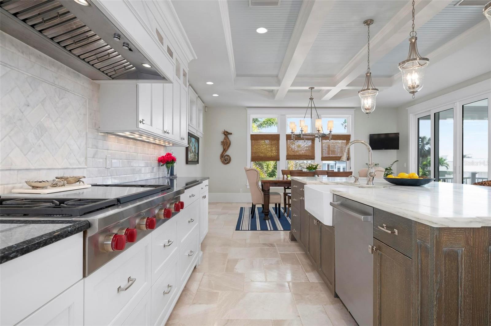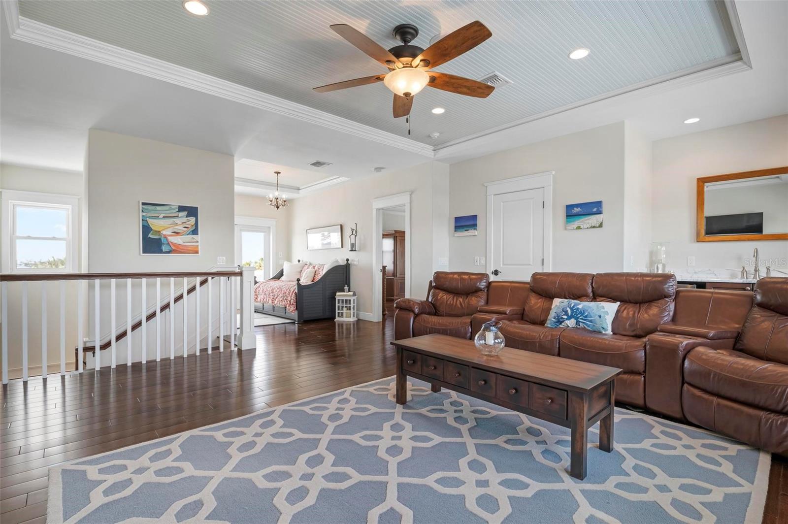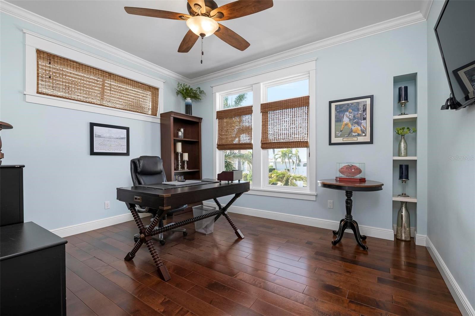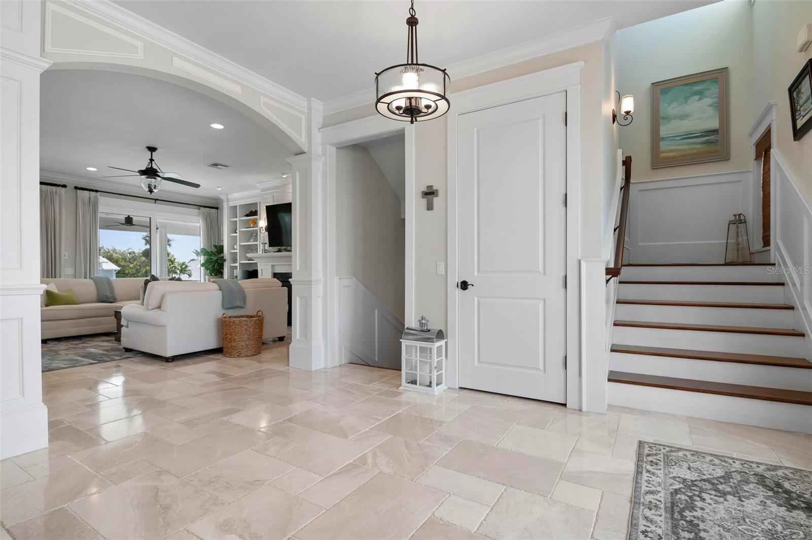 WATERFRONT LUXURY HOME ON ANNA MARIA ISLAND! This elevated home in the coveted Key Royale community had no flood, roof, or soffit damage from the recent storms. This beautiful coastal retreat has multiple balconies which provide stunning views of Bimini Bay and Tampa Bay where you can enjoy your morning coffee or admire the breathtaking sunsets. Ideally located in the North Point Harbour community of Key Royale (which has one of the highest elevations on Anna Maria Island) residents have exclusive access to tennis, pickleball, swimming, and social events and just 2 blocks from the private Key Royale Golf Club. This furnished home offers a relaxed coastal lifestyle perfect for a quiet get-away or for hosting family and friends. The natural light-filled home provides flexibility and comfort with 4 bedrooms, 3 full bathrooms + 2 half bathrooms, an office, and a spacious bonus room with wet bar. Wake up to spectacular Bay views from your upper-level primary suite then revitalize in the serene en-suite bath. Or retreat to the secondary primary en-suite on the main level for ease of access. The gourmet kitchen is a chef’s dream, featuring Wolf/Thermador/Bosch appliances, custom cabinetry, 10-foot marble island, and a bar/pantry complete with a wine chiller and beverage fridge. Ideal for entertaining or relaxing, the spacious living areas include a great room with a fireplace and dining areas with 9.5-foot ceilings and extensive detailed trim. Several large sliding doors open to the expansive rear covered balcony featuring an outdoor kitchen which is perfect for BBQs and watching the manatees and dolphins who are frequent visitors in the canal. Additional outdoor luxuries include another large covered living/dining area adjacent to the heated saltwater pool with sun shelf and waterfall spa, a dock with lift, a floating dock, an outdoor shower, and a gas fire pit. An elevator shaft to all levels, a fishing tackle room, exterior storage room for pool toys or beach gear, versatile lower-level areas, and an expanded garage for your golf cart and bikes make this the ultimate island home. Being on the nearest canal to Tampa Bay through the Bimini Bay channel, you have the easiest access for all your water activities. This home is the perfect blend of elegance and relaxation as your full-time residence or your seasonal tranquil escape. Call for a private showing today.
