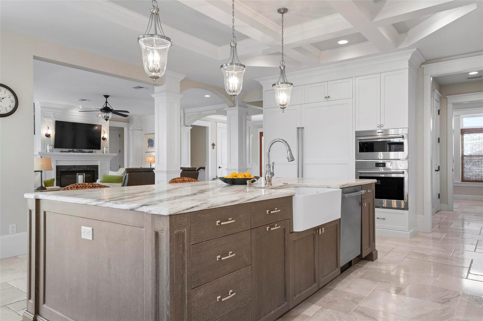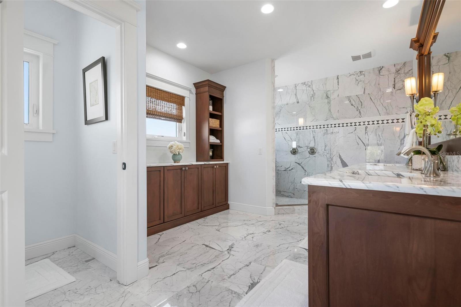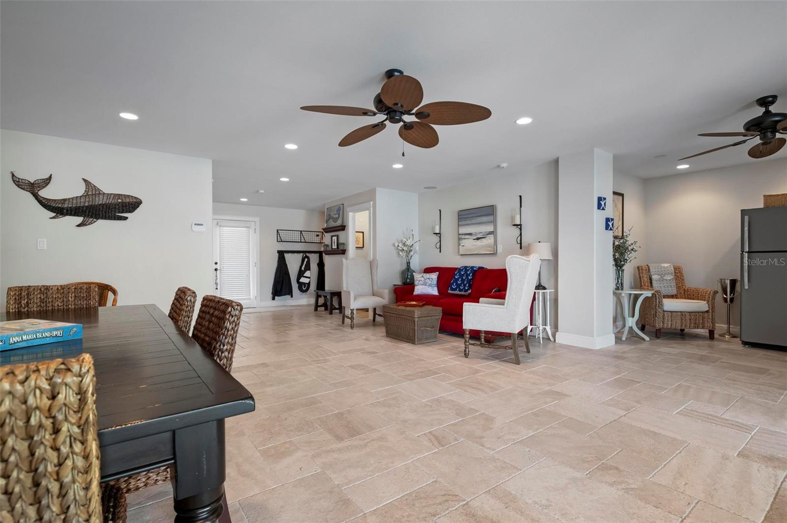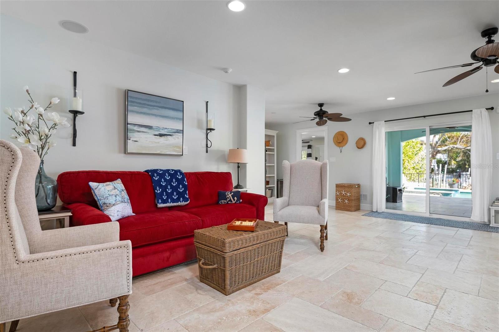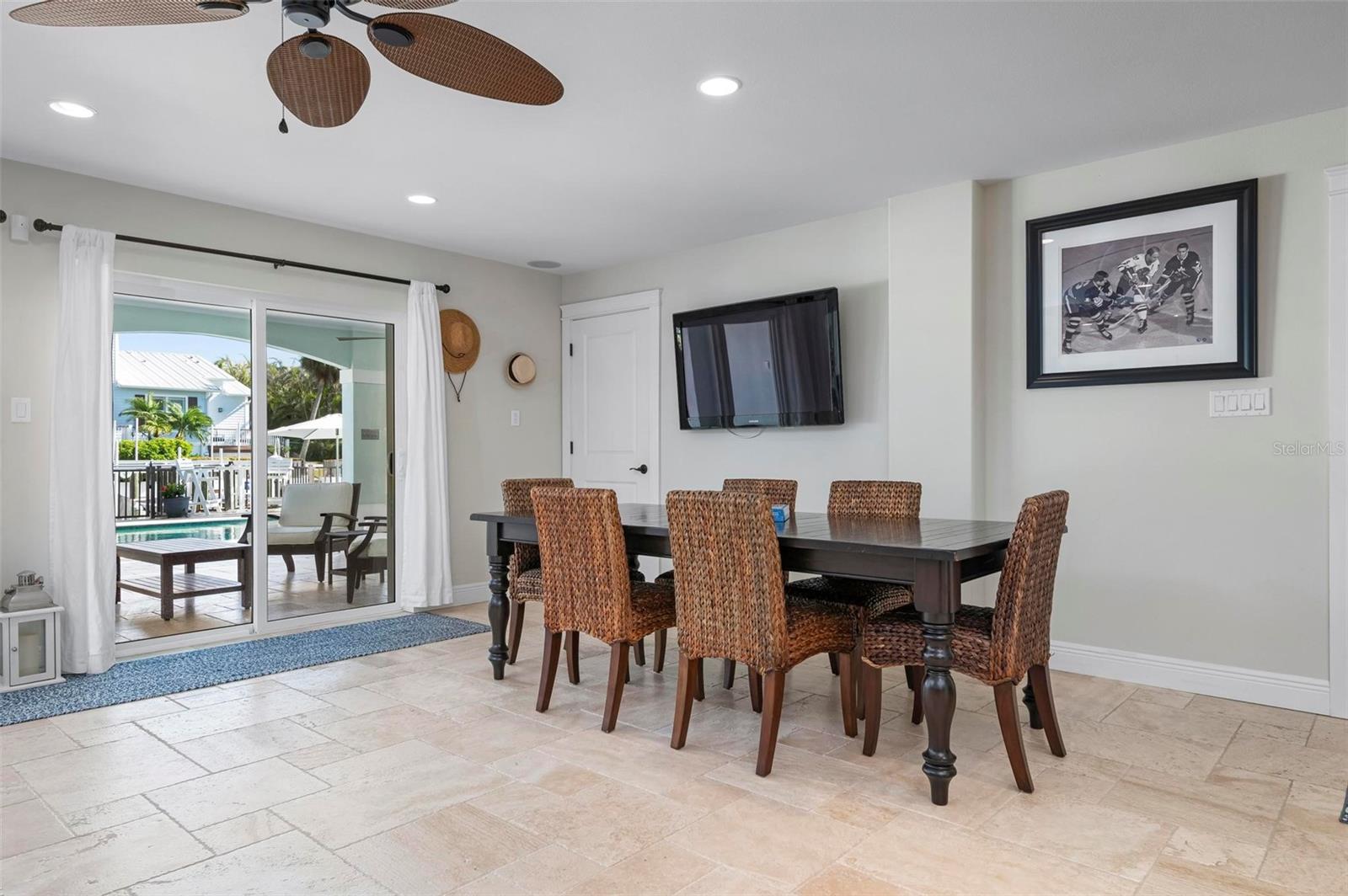 WATERFRONT LUXURY HOME ON ANNA MARIA ISLAND! This elevated home in the coveted Key Royale community had no flood, roof, or soffit damage from the recent storms. This beautiful coastal retreat has multiple balconies which provide stunning views of Bimini Bay and Tampa Bay where you can enjoy your morning coffee or admire the breathtaking sunsets. Ideally located in the North Point Harbour community of Key Royale (which has one of the highest elevations on Anna Maria Island) residents have exclusive access to tennis, pickleball, swimming, and social events and just 2 blocks from the private Key Royale Golf Club. This furnished home offers a relaxed coastal lifestyle perfect for a quiet get-away or for hosting family and friends. The natural light-filled home provides flexibility and comfort with 4 bedrooms, 3 full bathrooms + 2 half bathrooms, an office, and a spacious bonus room with wet bar. Wake up to spectacular Bay views from your upper-level primary suite then revitalize in the serene en-suite bath. Or retreat to the secondary primary en-suite on the main level for ease of access. The gourmet kitchen is a chef’s dream, featuring Wolf/Thermador/Bosch appliances, custom cabinetry, 10-foot marble island, and a bar/pantry complete with a wine chiller and beverage fridge. Ideal for entertaining or relaxing, the spacious living areas include a great room with a fireplace and dining areas with 9.5-foot ceilings and extensive detailed trim. Several large sliding doors open to the expansive rear covered balcony featuring an outdoor kitchen which is perfect for BBQs and watching the manatees and dolphins who are frequent visitors in the canal. Additional outdoor luxuries include another large covered living/dining area adjacent to the heated saltwater pool with sun shelf and waterfall spa, a dock with lift, a floating dock, an outdoor shower, and a gas fire pit. An elevator shaft to all levels, a fishing tackle room, exterior storage room for pool toys or beach gear, versatile lower-level areas, and an expanded garage for your golf cart and bikes make this the ultimate island home. Being on the nearest canal to Tampa Bay through the Bimini Bay channel, you have the easiest access for all your water activities. This home is the perfect blend of elegance and relaxation as your full-time residence or your seasonal tranquil escape. Call for a private showing today.