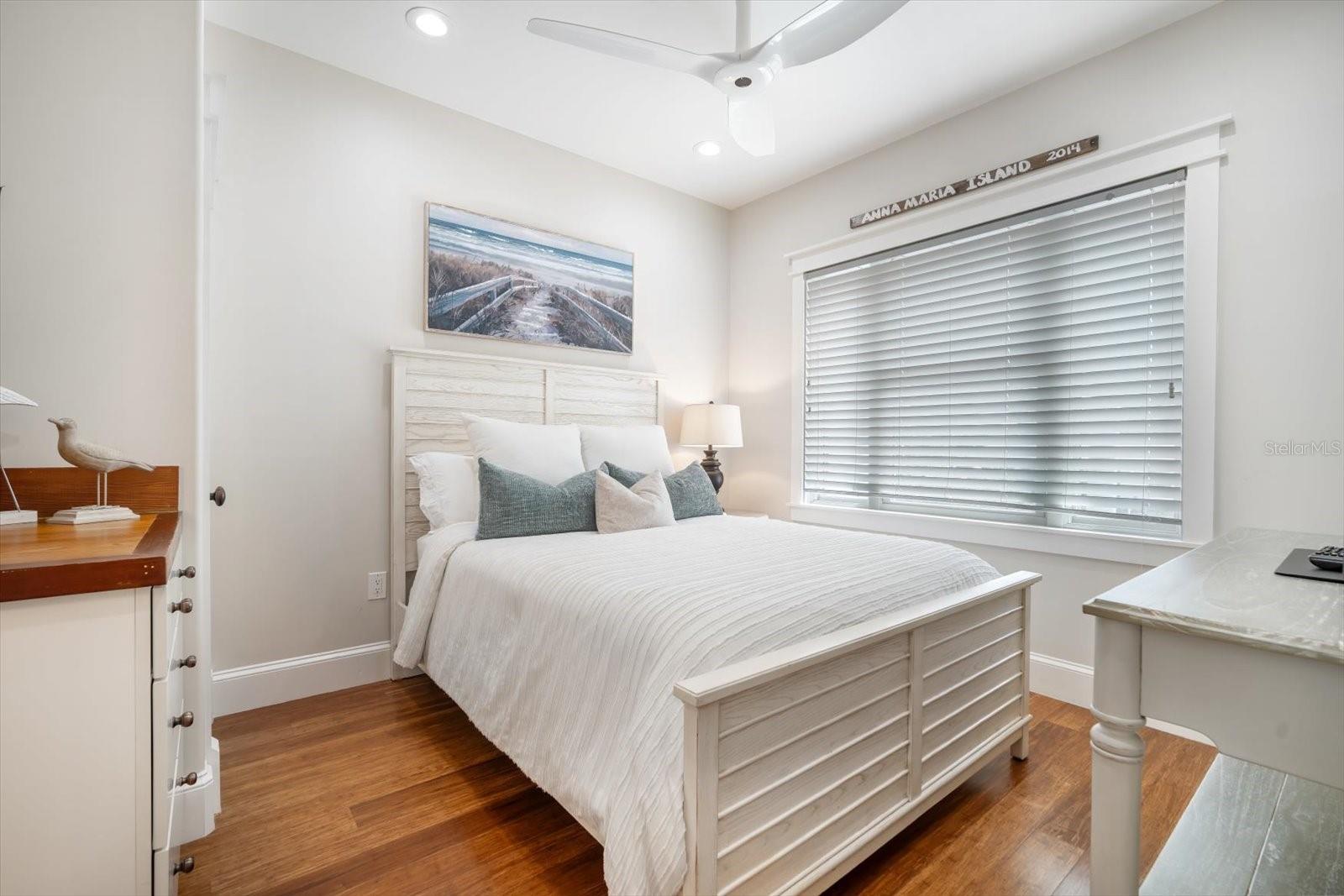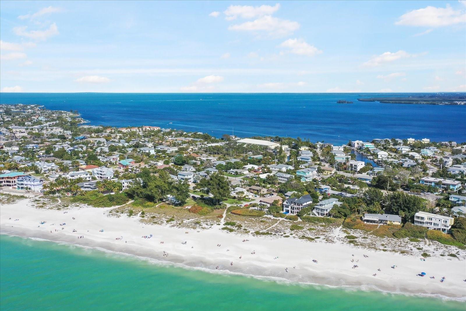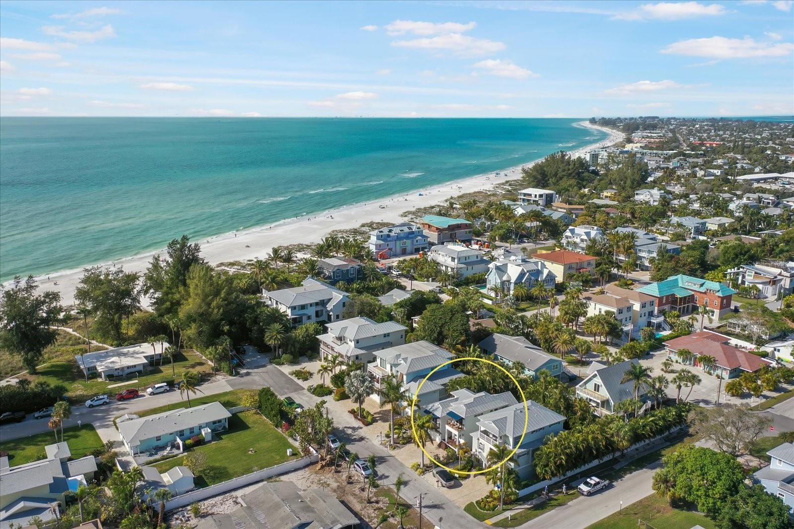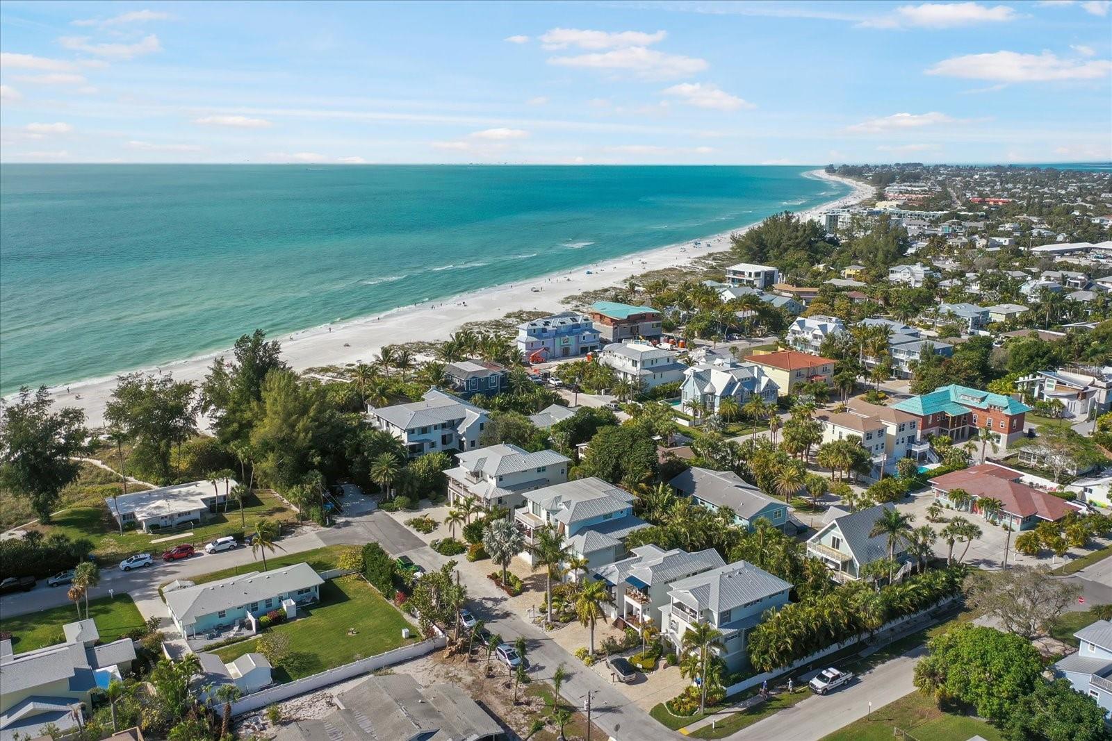 This is the one! Your dream beachside retreat on Anna Maria Island awaits. This stunning 4-bedroom, 4-bath, 1- car garage home offers the perfect blend of luxury, comfort, and coastal living. Just steps away from the pristine shores of the Gulf, this residence is truly an oasis of coastal charm. Walk up the stairs to your large covered porch then step inside to be greeted by a bright and airy open living area. Designer touches include vaulted ceilings, coastal-inspired furnishings, custom cabinetry and strand woven bamboo flooring. The cottage feel carries into the kitchen with glass front custom wood cabinets, a new gas range, ice maker and a large quartz countertop island that doubles as a breakfast bar. The split level floor plan gives ample privacy for you and your guest with the primary suite on the top floor including a large en-suite with soaking tub, separate shower and a private balcony. 3 additional bedrooms are equally well appointed with adjoining bathrooms. The backyard is ideal for entertaining and cooling off pool side after a long afternoon on the beach. This home is elevated and suffered no storm damage from hurricanes! Centrally located on a quiet beach access street, it is the perfect home base to enjoy Anna Maria Island's vibrant community, charming shops and restaurants and the blue waters of the Gulf just steps away. Don't miss your opportunity to own this fantastic Investment Property!
