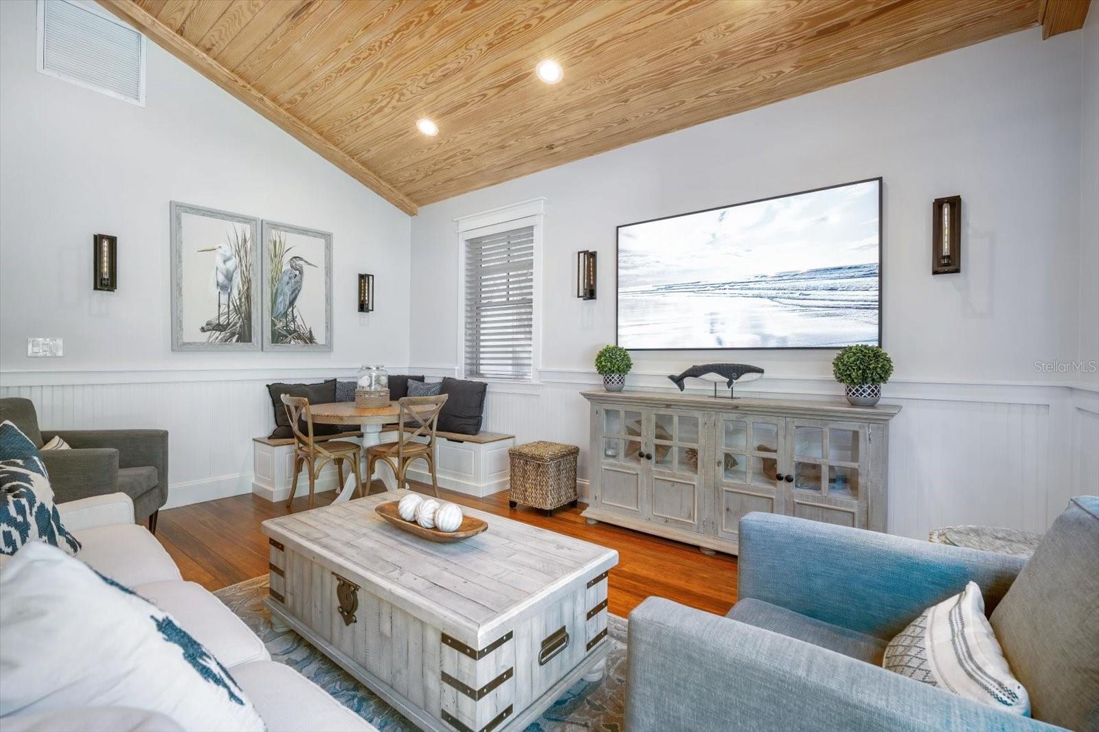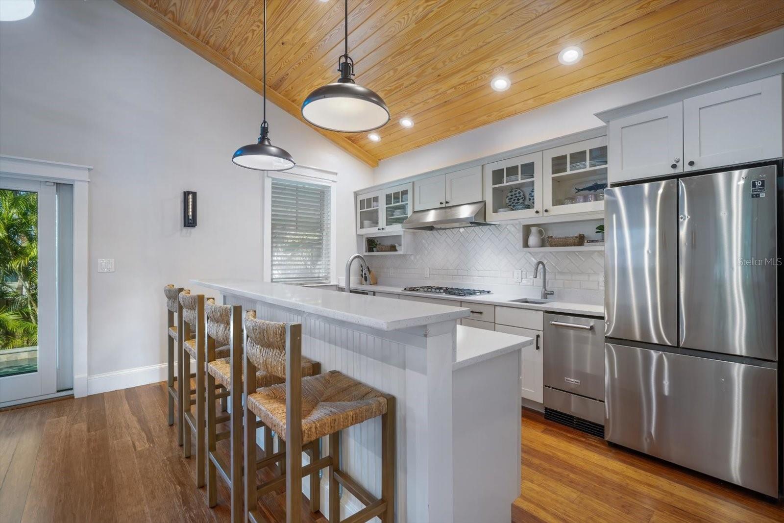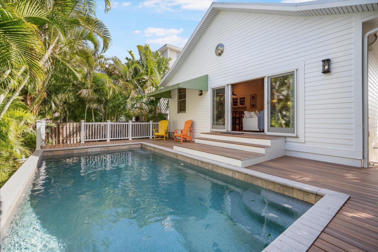 This is the one! Your dream beachside retreat on Anna Maria Island awaits. This stunning 4-bedroom, 4-bath, 1- car garage home offers the perfect blend of luxury, comfort, and coastal living. Just steps away from the pristine shores of the Gulf, this residence is truly an oasis of coastal charm. Walk up the stairs to your large covered porch then step inside to be greeted by a bright and airy open living area. Designer touches include vaulted ceilings, coastal-inspired furnishings, custom cabinetry and strand woven bamboo flooring. The cottage feel carries into the kitchen with glass front custom wood cabinets, a new gas range, ice maker and a large quartz countertop island that doubles as a breakfast bar. The split level floor plan gives ample privacy for you and your guest with the primary suite on the top floor including a large en-suite with soaking tub, separate shower and a private balcony. 3 additional bedrooms are equally well appointed with adjoining bathrooms. The backyard is ideal for entertaining and cooling off pool side after a long afternoon on the beach. This home is elevated and suffered no storm damage from hurricanes! Centrally located on a quiet beach access street, it is the perfect home base to enjoy Anna Maria Island's vibrant community, charming shops and restaurants and the blue waters of the Gulf just steps away. Don't miss your opportunity to own this fantastic Investment Property!