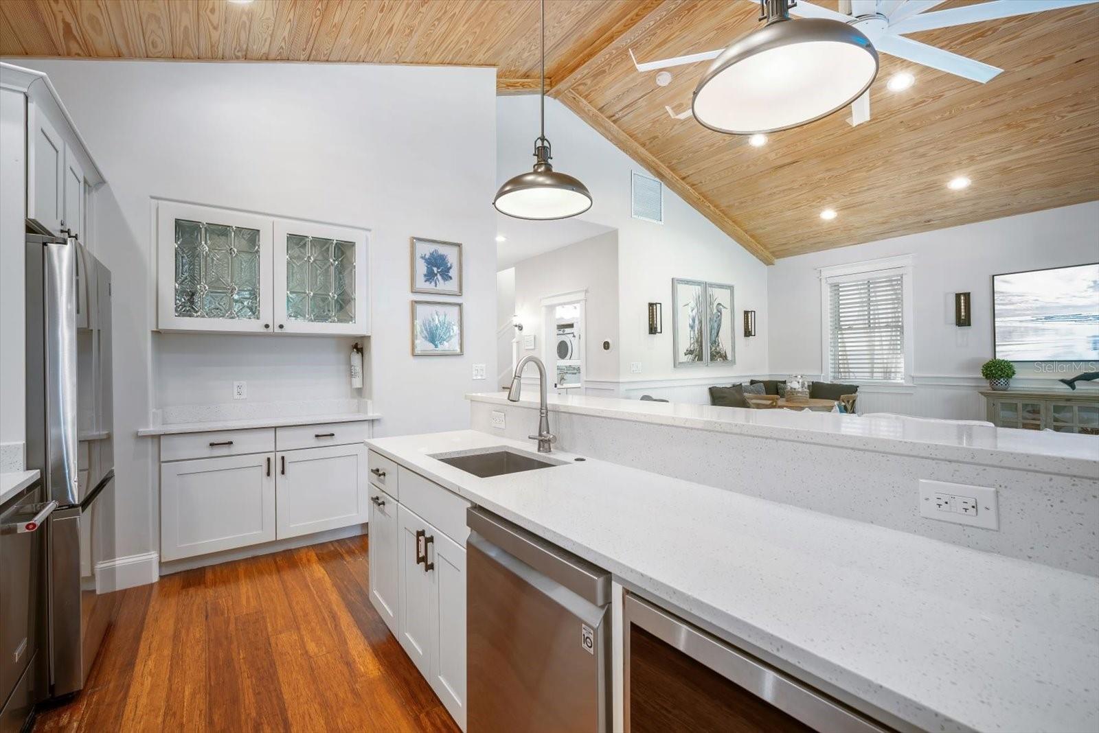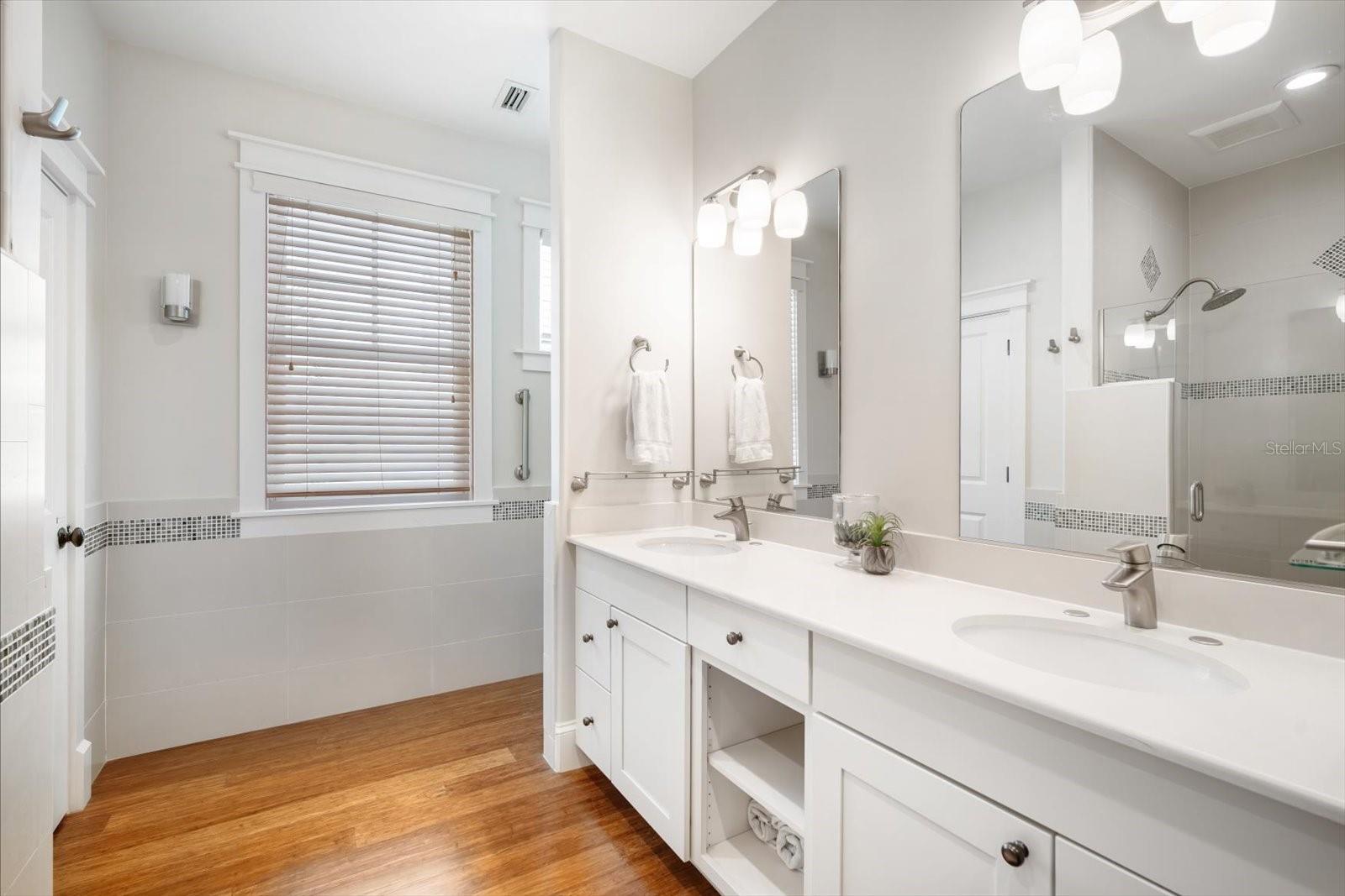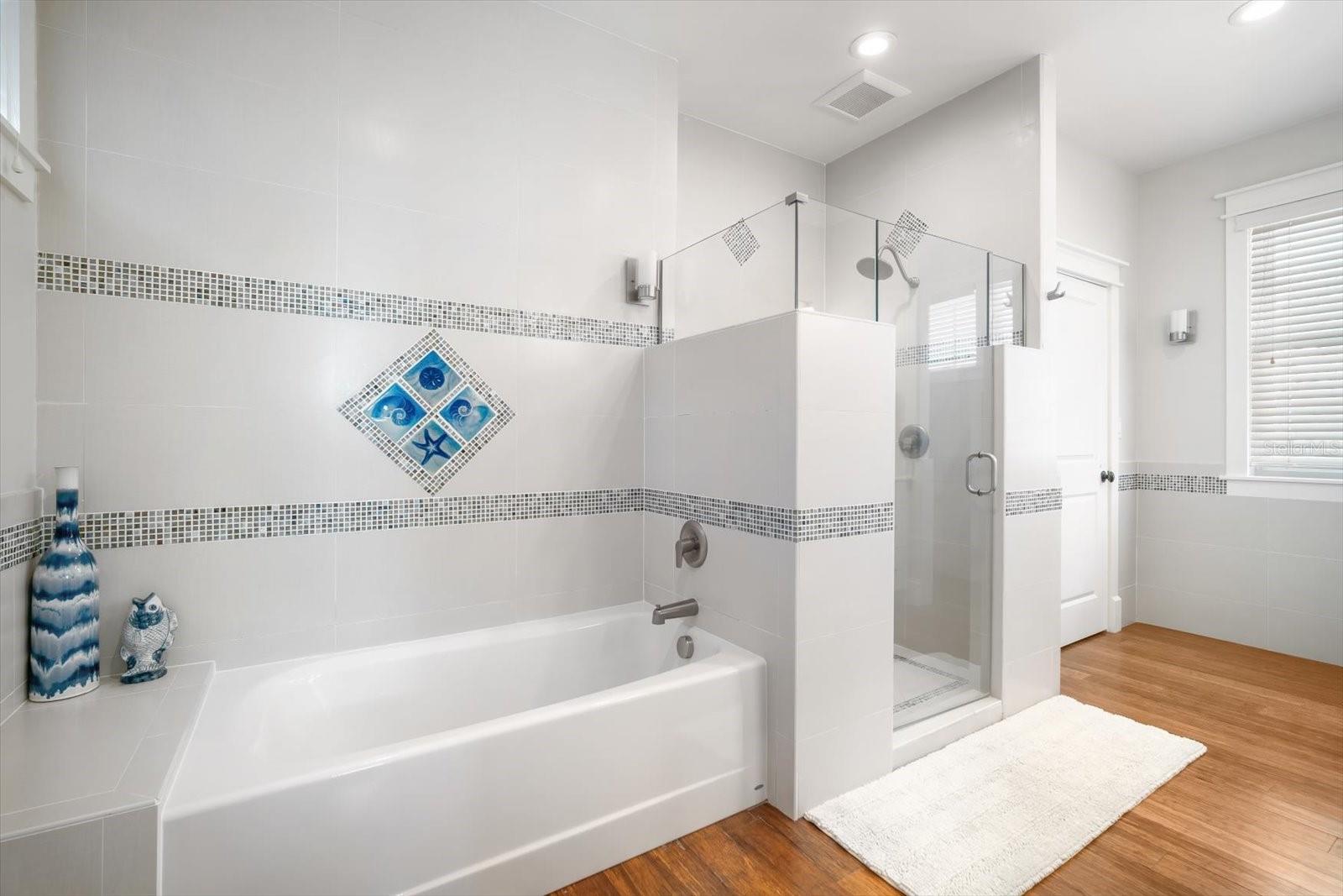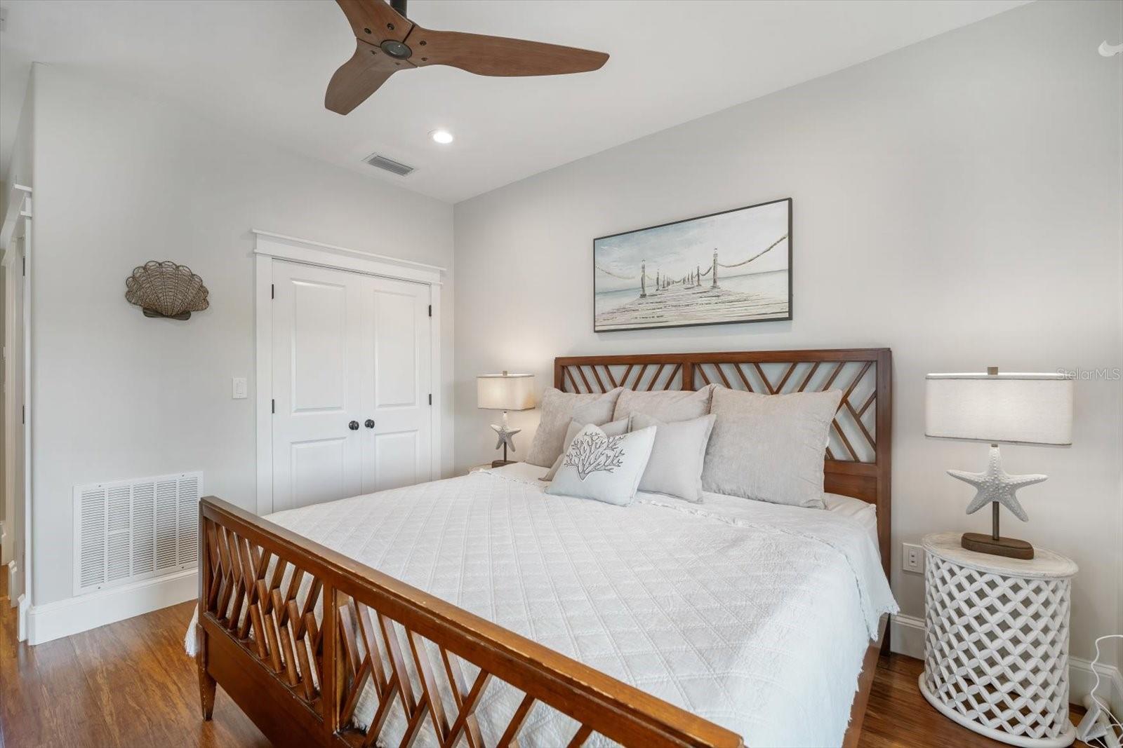 This is the one! Your dream beachside retreat on Anna Maria Island awaits. This stunning 4-bedroom, 4-bath, 1- car garage home offers the perfect blend of luxury, comfort, and coastal living. Just steps away from the pristine shores of the Gulf, this residence is truly an oasis of coastal charm. Walk up the stairs to your large covered porch then step inside to be greeted by a bright and airy open living area. Designer touches include vaulted ceilings, coastal-inspired furnishings, custom cabinetry and strand woven bamboo flooring. The cottage feel carries into the kitchen with glass front custom wood cabinets, a new gas range, ice maker and a large quartz countertop island that doubles as a breakfast bar. The split level floor plan gives ample privacy for you and your guest with the primary suite on the top floor including a large en-suite with soaking tub, separate shower and a private balcony. 3 additional bedrooms are equally well appointed with adjoining bathrooms. The backyard is ideal for entertaining and cooling off pool side after a long afternoon on the beach. This home is elevated and suffered no storm damage from hurricanes! Centrally located on a quiet beach access street, it is the perfect home base to enjoy Anna Maria Island's vibrant community, charming shops and restaurants and the blue waters of the Gulf just steps away. Don't miss your opportunity to own this fantastic Investment Property!