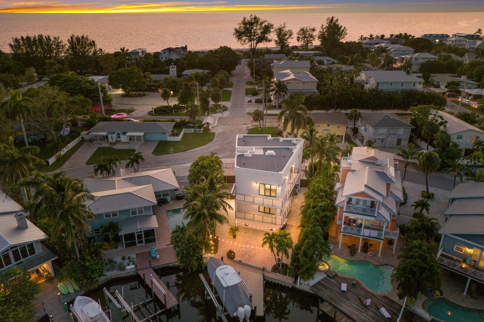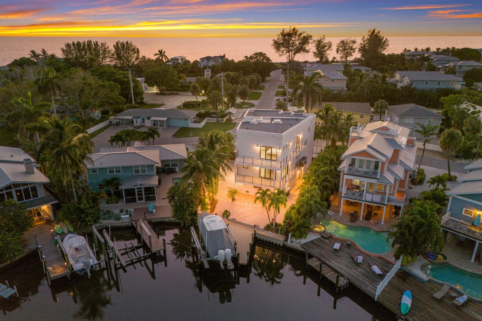 Discover an unparalleled living experience in this architecturally stunning island residence, meticulously renovated in 2022 by Richard Haas of Haas Modern Architecture & Design with bespoke floating stairs seamlessly blending cutting-edge design with luxurious amenities, all set against the backdrop of serene harbor views and near pristine beaches. Modern comprehensive renovation infrastructure: Taken down to the blocks then completed with new electrical and plumbing systems, a robust beam and poured cement, Level 5 finish walls and a high-grade GAF underlayment roof, ensuring durability and peace of mind. This Unique Location is One of only two homes offering boatable water access and beach views, with the pristine shoreline just two blocks away. Direct harbor access includes a new 2024-installed dock with a Golden boat lift supporting up to 16,000 pounds and 35-foot boats. The 2022 harbor dredging is ideal for maritime adventures. The kitchen boasts sleek quartz countertops, a JennAir six-burner gas stove, top-tier JennAir appliances, and elegant ceiling-reaching cabinets with a walk-in pantry ideal for culinary enthusiasts. Integrated remote-controlled blinds, custom Lyteworks ceiling fans, stunning tile throughout the home and an elevator ensure convenience and comfort at every turn. Plenty of space to add a custom pool, generator-ready setup, 250-gallon buried gas tank, two 21 SEER air-conditioning units for the upper floors and a split air-conditioning unit for the ground level, saltwater softener and two instant water heaters. Luxurious baths to indulge in spa-like settings featuring rain showers, quartz finishes, all Toto toilets and in the primary bath a smart Toto washlet plus toilet in a private water closet, boasting dual sinks, multiple showerheads and an expansive walk-in closet. The views are memorable as you wake up, spend your day and go to rest. This property stands as a unique sanctuary, combining design, premium amenities and an enviable location for the discerning homeowner. With a certification of completion date of 2022 meeting the new codes of 2021, beneficial for insurance, this residence is more than just a home, it’s a testament to refined living, offering a harmonious blend of luxury, innovation, an extraordinary island sanctuary designed for those who demand the best.
