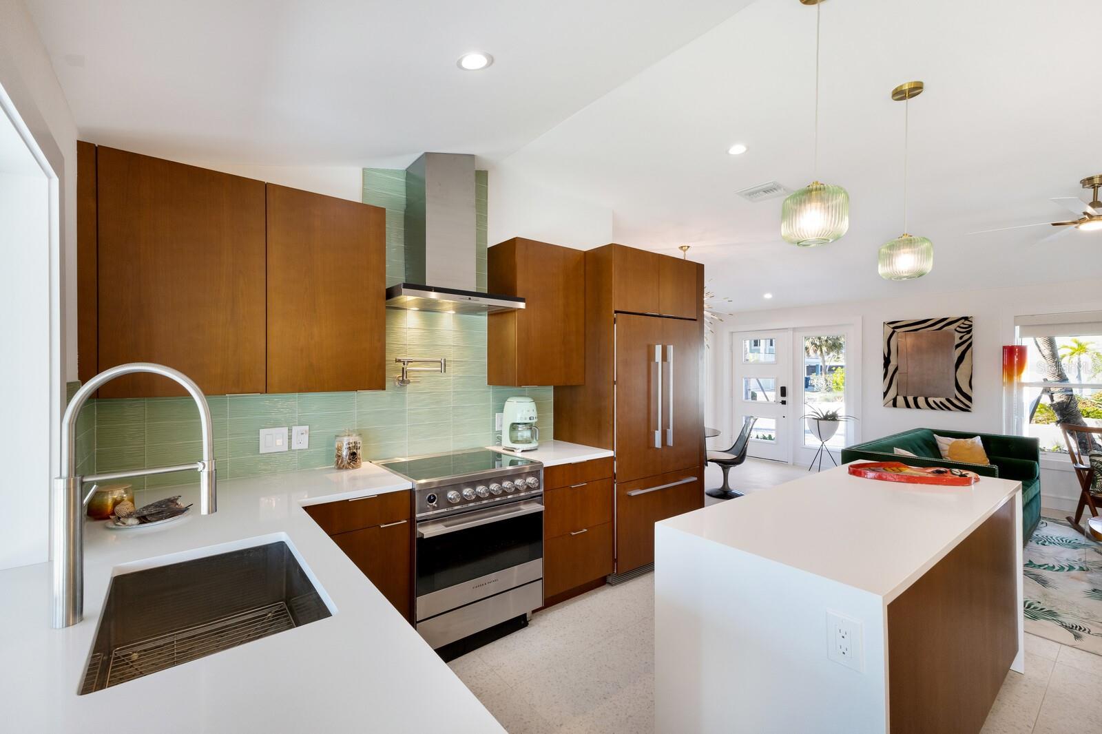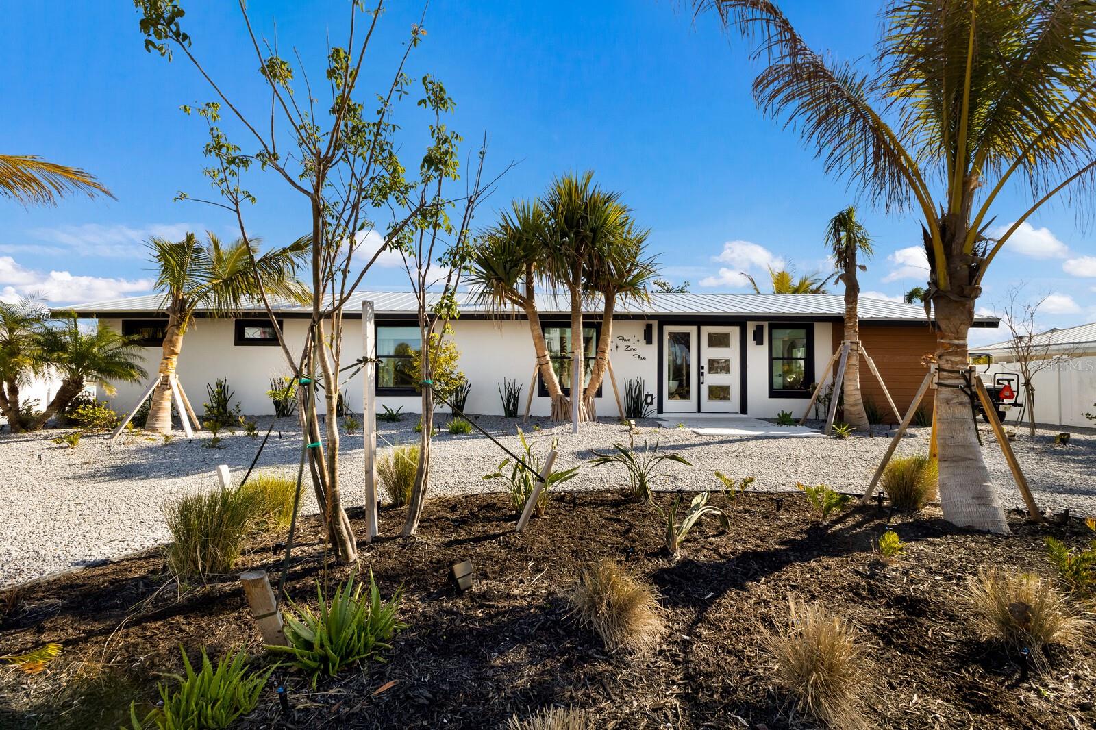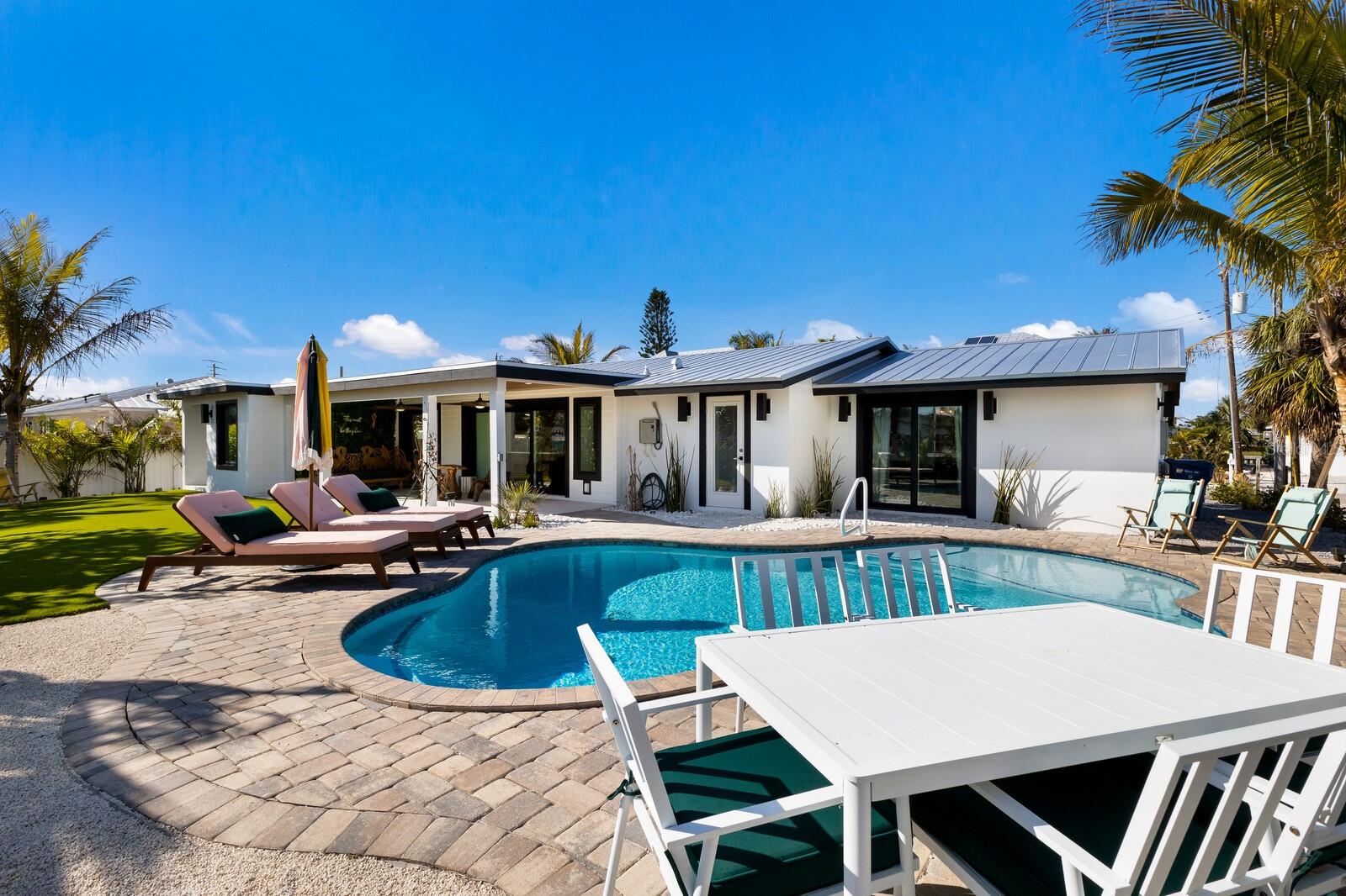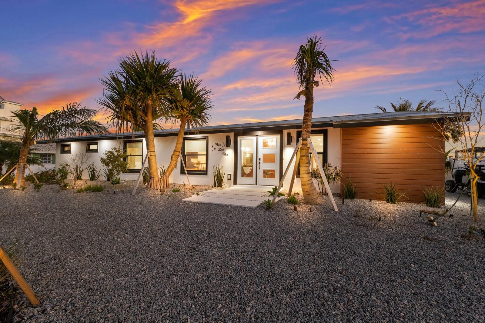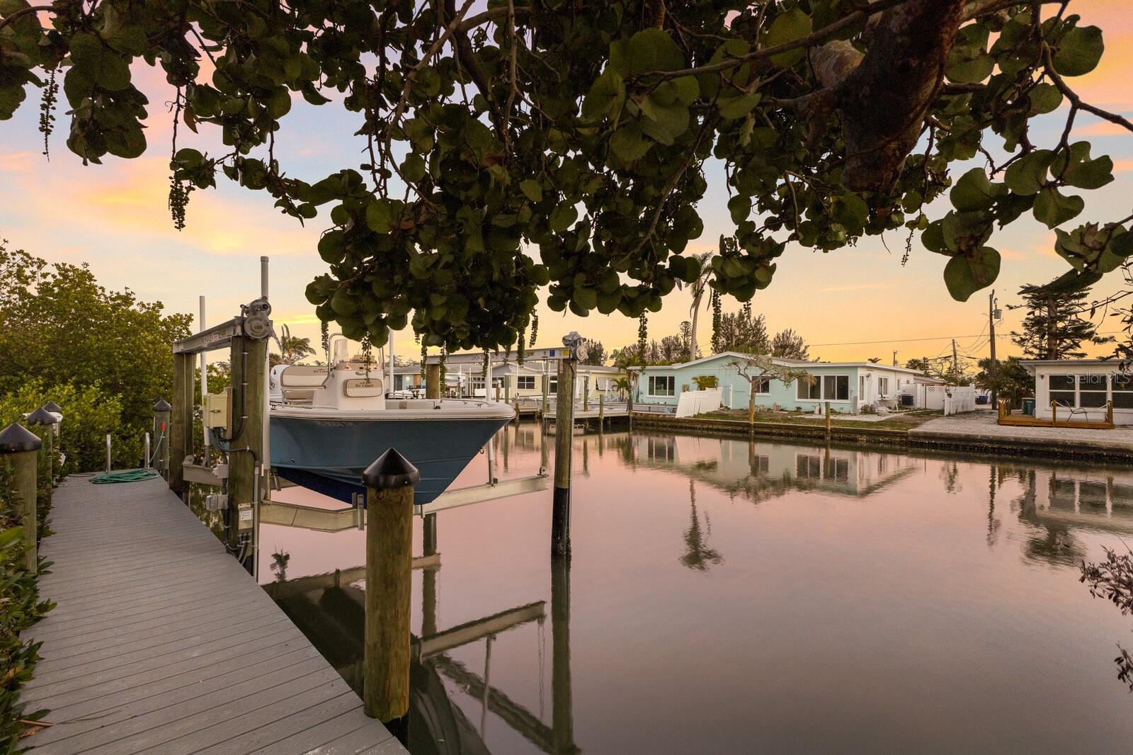 Step into this stunning, brand-new Moss built home, where every detail has been carefully crafted to create a modern, luxury retreat. The spacious living room greets you with oversized terrazzo tiles, flowing seamlessly throughout the entire home, exuding a Palm Springs vibe. A floating fireplace, designed for both wood or decorative candles, serves as a striking focal point. The dining area is beautifully designed with a wall of storage, leading into the custom kitchen outfitted with Eurotech cabinetry, a work island, top-of-the-line appliances, and a pot filler. The coordinating tile backsplash ties together the home’s aesthetic, mirroring the tiles used in the three pristine bathrooms. The primary bedroom suite is a true highlight, featuring a wet bar with a refrigerator, ample storage, and an elegant lighted alabaster countertop. Enjoy the luxury of a walk-in closet and a fabulous en-suite bath with a soaking tub, double vanities, and a large walk-in shower with direct access to the open-air outdoor shower and pool area. On the opposite side of the home, a spacious second bedroom offers an en-suite bath and sliders leading out to the outdoors. The third bedroom, located just across the hall from a convenient pool bath, includes a washer/dryer and an exterior door, perfect for guests enjoying the pool. Newly constructed with everything from under-house plumbing to the new electric service, insulation, walls, and floors, this home has been designed for the ultimate comfort and convenience. Outside, enjoy tropical landscaping by Lancaster Design, featuring pavers and turf, along with a sandy area. The brand-new Trex deck, with water and electricity, is perfect for relaxing by the canal, and the 10,000 lb. boat lift provides easy access to the water for boating adventures. This home is being sold turnkey furnished, with a custom golf cart and a 2022 Carolina Skiff included, making it the ultimate Anna Maria Island getaway. Located on a cul-de-sac and just minutes from shops, restaurants, and the beach, this property offers the perfect combination of luxury living and island charm. Don’t miss the chance to make this dream home yours—schedule a showing today!