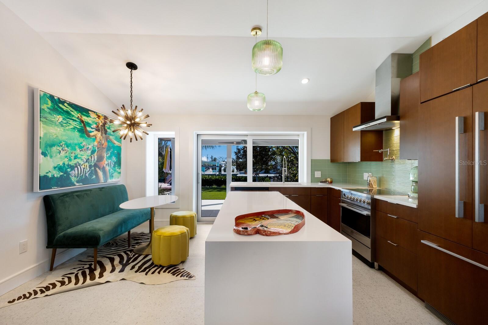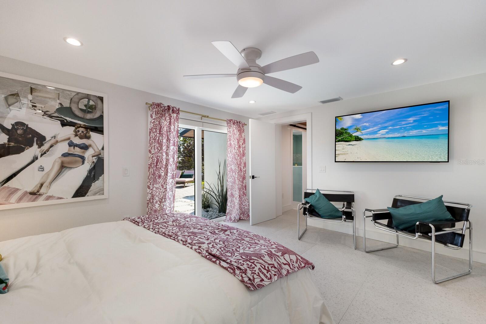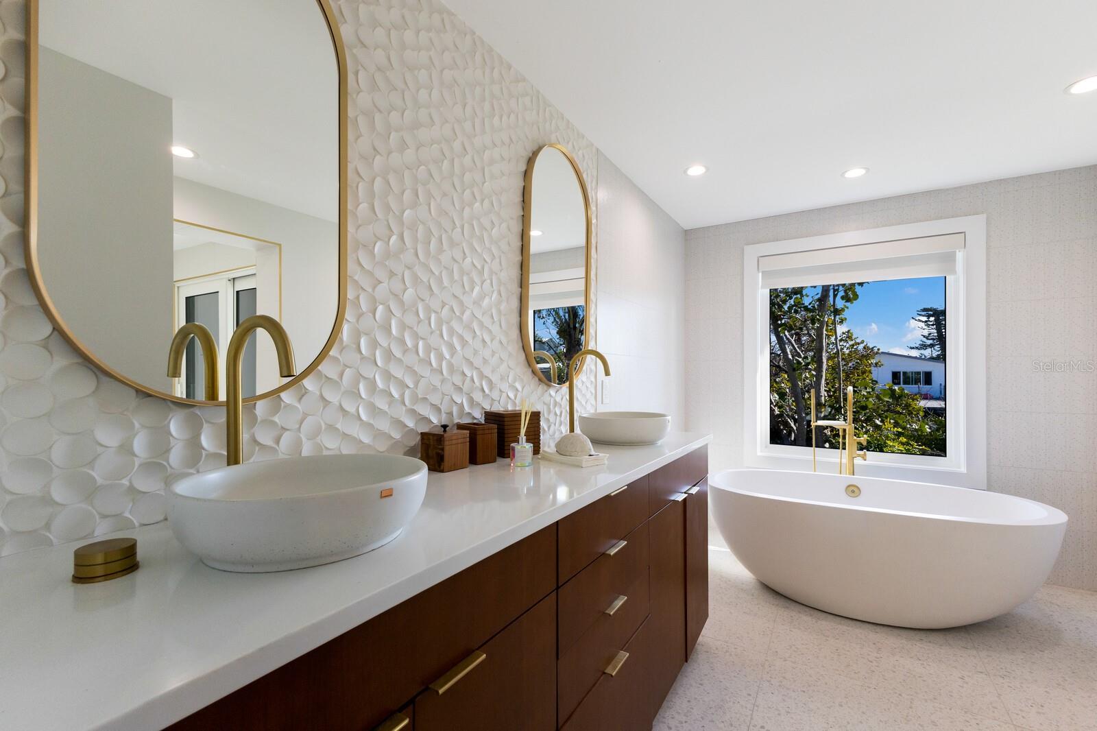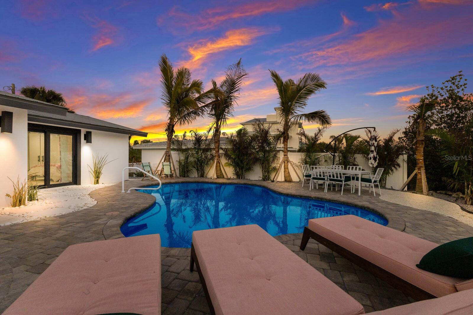 Step into this stunning, brand-new Moss built home, where every detail has been carefully crafted to create a modern, luxury retreat. The spacious living room greets you with oversized terrazzo tiles, flowing seamlessly throughout the entire home, exuding a Palm Springs vibe. A floating fireplace, designed for both wood or decorative candles, serves as a striking focal point. The dining area is beautifully designed with a wall of storage, leading into the custom kitchen outfitted with Eurotech cabinetry, a work island, top-of-the-line appliances, and a pot filler. The coordinating tile backsplash ties together the home’s aesthetic, mirroring the tiles used in the three pristine bathrooms. The primary bedroom suite is a true highlight, featuring a wet bar with a refrigerator, ample storage, and an elegant lighted alabaster countertop. Enjoy the luxury of a walk-in closet and a fabulous en-suite bath with a soaking tub, double vanities, and a large walk-in shower with direct access to the open-air outdoor shower and pool area. On the opposite side of the home, a spacious second bedroom offers an en-suite bath and sliders leading out to the outdoors. The third bedroom, located just across the hall from a convenient pool bath, includes a washer/dryer and an exterior door, perfect for guests enjoying the pool. Newly constructed with everything from under-house plumbing to the new electric service, insulation, walls, and floors, this home has been designed for the ultimate comfort and convenience. Outside, enjoy tropical landscaping by Lancaster Design, featuring pavers and turf, along with a sandy area. The brand-new Trex deck, with water and electricity, is perfect for relaxing by the canal, and the 10,000 lb. boat lift provides easy access to the water for boating adventures. This home is being sold turnkey furnished, with a custom golf cart and a 2022 Carolina Skiff included, making it the ultimate Anna Maria Island getaway. Located on a cul-de-sac and just minutes from shops, restaurants, and the beach, this property offers the perfect combination of luxury living and island charm. Don’t miss the chance to make this dream home yours—schedule a showing today!