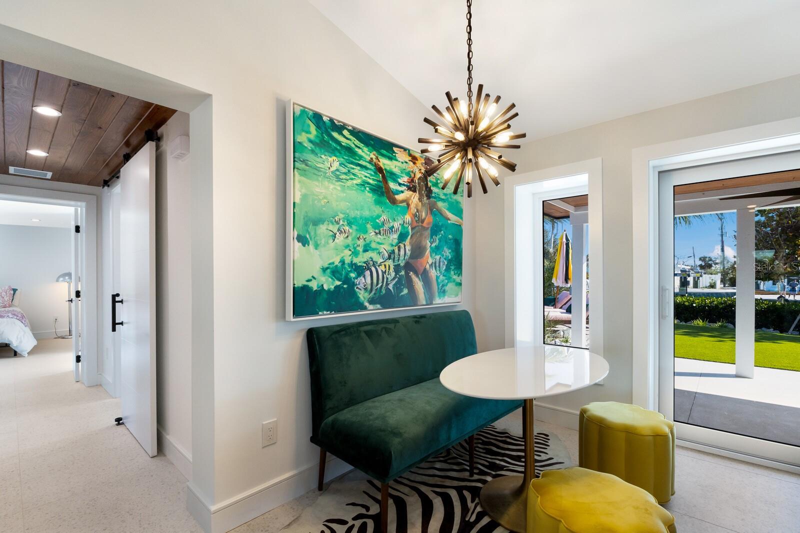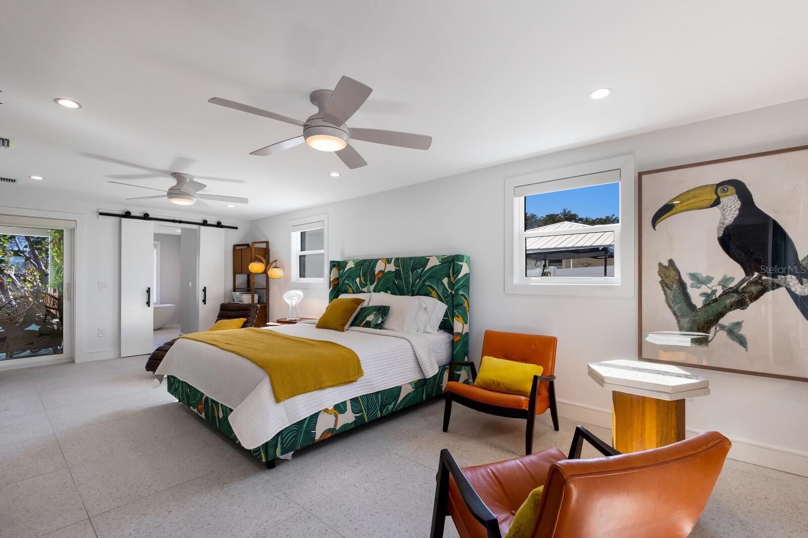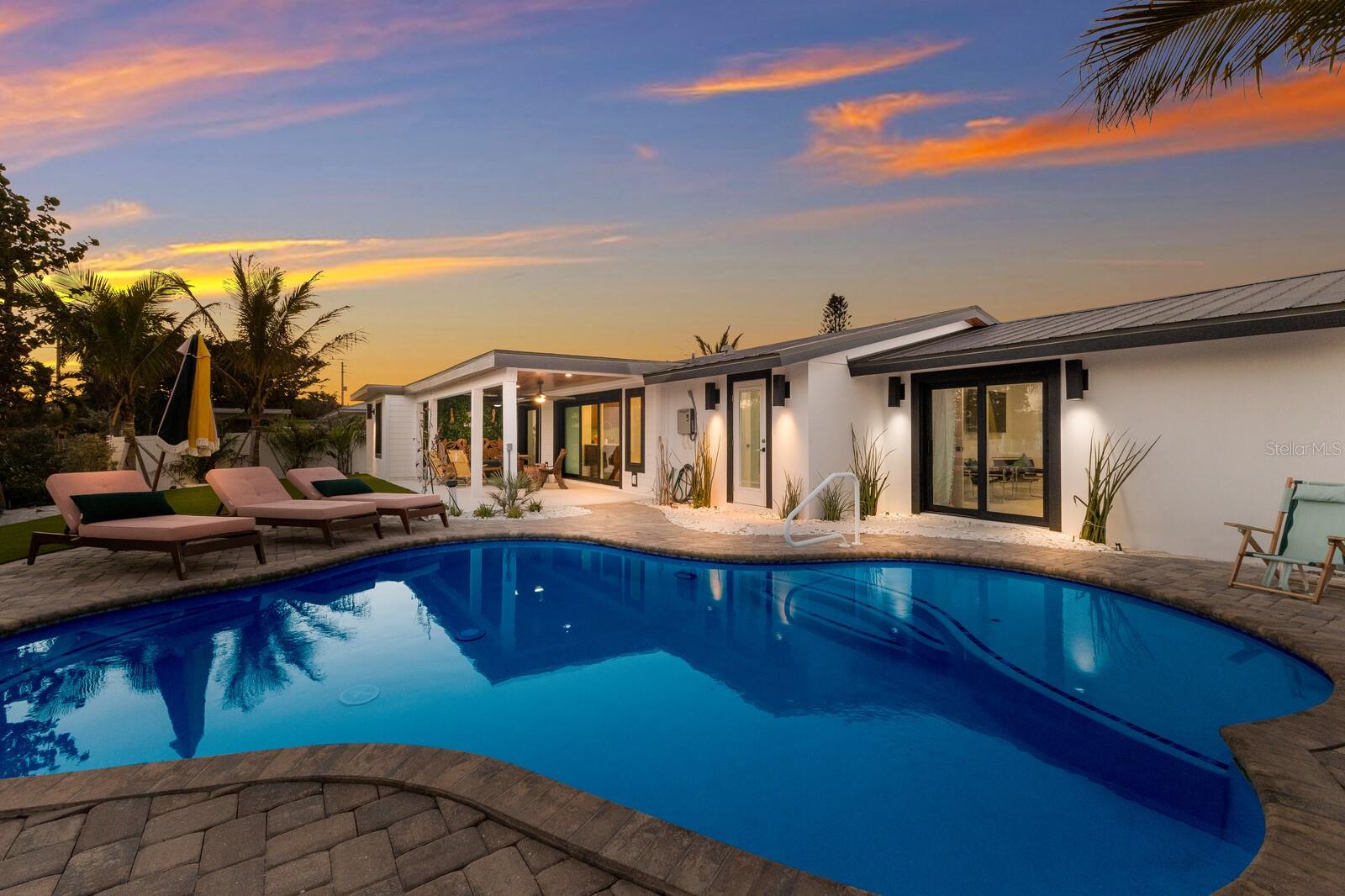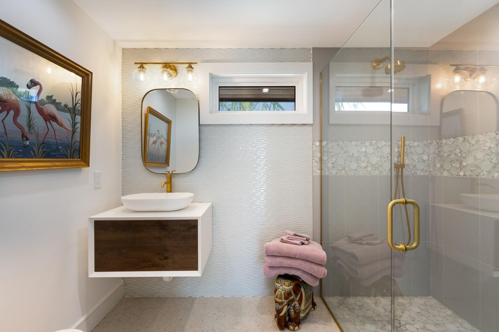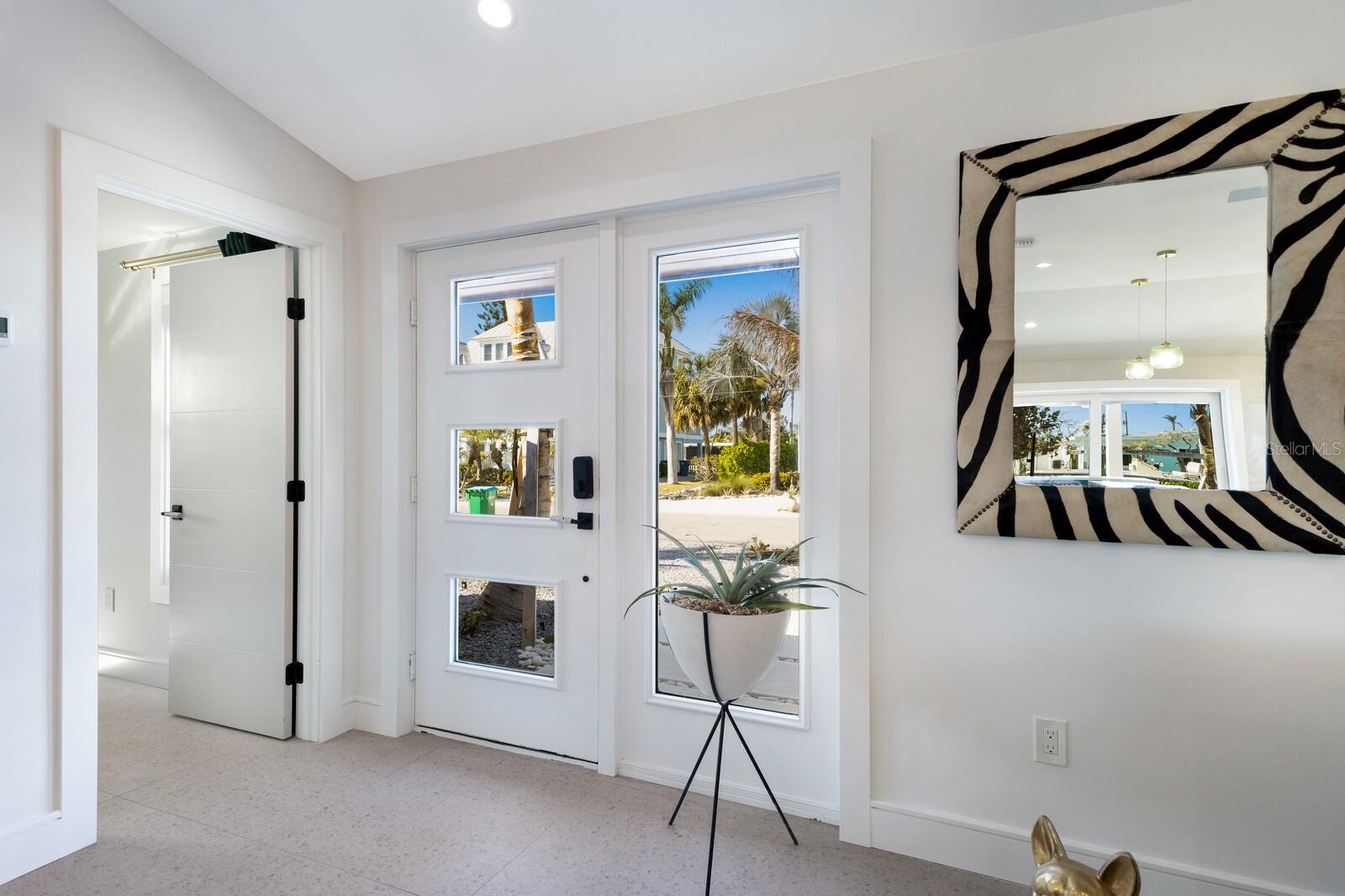 Step into this stunning, brand-new Moss built home, where every detail has been carefully crafted to create a modern, luxury retreat. The spacious living room greets you with oversized terrazzo tiles, flowing seamlessly throughout the entire home, exuding a Palm Springs vibe. A floating fireplace, designed for both wood or decorative candles, serves as a striking focal point. The dining area is beautifully designed with a wall of storage, leading into the custom kitchen outfitted with Eurotech cabinetry, a work island, top-of-the-line appliances, and a pot filler. The coordinating tile backsplash ties together the home’s aesthetic, mirroring the tiles used in the three pristine bathrooms. The primary bedroom suite is a true highlight, featuring a wet bar with a refrigerator, ample storage, and an elegant lighted alabaster countertop. Enjoy the luxury of a walk-in closet and a fabulous en-suite bath with a soaking tub, double vanities, and a large walk-in shower with direct access to the open-air outdoor shower and pool area. On the opposite side of the home, a spacious second bedroom offers an en-suite bath and sliders leading out to the outdoors. The third bedroom, located just across the hall from a convenient pool bath, includes a washer/dryer and an exterior door, perfect for guests enjoying the pool. Newly constructed with everything from under-house plumbing to the new electric service, insulation, walls, and floors, this home has been designed for the ultimate comfort and convenience. Outside, enjoy tropical landscaping by Lancaster Design, featuring pavers and turf, along with a sandy area. The brand-new Trex deck, with water and electricity, is perfect for relaxing by the canal, and the 10,000 lb. boat lift provides easy access to the water for boating adventures. This home is being sold turnkey furnished, with a custom golf cart and a 2022 Carolina Skiff included, making it the ultimate Anna Maria Island getaway. Located on a cul-de-sac and just minutes from shops, restaurants, and the beach, this property offers the perfect combination of luxury living and island charm. Don’t miss the chance to make this dream home yours—schedule a showing today!