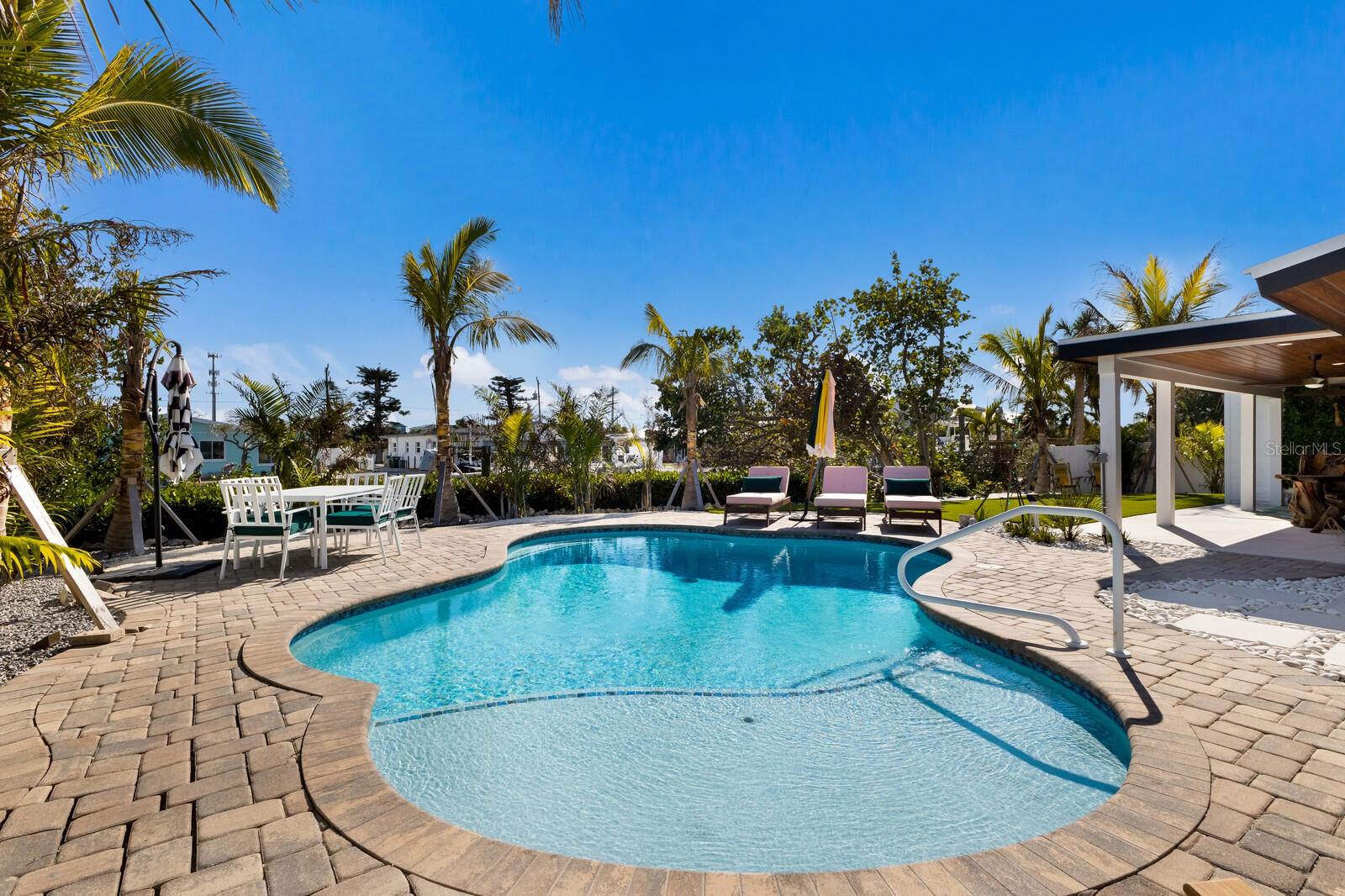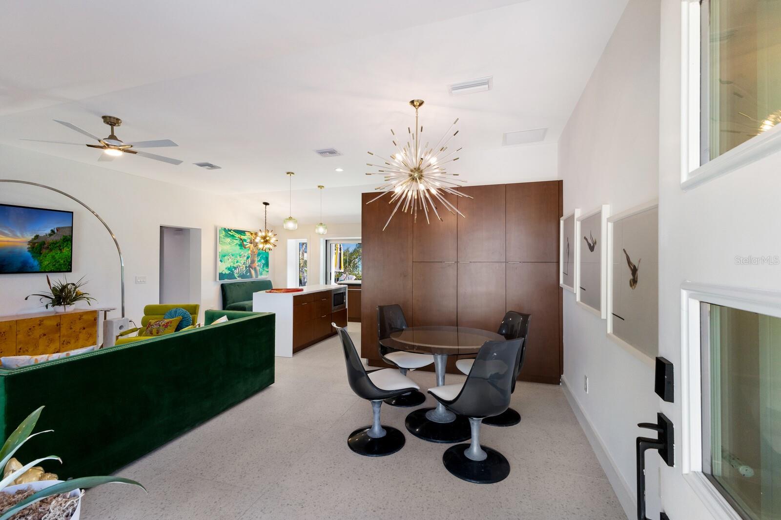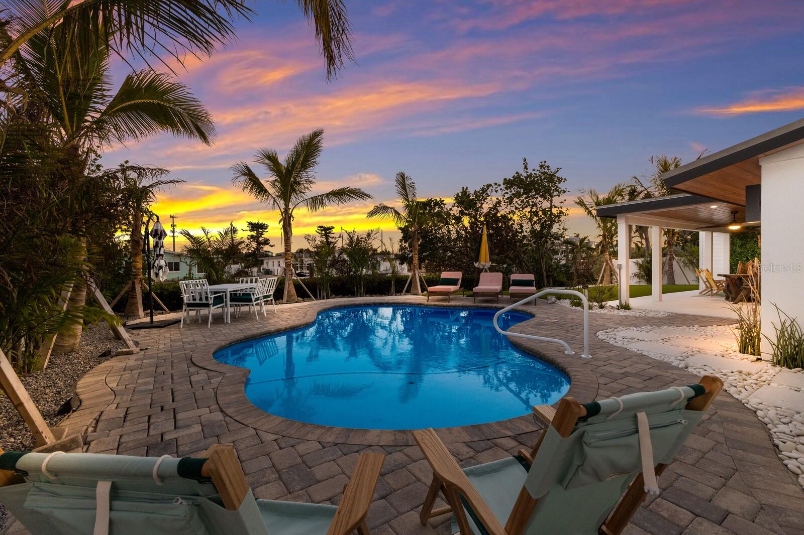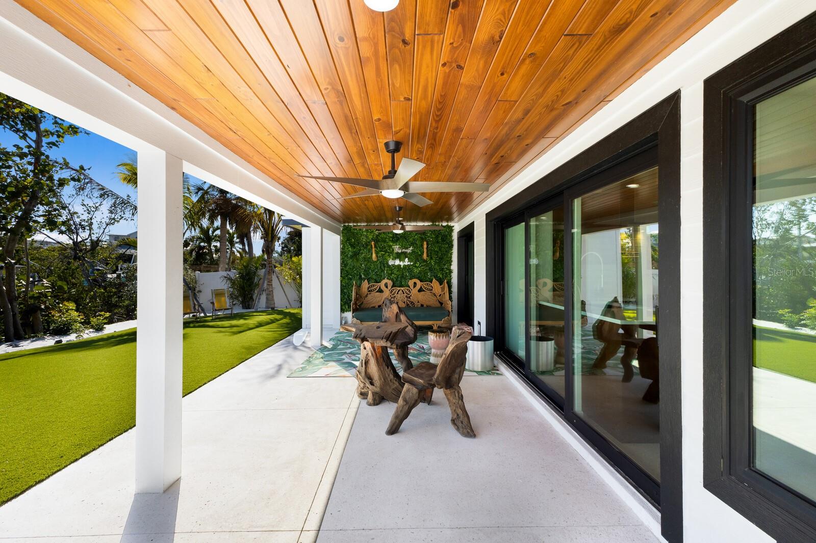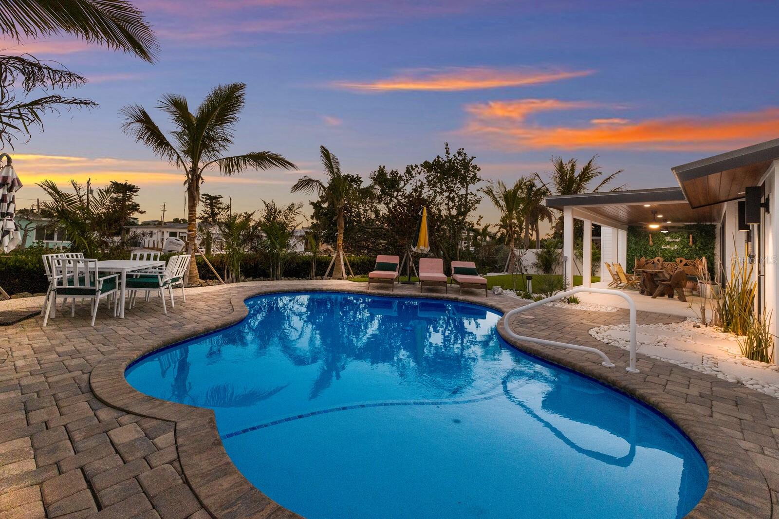 Step into this stunning, brand-new Moss built home, where every detail has been carefully crafted to create a modern, luxury retreat. The spacious living room greets you with oversized terrazzo tiles, flowing seamlessly throughout the entire home, exuding a Palm Springs vibe. A floating fireplace, designed for both wood or decorative candles, serves as a striking focal point. The dining area is beautifully designed with a wall of storage, leading into the custom kitchen outfitted with Eurotech cabinetry, a work island, top-of-the-line appliances, and a pot filler. The coordinating tile backsplash ties together the home’s aesthetic, mirroring the tiles used in the three pristine bathrooms. The primary bedroom suite is a true highlight, featuring a wet bar with a refrigerator, ample storage, and an elegant lighted alabaster countertop. Enjoy the luxury of a walk-in closet and a fabulous en-suite bath with a soaking tub, double vanities, and a large walk-in shower with direct access to the open-air outdoor shower and pool area. On the opposite side of the home, a spacious second bedroom offers an en-suite bath and sliders leading out to the outdoors. The third bedroom, located just across the hall from a convenient pool bath, includes a washer/dryer and an exterior door, perfect for guests enjoying the pool. Newly constructed with everything from under-house plumbing to the new electric service, insulation, walls, and floors, this home has been designed for the ultimate comfort and convenience. Outside, enjoy tropical landscaping by Lancaster Design, featuring pavers and turf, along with a sandy area. The brand-new Trex deck, with water and electricity, is perfect for relaxing by the canal, and the 10,000 lb. boat lift provides easy access to the water for boating adventures. This home is being sold turnkey furnished, with a custom golf cart and a 2022 Carolina Skiff included, making it the ultimate Anna Maria Island getaway. Located on a cul-de-sac and just minutes from shops, restaurants, and the beach, this property offers the perfect combination of luxury living and island charm. Don’t miss the chance to make this dream home yours—schedule a showing today!