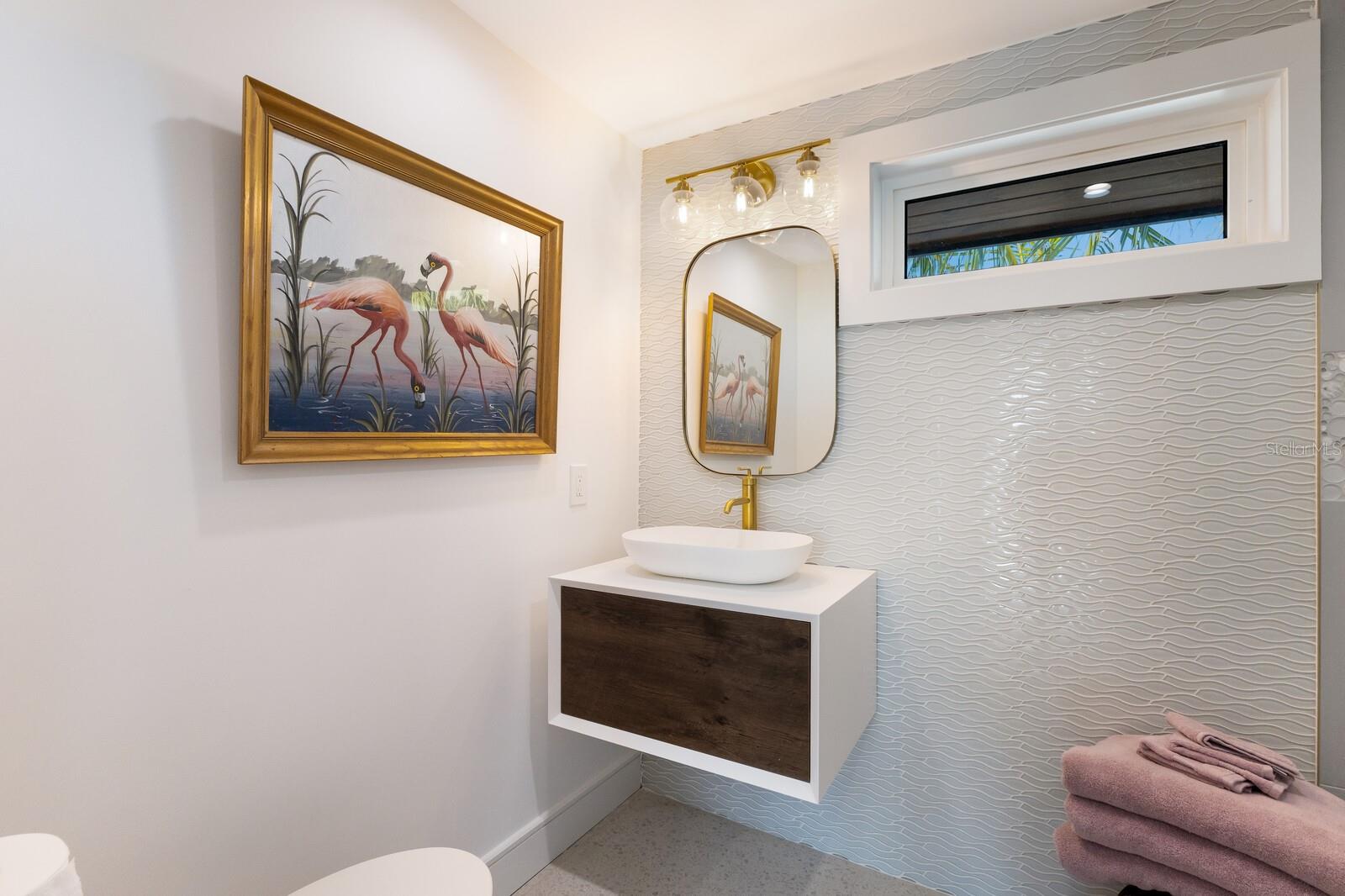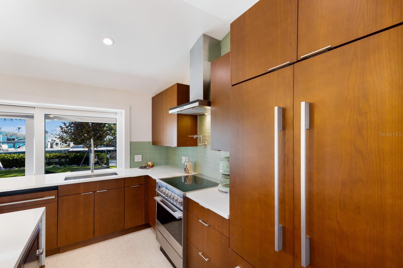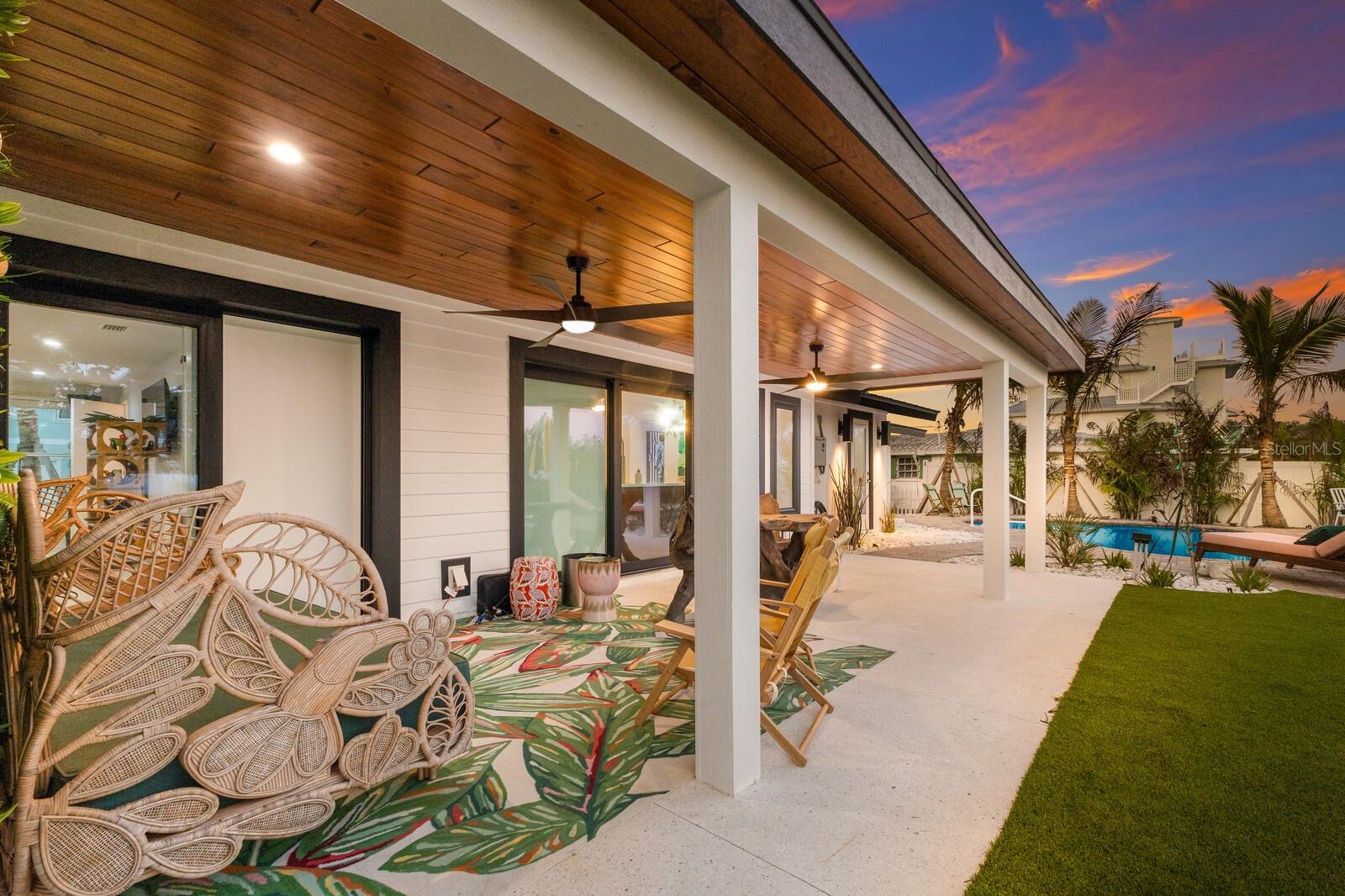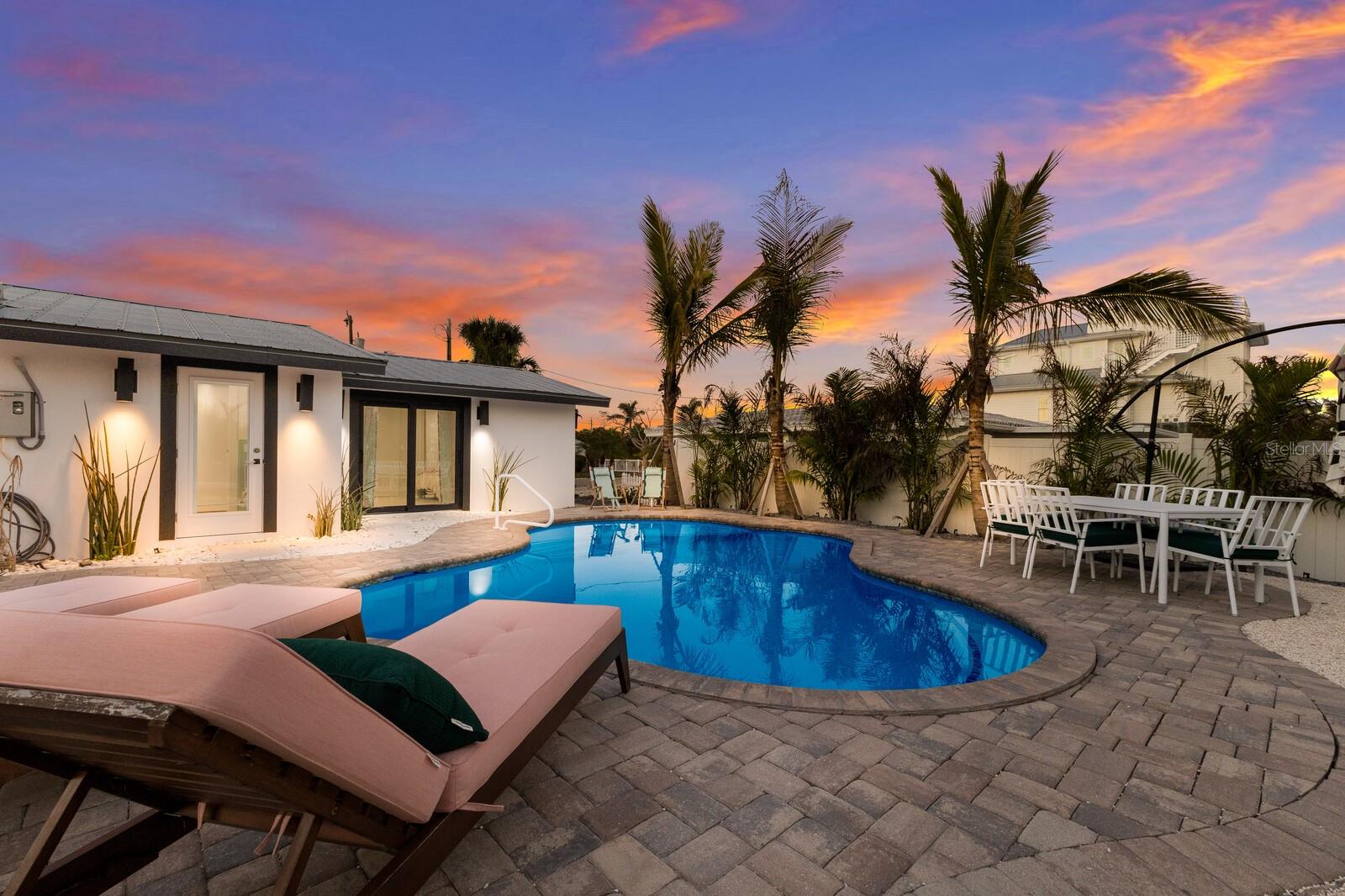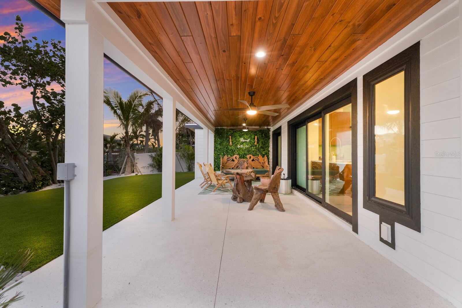 Step into this stunning, brand-new Moss built home, where every detail has been carefully crafted to create a modern, luxury retreat. The spacious living room greets you with oversized terrazzo tiles, flowing seamlessly throughout the entire home, exuding a Palm Springs vibe. A floating fireplace, designed for both wood or decorative candles, serves as a striking focal point. The dining area is beautifully designed with a wall of storage, leading into the custom kitchen outfitted with Eurotech cabinetry, a work island, top-of-the-line appliances, and a pot filler. The coordinating tile backsplash ties together the home’s aesthetic, mirroring the tiles used in the three pristine bathrooms. The primary bedroom suite is a true highlight, featuring a wet bar with a refrigerator, ample storage, and an elegant lighted alabaster countertop. Enjoy the luxury of a walk-in closet and a fabulous en-suite bath with a soaking tub, double vanities, and a large walk-in shower with direct access to the open-air outdoor shower and pool area. On the opposite side of the home, a spacious second bedroom offers an en-suite bath and sliders leading out to the outdoors. The third bedroom, located just across the hall from a convenient pool bath, includes a washer/dryer and an exterior door, perfect for guests enjoying the pool. Newly constructed with everything from under-house plumbing to the new electric service, insulation, walls, and floors, this home has been designed for the ultimate comfort and convenience. Outside, enjoy tropical landscaping by Lancaster Design, featuring pavers and turf, along with a sandy area. The brand-new Trex deck, with water and electricity, is perfect for relaxing by the canal, and the 10,000 lb. boat lift provides easy access to the water for boating adventures. This home is being sold turnkey furnished, with a custom golf cart and a 2022 Carolina Skiff included, making it the ultimate Anna Maria Island getaway. Located on a cul-de-sac and just minutes from shops, restaurants, and the beach, this property offers the perfect combination of luxury living and island charm. Don’t miss the chance to make this dream home yours—schedule a showing today!