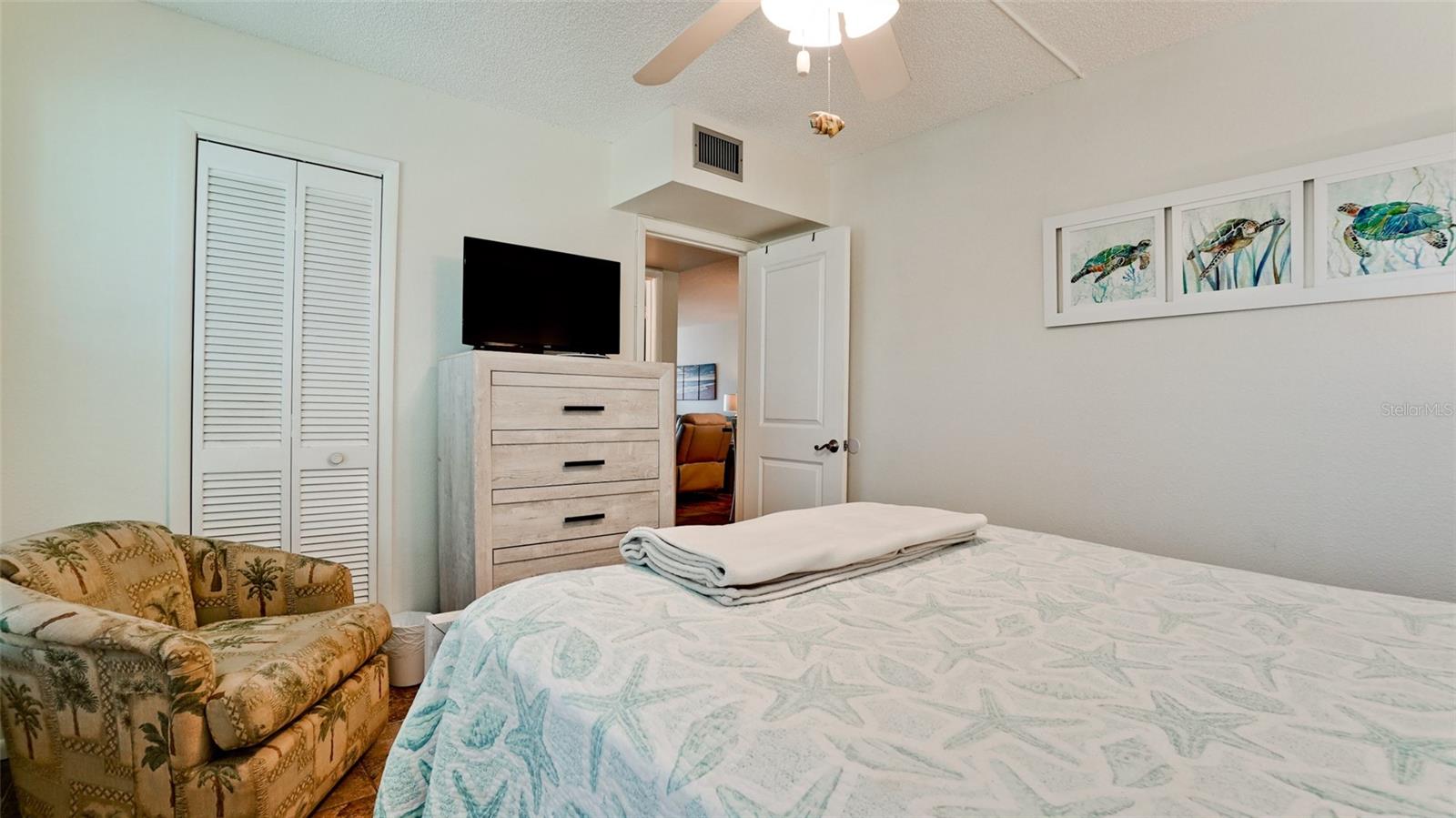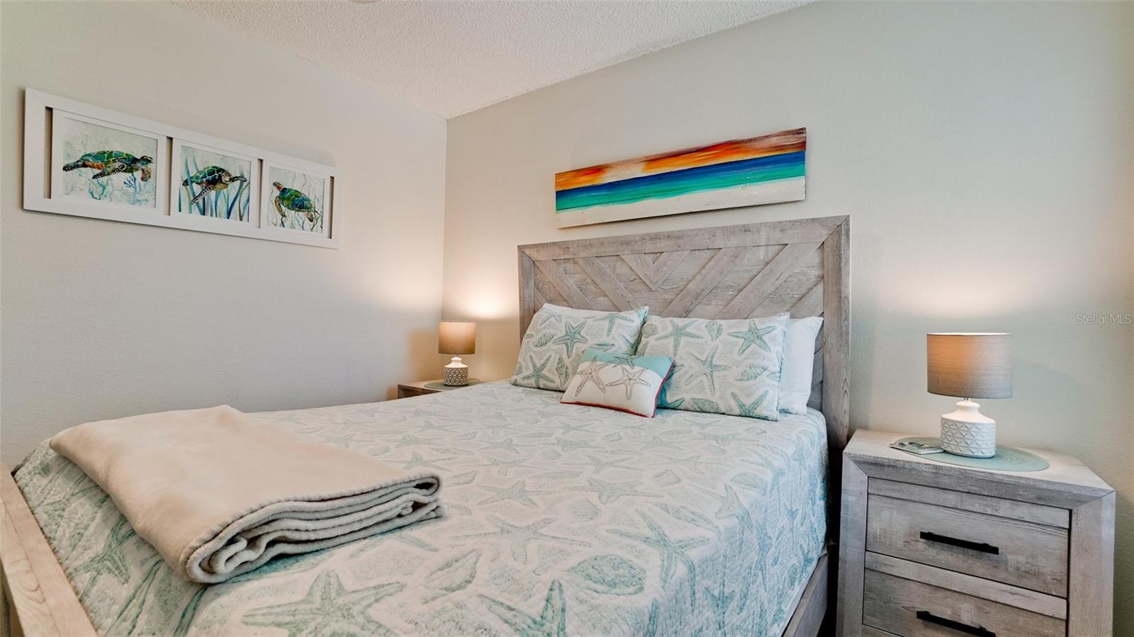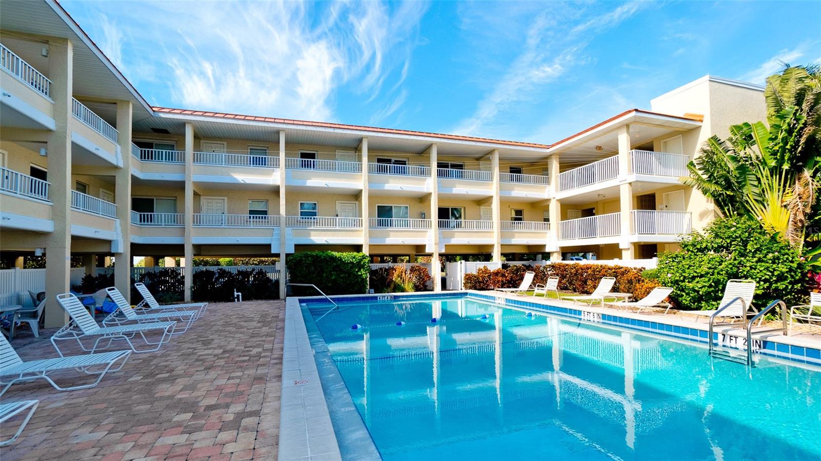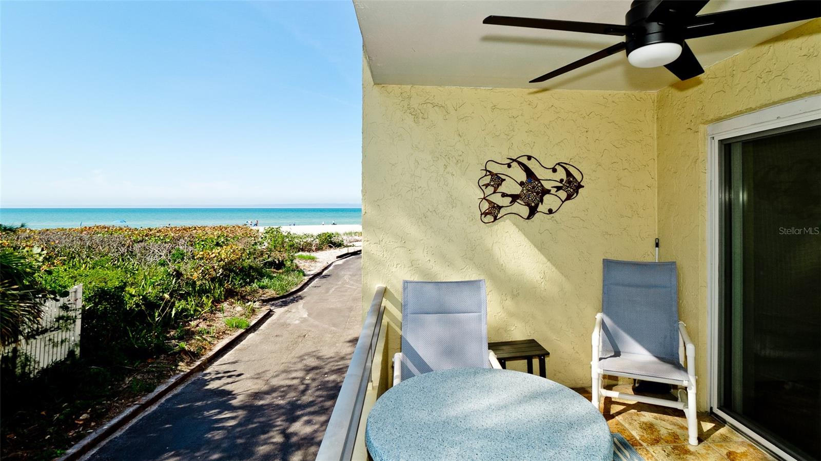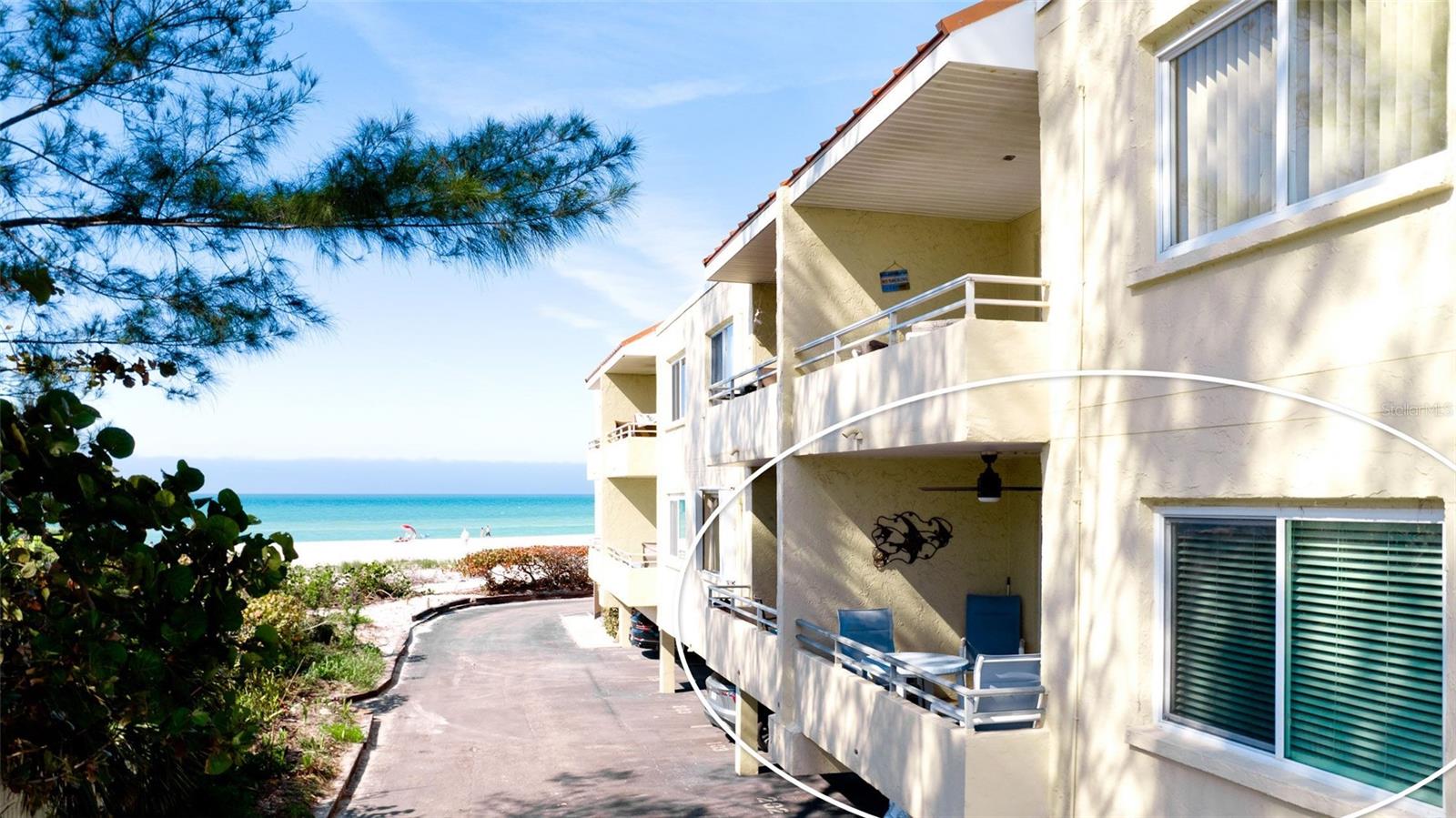 Gulfsands is an elevated direct beach front condominium over looking the beautiful Gulf waters and sandy beaches. This 2 bedroom 2 bath open floor plan is being sold turn key furnished. The complex has a large heated swimming pool, elevator, private beach access, and mature lush landscaping. Conveniently located in the heart of Holmes Beach adjacent to the public beach for added amenities and lifeguard protected beaches. Just a short walk or bike ride to stores, and restaurants. This end unit has 2 reserved covered parking spaces and a private beach storage closet. The primary bedroom has king bed, the 2nd bedroom has queen bed and both rooms have walk in closets. Ceramic tile throughout the unit with a well equipped kitchen. The lanai provides a partial Gulf view and will provide a wonderful gathering place for your morning coffee and afternoon relaxation. Weekly rentals are allowed.