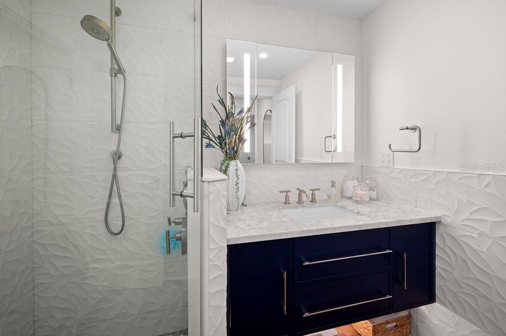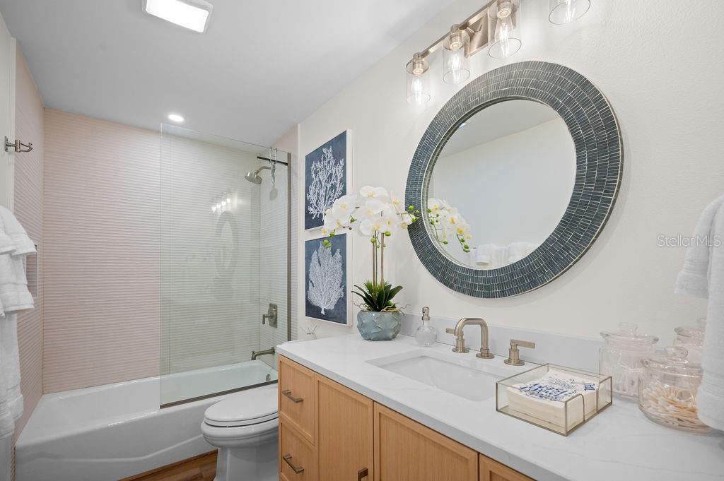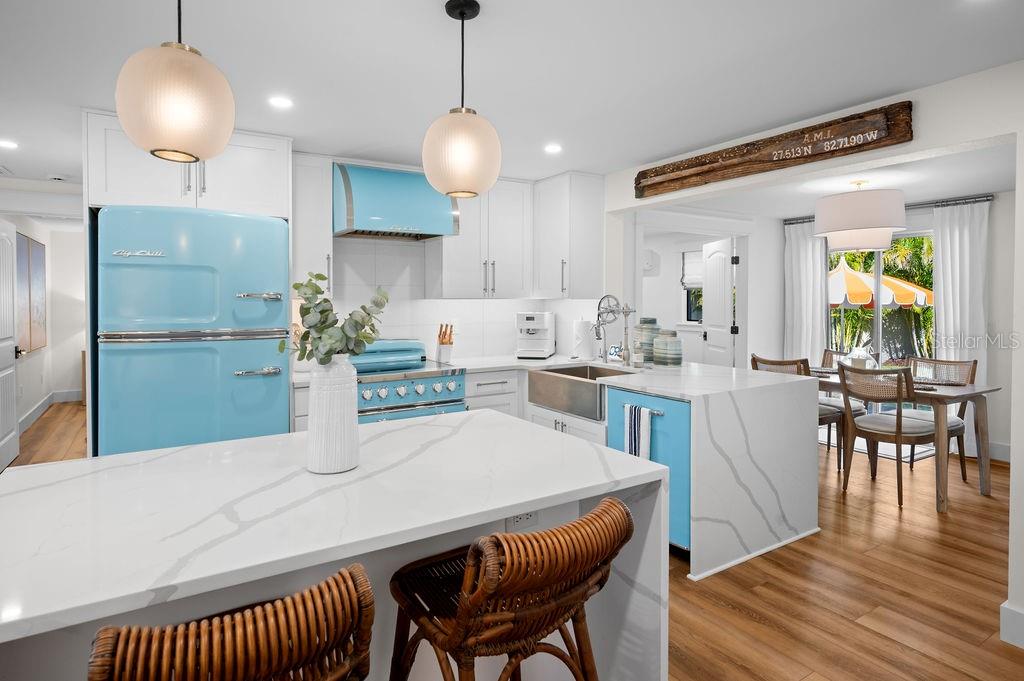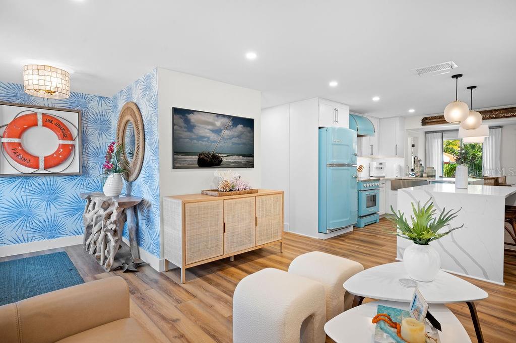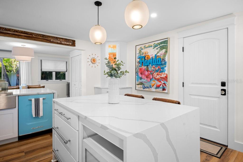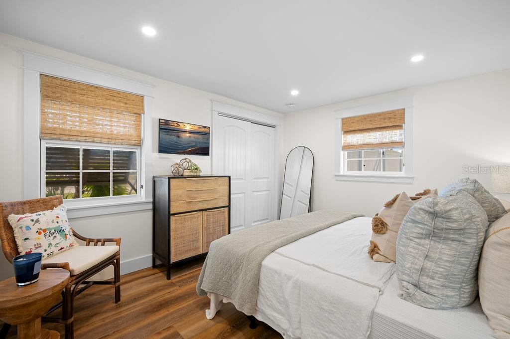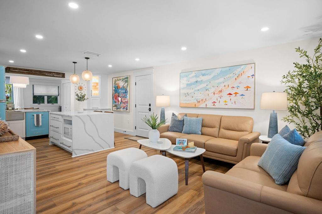 NEW PRICE! LIKE-NEW HOME! This is your ideal beach cottage - fully remodeled into a 3 bedroom/2 bath heated pool home with open floor plan! ONLY two blocks to the beach and allows short term rentals, this retreat is beautifully crafted for island living! It is a like-new home with ALL the upgrades! The practical marries the picture perfect with all the features of this home that you have to see to believe! It has the quartz countertops, tile backsplash, Big Chill appliances, under cabinet LED lighting, Luxury Vinyl Plank flooring, custom window treatments, California Closet Organizers, Dry Bar with Zephyr wine cooler, Waterstone Nautical Wheel faucet, all new furnishings, a garage with new insulated door and epoxy floor, all new landscaping, all new exterior lighting and irrigation, all new insulated windows and doors, fully updated 200 electrical service, Bard A/C unit with Honeywell T-6 Thermostat, Puronics full house water purifier, and the heated pool with Omni Logic Controller, to name a few! All of this is and only a hop, skip and a jump to the beach with fantastic rental potential! There is nothing to do but drop your bags, relax and enjoy!