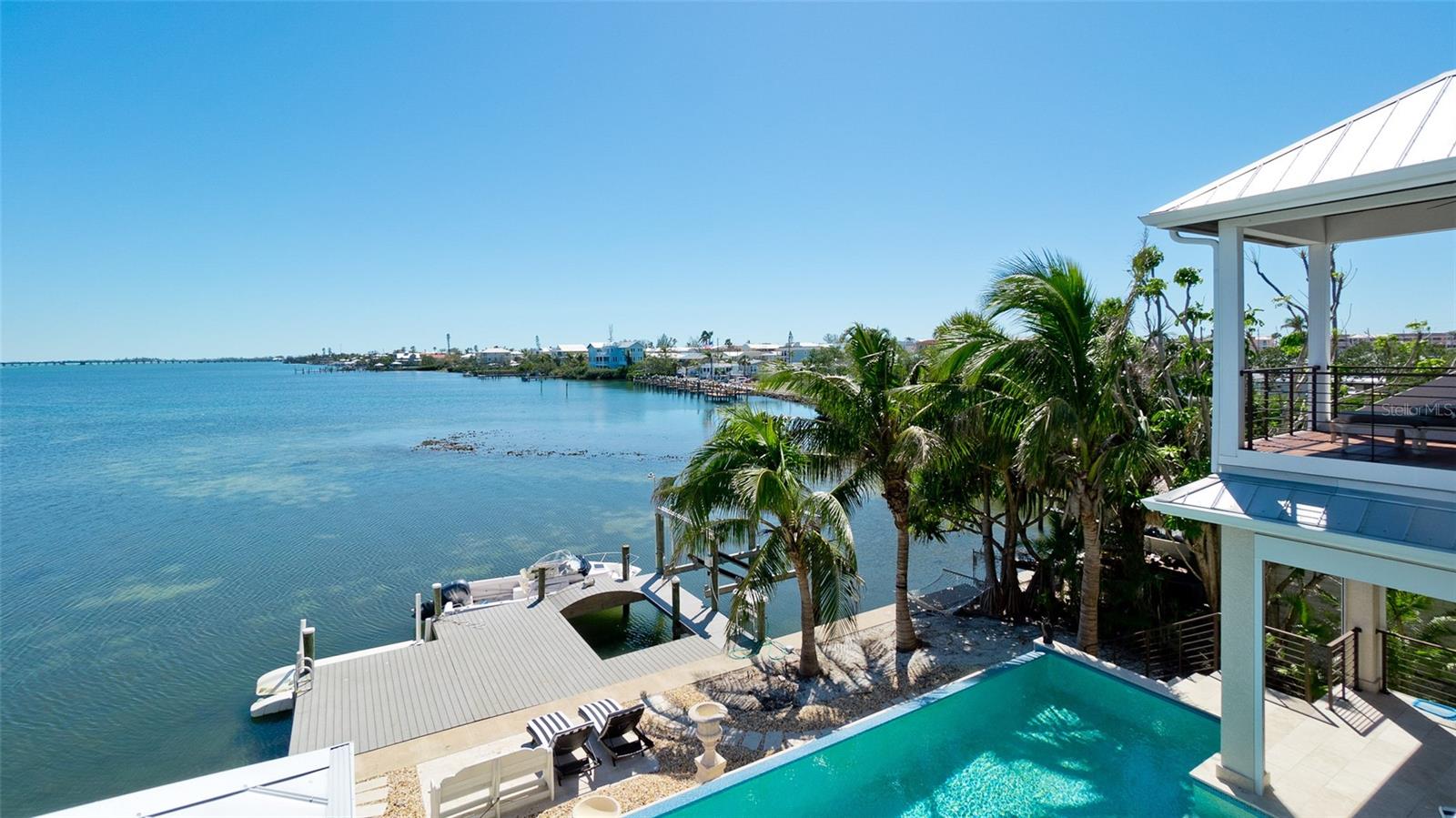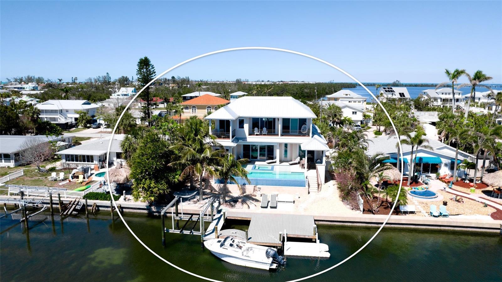 Elegant Bayfront Retreat in Holmes Beach! This exceptional 4-bedroom, 5-bathroom residence built in 2020, offers unparalleled waterfront living on Anna Maria Island. As you walk through the double doors, custom made of mahogany and iron, a masterful design welcomes you with a stunning winding staircase that serves as the centerpiece of the home. With meticulous attention to detail, the interior is equipped with only the finest finishes, including premium appliances, a built-in espresso machine, and a spacious walk-in pantry complete with an additional refrigerator for ultimate convenience. This elevated, well-built home saw no damage from last years hurricanes. The home’s expansive layout features two distinct living areas, perfect for both intimate gatherings and grand entertainment. Throughout the space, large sliding doors and balconies frame panoramic views of the Intracoastal Waterway, providing a constant connection to the serene water vistas. With attention to detail, the owners have integrated every convenience for gracious living including an elevator, Hunter Douglas motorized window treatments, and surround sound throughout the home. Outdoors, the property is a true paradise, with a sparkling infinity-edge pool and a luxurious spa that create an endless horizon effect. Pick your color with beautiful pool lighting. The lanai, equipped with retractable screens, provides a seamless transition between indoor and outdoor living, offering both privacy and comfort. A private dock and boat lift further enhances the property’s appeal for water enthusiasts, making this home a rare gem for those who appreciate both style and functionality. Whether you’re unwinding in your peaceful sanctuary or hosting friends and family, this home provides the perfect blend of elegance, comfort, and coastal charm.