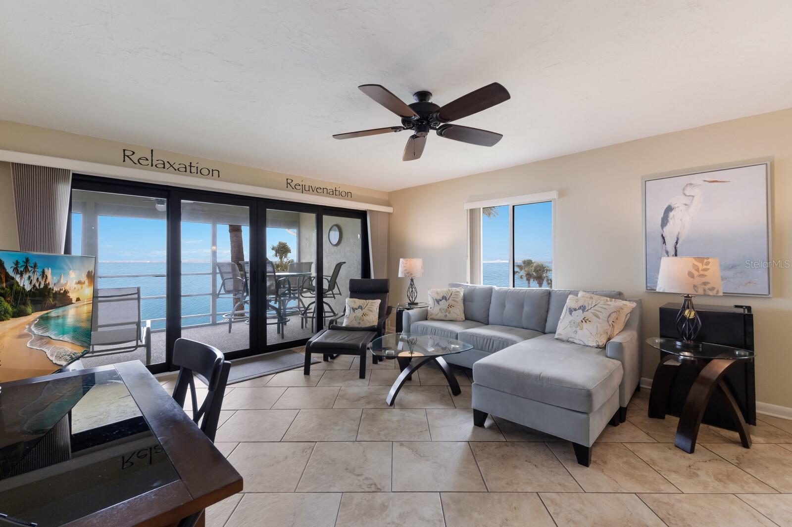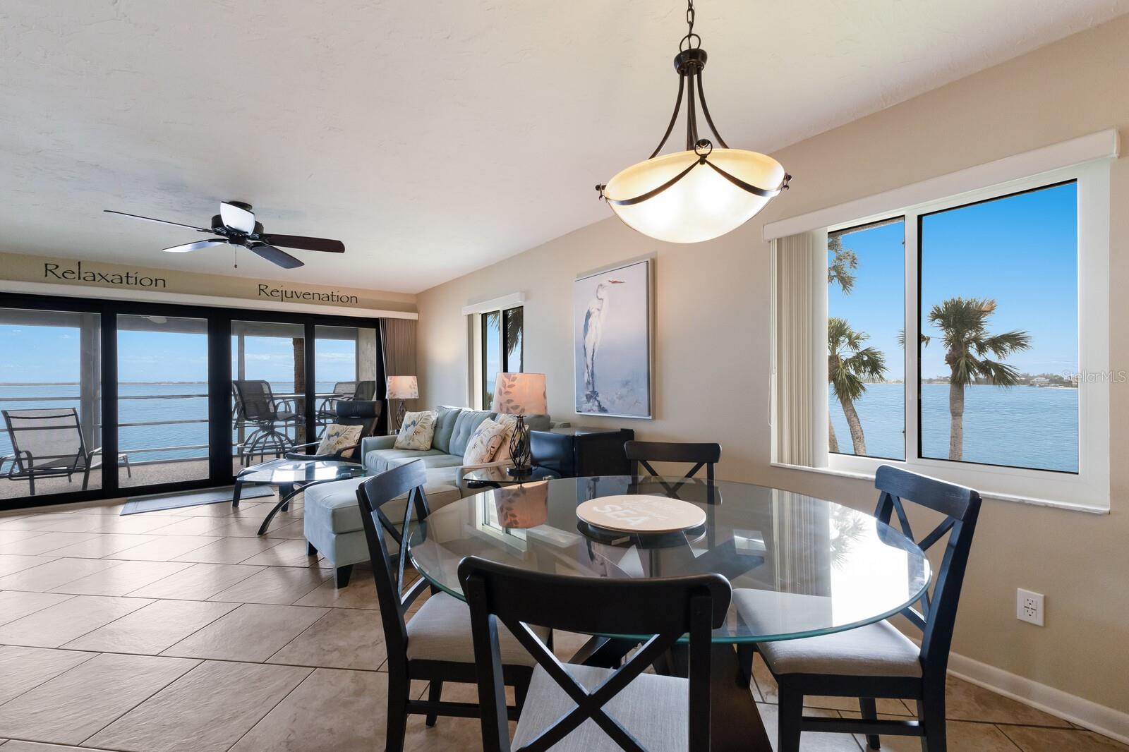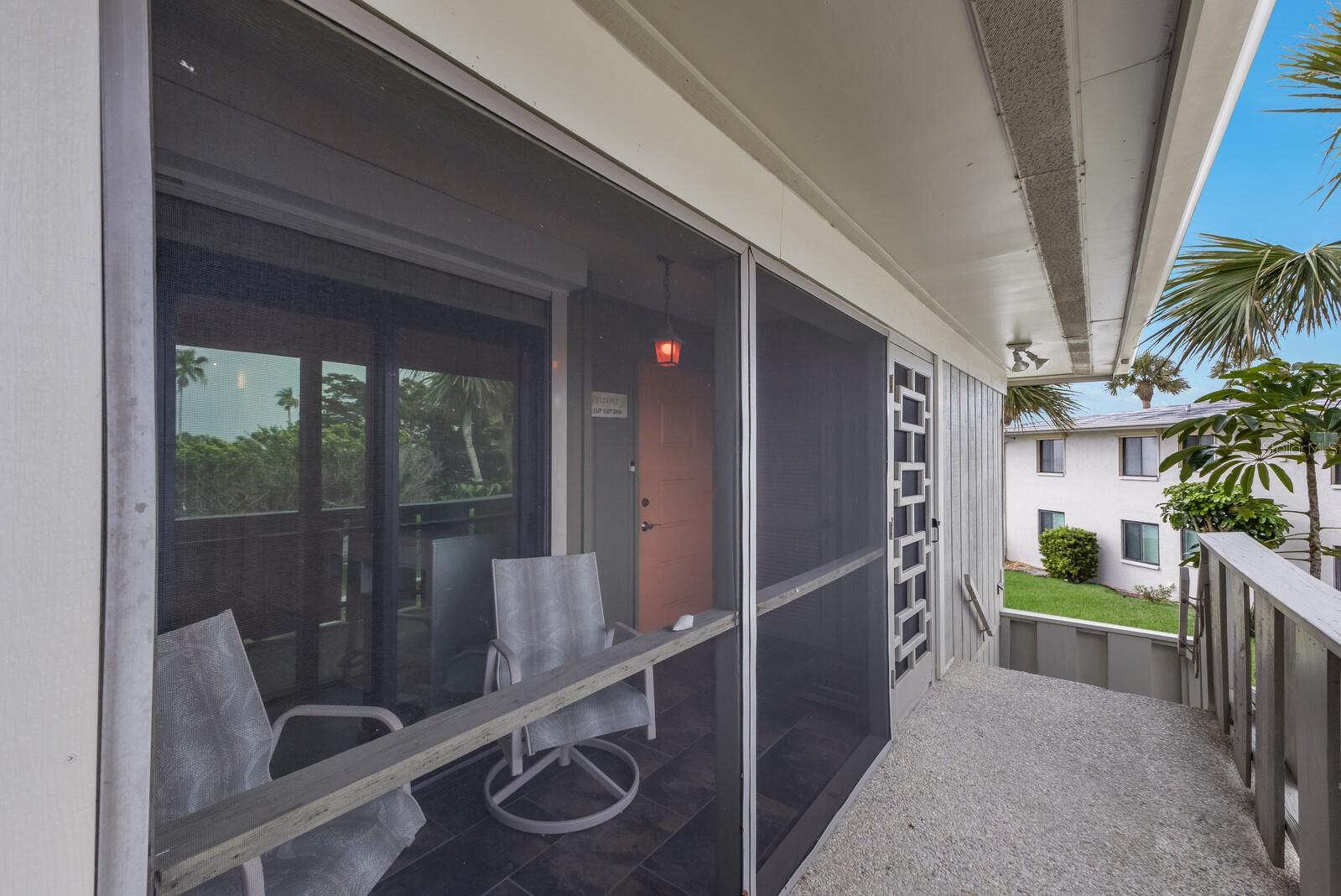 Tucked away in the serene and impeccably maintained West Bay Point & Moorings community, this second floor, end unit condo offers the ideal blend of comfort, privacy, and stunning water views. Thoughtfully designed with two spacious bedrooms, each featuring its own ensuite bath, this condo ensures both convenience and personal retreat. With both a screened front porch and a larger screened back porch, outdoor living is effortless, especially when the backdrop is the sparkling Intracoastal Waterway where sunrises, sailboats, and seabirds become part of your daily routine. Whether you're sipping morning coffee or unwinding after a long day, the views are simply unforgettable. In addition to its tranquil setting and beautifully maintained grounds, this condo offers excellent investment potential, with the association permitting monthly rentals, making it just as appealing for seasonal stays as it is for year round living. Additional features include turnkey furnishings, electric hurricane shutters, new roof being installed, storage and more. Community amenities include a heated pool, tennis courts and boat dockage, adding even more to the relaxed, coastal lifestyle this condo provides. Don't let this perfect little slice of island life get away and make it your waterfront retreat today!