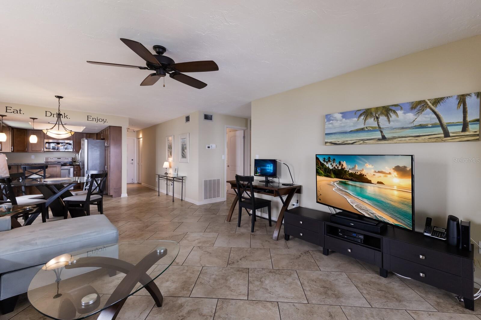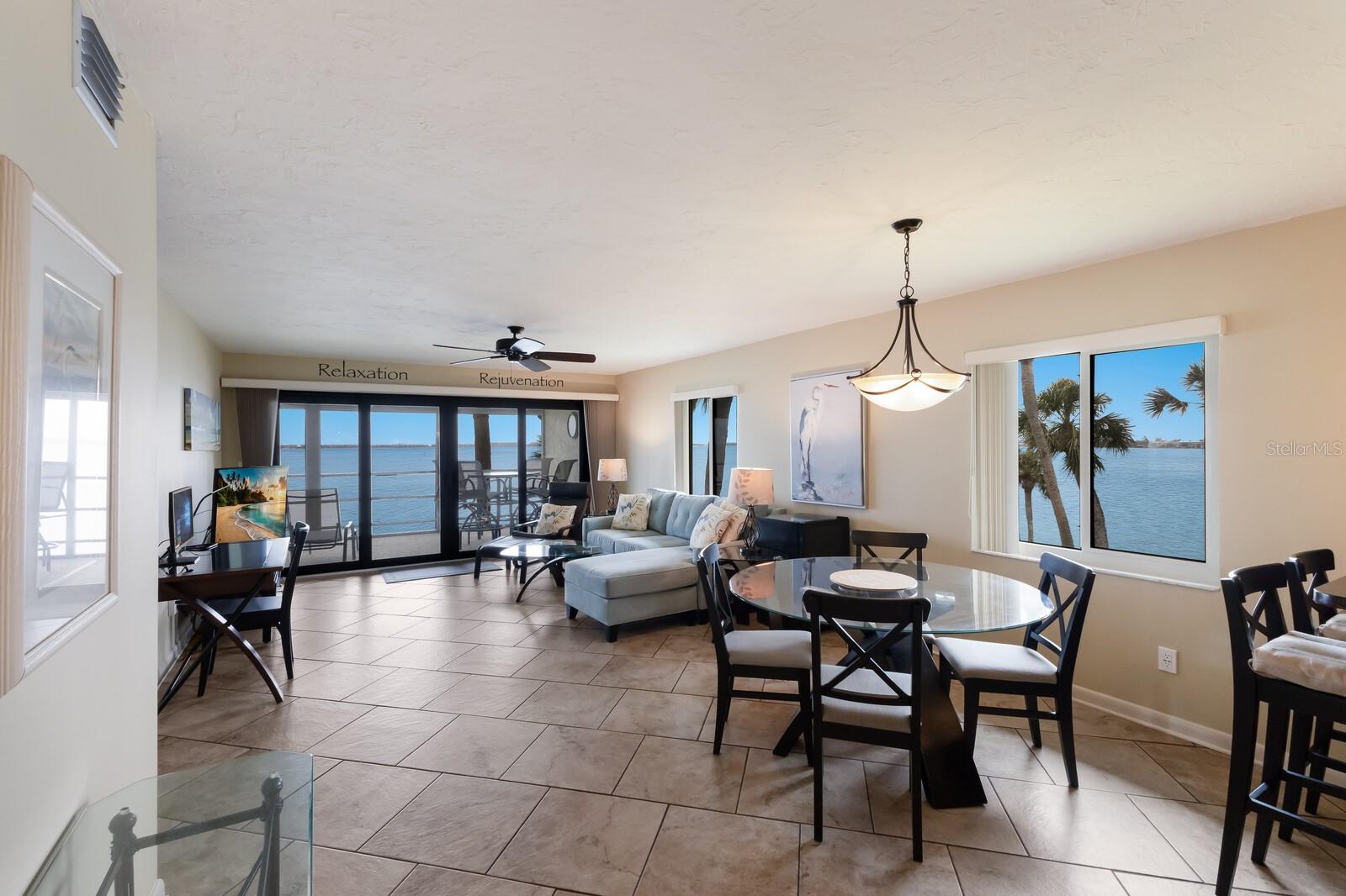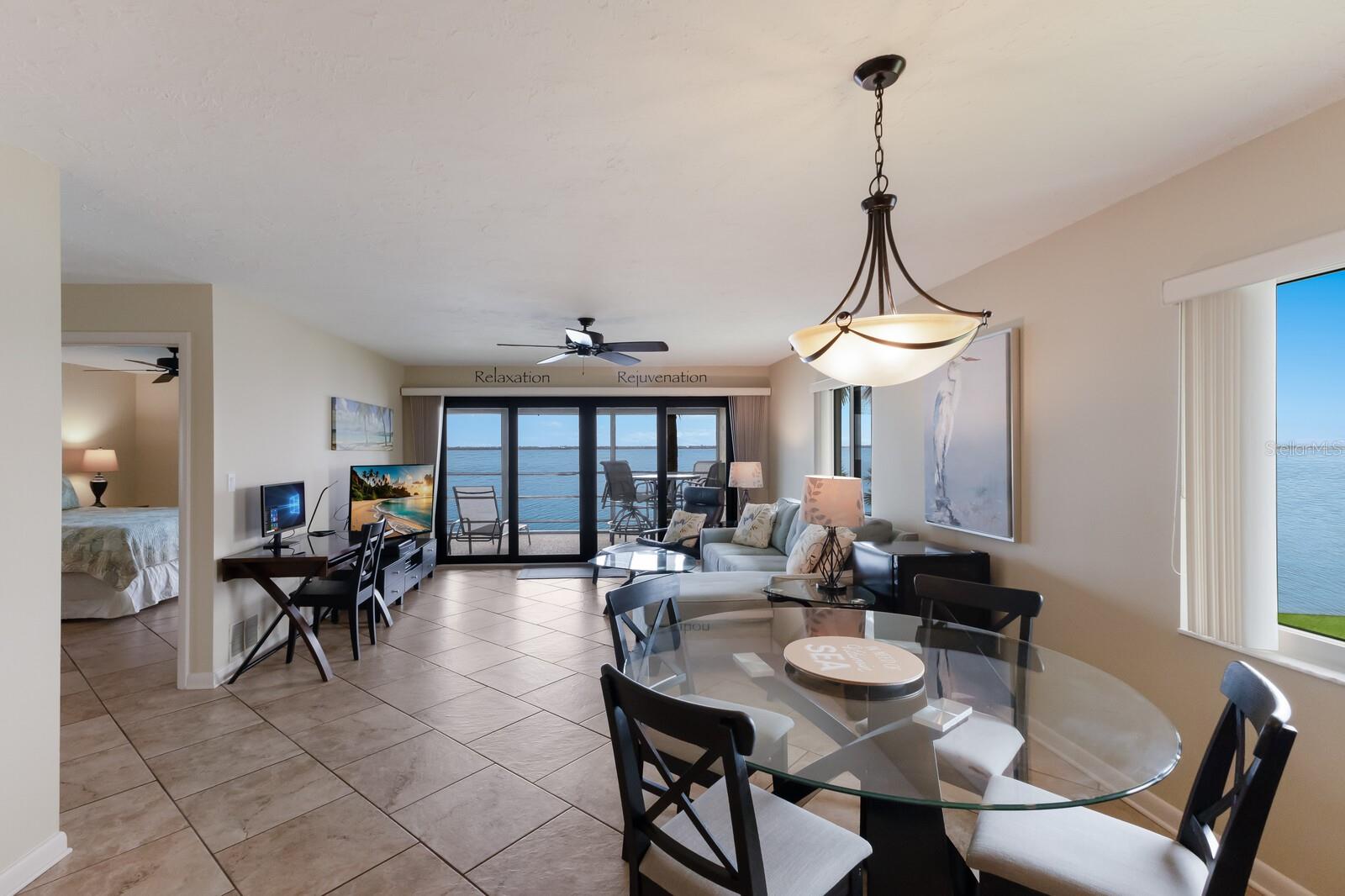 Tucked away in the serene and impeccably maintained West Bay Point & Moorings community, this second floor, end unit condo offers the ideal blend of comfort, privacy, and stunning water views. Thoughtfully designed with two spacious bedrooms, each featuring its own ensuite bath, this condo ensures both convenience and personal retreat. With both a screened front porch and a larger screened back porch, outdoor living is effortless, especially when the backdrop is the sparkling Intracoastal Waterway where sunrises, sailboats, and seabirds become part of your daily routine. Whether you're sipping morning coffee or unwinding after a long day, the views are simply unforgettable. In addition to its tranquil setting and beautifully maintained grounds, this condo offers excellent investment potential, with the association permitting monthly rentals, making it just as appealing for seasonal stays as it is for year round living. Additional features include turnkey furnishings, electric hurricane shutters, new roof being installed, storage and more. Community amenities include a heated pool, tennis courts and boat dockage, adding even more to the relaxed, coastal lifestyle this condo provides. Don't let this perfect little slice of island life get away and make it your waterfront retreat today!