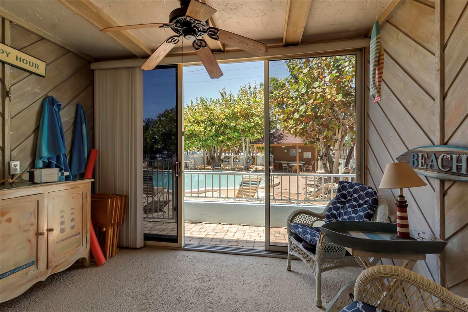 This delightful first floor END unit has been upgraded at the building process. Many extra features include a 3 x 8 room with four windows that can be used for storage, library, office or sewing room. Also this unit has an extra outdoor space off of the master bedroom with plenty of room for an extra table and chairs. This area also has a private outdoor shower for use after the beach or pool. This coastally furnished unit will provide ample space for your time at the beach whether it is for a vacation of year round living. Outdoor spaces include heated pool with brick pavers, BBQ grilling area, shuffleboard courts and storage for beach chairs and bicycles. Cayman Cay has a progressive monthly rental policy if generating income is on your radar when not occupying the home yourself. The convenience of this location cannot be overstated as it is ideally situated just minutes from popular restaurants for casual and fine dining. Publix grocery store, CVS Pharmacy and Ace hardware and are just minutes away. Bring your suitecase and settle in to the coveted laid-back island lifestyle.