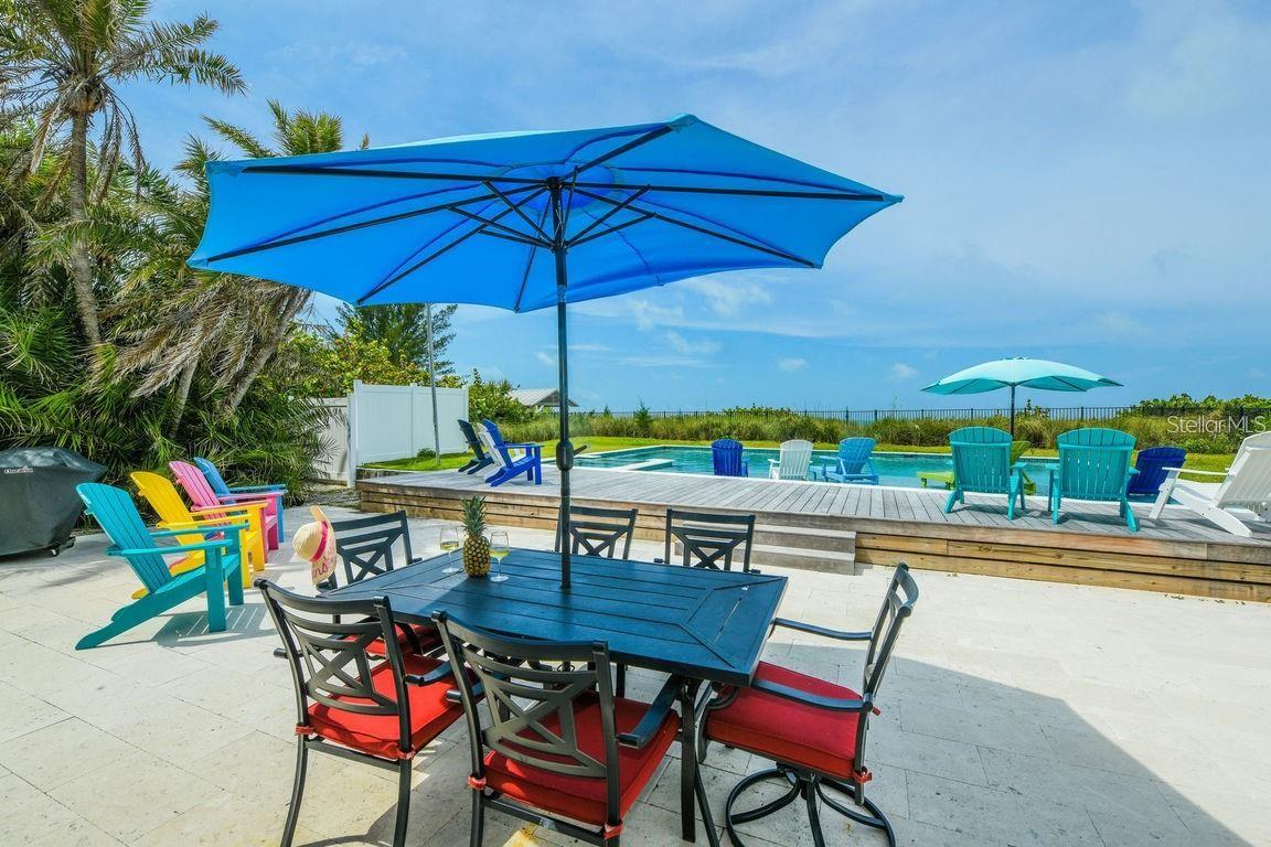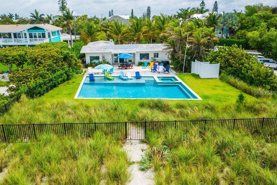 Beachfront Bliss on Anna Maria Island! Welcome to 102 77th Street, affectionately known as “Beachfront Bungalow.” This rare and charming 4-bedroom, 3.5-bath coastal retreat is perfectly positioned on one of the most sought-after stretches of sugar-beautiful sand on Anna Maria Island. With unobstructed Gulf views and direct beach access, this home offers the ultimate island lifestyle. Step outside to one of the largest private beachfront pools on the island, complete with a sun shelf and spa—all framed by lush tropical landscaping. The spacious interior features exposed wood beams, a cozy stone fireplace, and designer coastal furnishings throughout. The gourmet kitchen boasts quartz countertops, stainless steel appliances, and plenty of room to entertain. The luxurious Gulf-facing master suite includes a private bath with dual vanities, a walk-in shower, and a clawfoot soaking tub with breathtaking water views. Thanks to the Burt Harris approval, this property offers flexibility for future expansion—build up to 7 bedrooms and sleep up to 14 guests. Whether you're seeking a serene personal escape or a high-performing vacation rental, this property offers both. Located just minutes from Anna Maria’s shops, dining, and attractions, yet tucked away in a tranquil beachfront setting—this is island living at its best. Don't miss this opportunity to own a true Gulf-front gem. Schedule your private showing today!