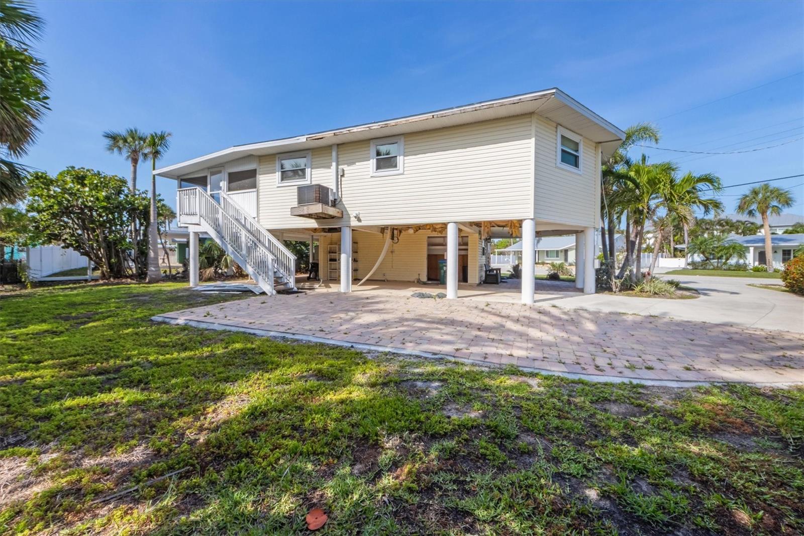 Don't miss the opportunity to own on beautiful Holmes Beach! This elevated 2B/2B home comes with a deeded, unimproved boat slip located at the end of 85th St. While the exterior has damage from 2024 hurricanes, the interior is intact and furnished. Being sold AS IS, this home sits on a 9,000sqft lot and is prime for the buyer who wants to fix it up and make it their own, add a pool, or tear down and start new. The peaceful neighborhood, quiet street, boat slip, and proximity to the beach is idyllic for island living. Book your showing today!