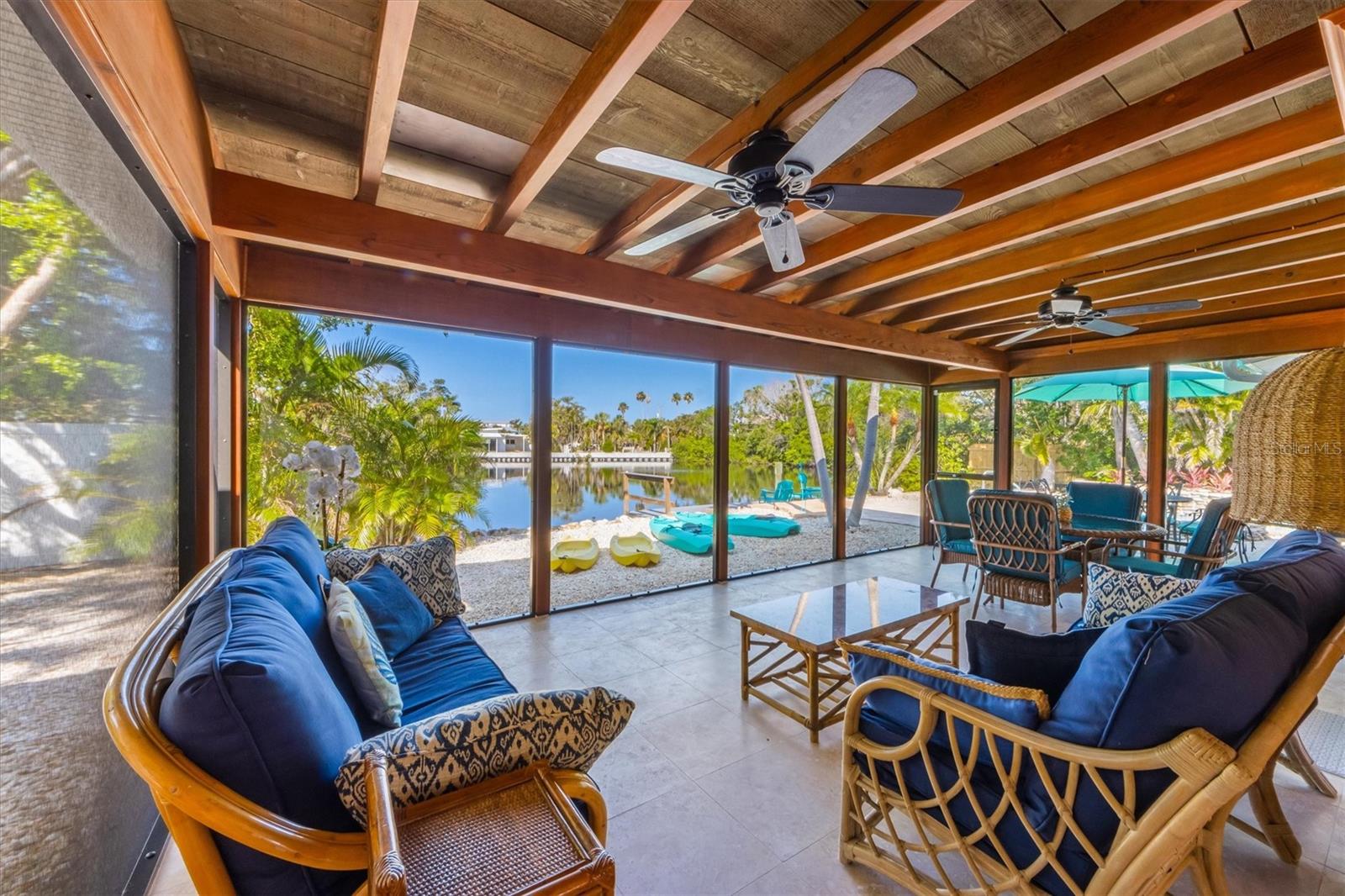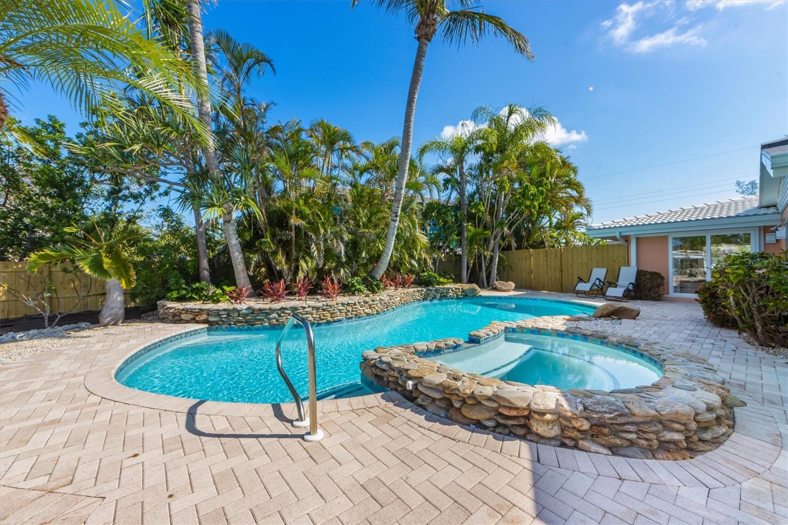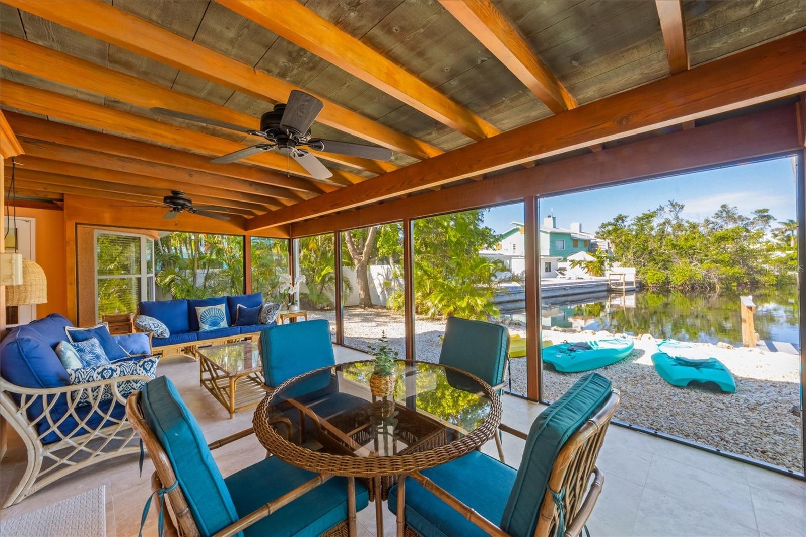 Welcome to your dream lakefront retreat! This fully remodeled, solar powered, 2-bedroom, 2-bathroom home offers both comfort and space, featuring stunning travertine tile throughout. Enjoy gorgeous views of Clark Lake with 90 feet of seawall and a composite dock perfect for launching kayaks or simply soaking in breathtaking sunsets and birdwatching. The screened-in porch offers an extension of living space and is a great place to come in and relax after an afternoon spent in the salt water pool with spa. Inside, the updated kitchen boasts stainless steel appliances, blending style and function. The converted garage now serves as a versatile bonus room, perfect as a game room, additional sleeping space, or a cozy retreat—not included in the official square footage. The split design is ideal. The bedrooms are both spacious and practical. Located centrally, you’re just minutes from local shops, beautiful beaches, and convenient trolley stops. Whether you’re entertaining, unwinding, or exploring, this home has it all. This home has been a successful rental for more than 10 years. It sustained damage during Helene and has been fully renovated. Is being sold turn key and but owners have decided not to put home back on rental market.