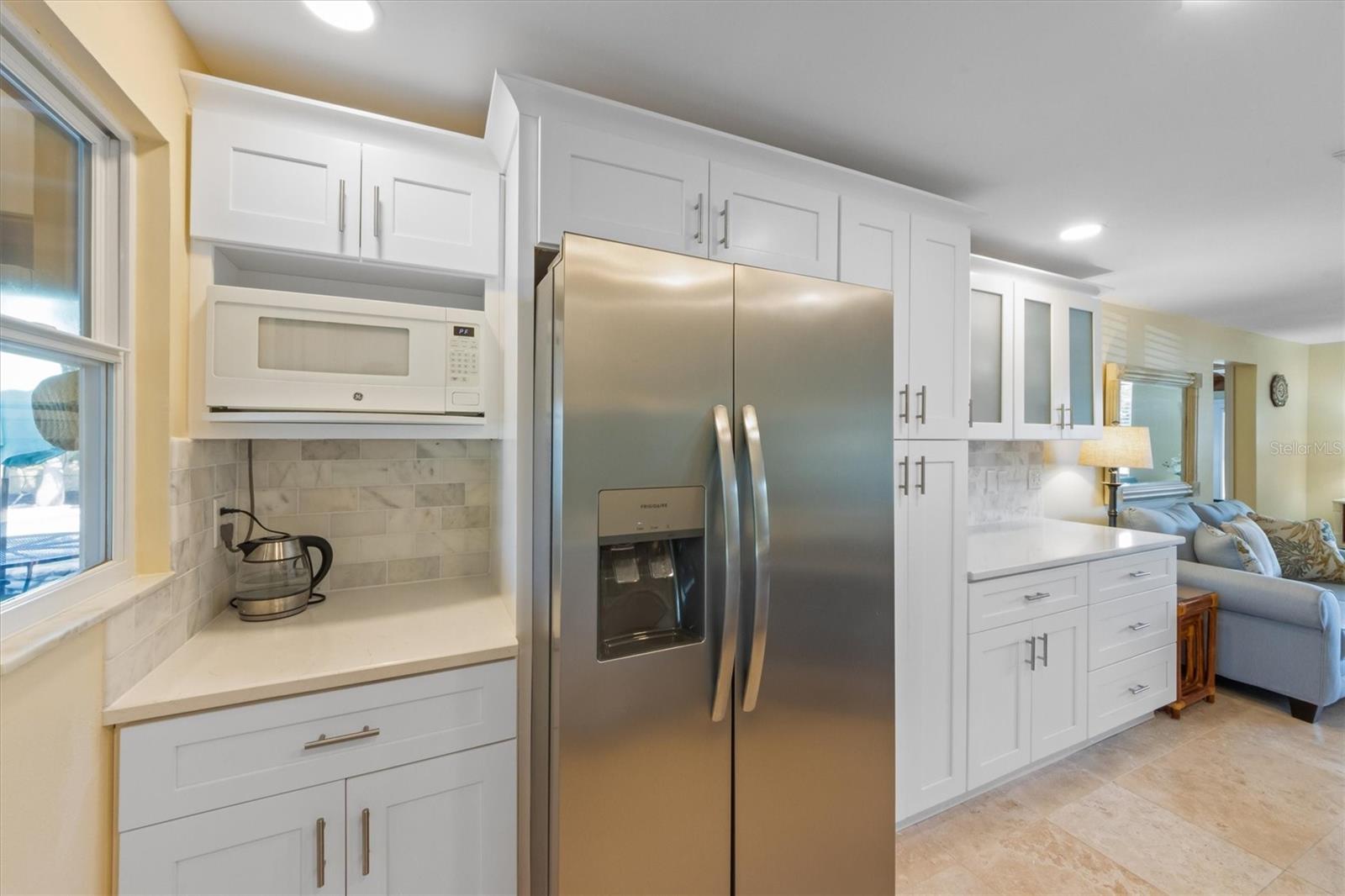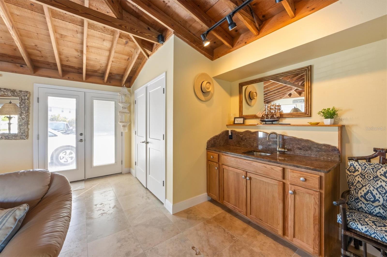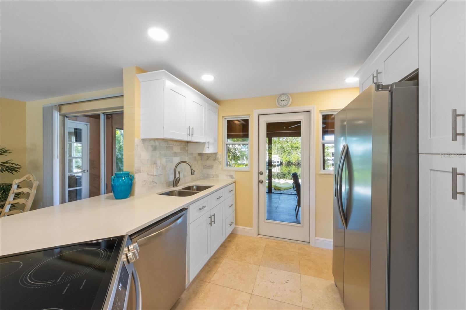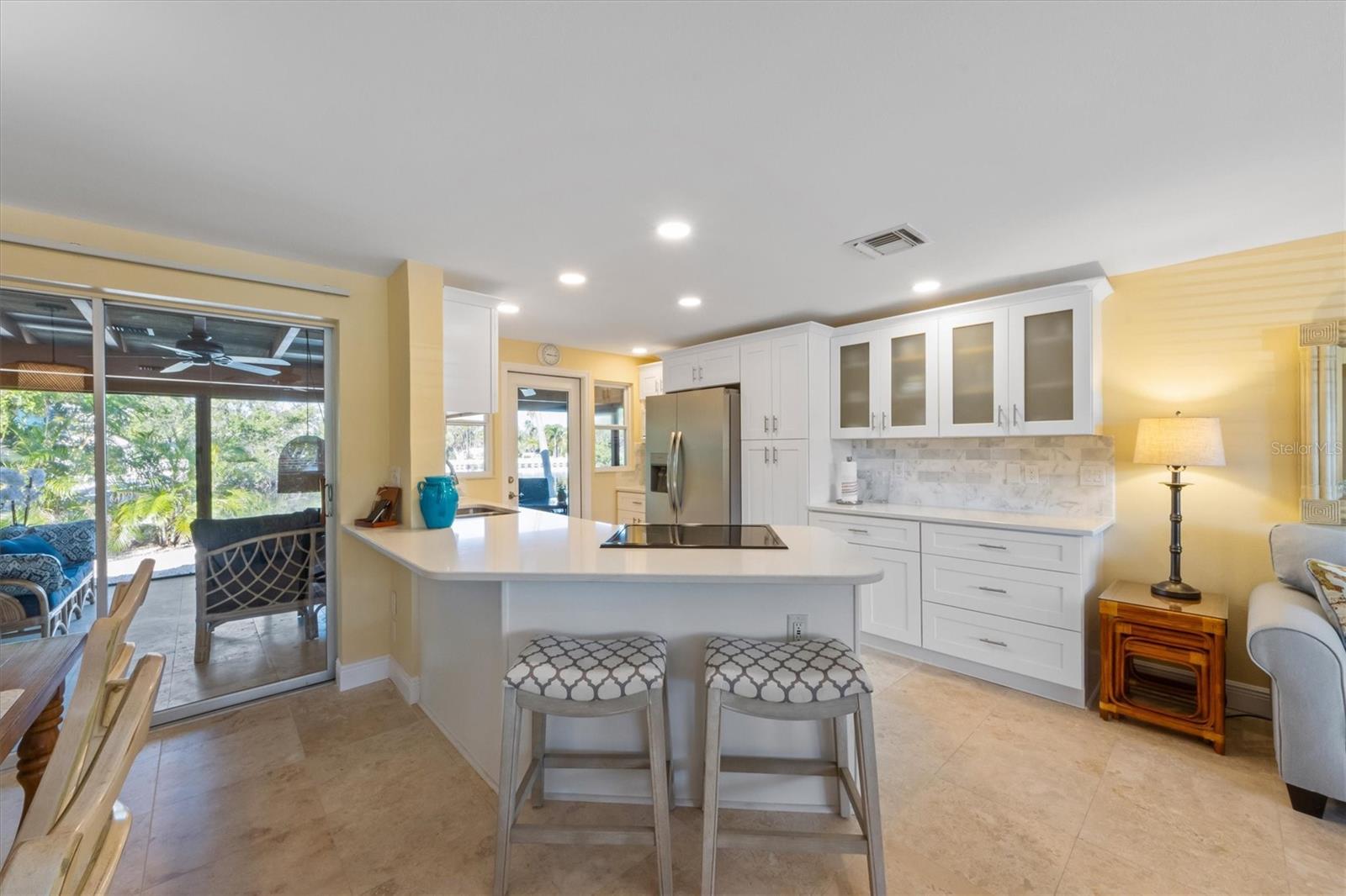 Welcome to your dream lakefront retreat! This fully remodeled, solar powered, 2-bedroom, 2-bathroom home offers both comfort and space, featuring stunning travertine tile throughout. Enjoy gorgeous views of Clark Lake with 90 feet of seawall and a composite dock perfect for launching kayaks or simply soaking in breathtaking sunsets and birdwatching. The screened-in porch offers an extension of living space and is a great place to come in and relax after an afternoon spent in the salt water pool with spa. Inside, the updated kitchen boasts stainless steel appliances, blending style and function. The converted garage now serves as a versatile bonus room, perfect as a game room, additional sleeping space, or a cozy retreat—not included in the official square footage. The split design is ideal. The bedrooms are both spacious and practical. Located centrally, you’re just minutes from local shops, beautiful beaches, and convenient trolley stops. Whether you’re entertaining, unwinding, or exploring, this home has it all. This home has been a successful rental for more than 10 years. It sustained damage during Helene and has been fully renovated. Is being sold turn key and but owners have decided not to put home back on rental market.