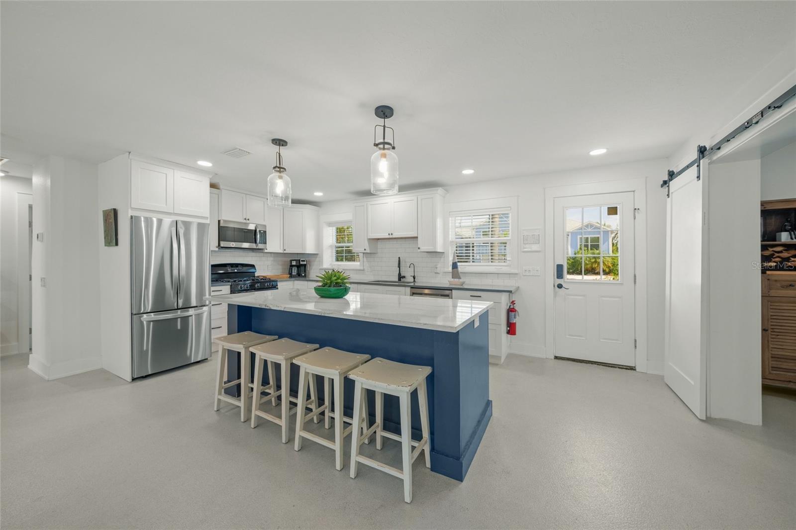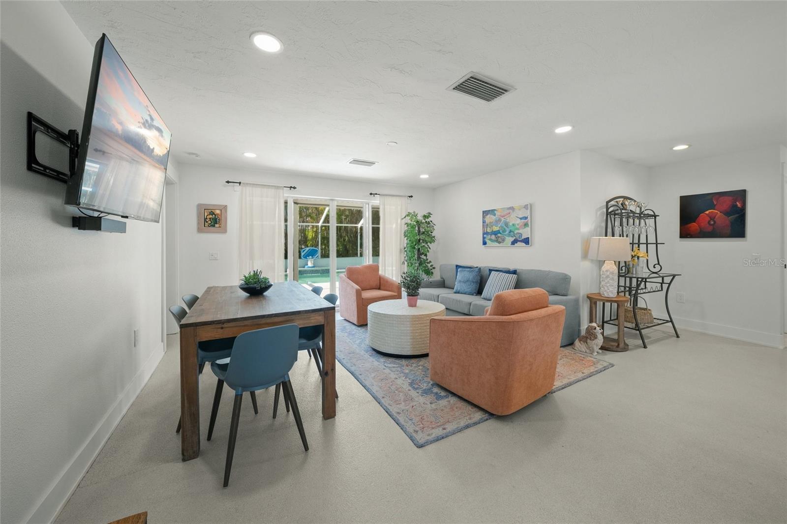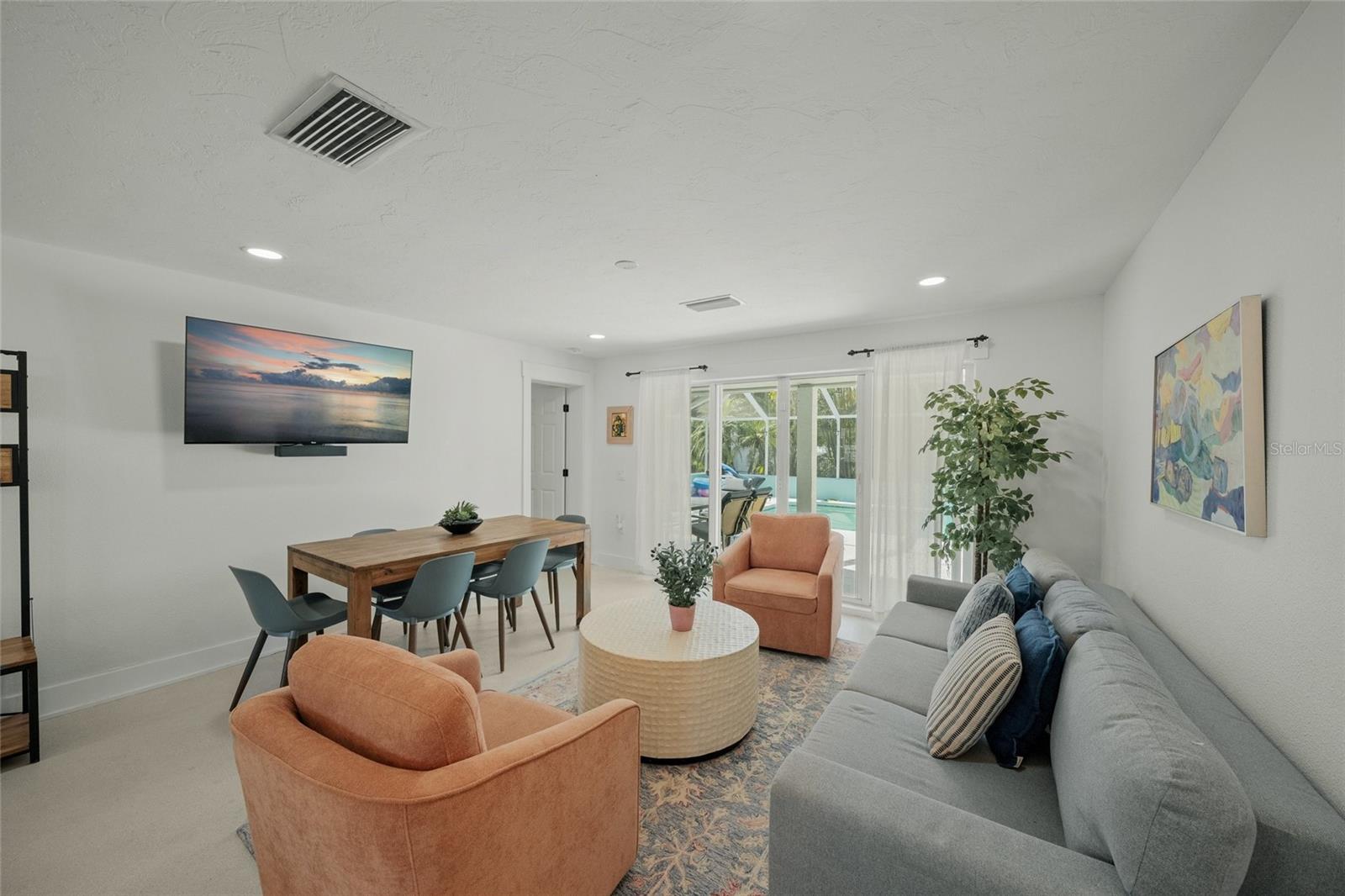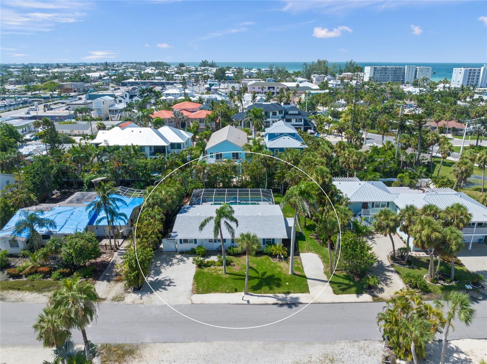 Coastal elegance meets modern living in this beautifully updated Holmes Beach retreat located on the peaceful stretch of 57th Street—one of the narrowest parts of Anna Maria Island. This prime location offers the least crowded beach access on the island, just steps from the shoreline. The home features sun-drenched interiors, thoughtfully designed living spaces, and a lush backyard ideal for both entertaining and relaxing. Recent upgrades include a refurbished large, heated pool completed in 2024 with a new pool heater, plus pool and AC equipment elevated seven feet above sea level for added peace of mind. Saltwater-resistant terrazzo flooring and moisture-proof six-inch plastic baseboards are tailored to beachside living. A secure eight-by-ten shed with keyless entry adds convenient outdoor storage. Smart home features include Wi-Fi control of the thermostat, sprinkler system, pool pump and temperature monitor, and security cameras, including one with 360-degree remote view. A 5G wireless router keeps the home connected for just $30 per month, eliminating the need for cable. Additional property highlights include a whole-home water softener, reverse osmosis water filtration for the kitchen spigot and ice maker, three TVs, a sound bar with subwoofer and Bluetooth connectivity, and all-new furniture and appliances purchased in 2024, including the washer, refrigerator, and stove. Beach essentials such as a bike, buggy cooler, eight beach chairs, and several umbrellas are included. Outdoor amenities include a weatherproof aluminum ping pong table, screened lanai (new in 2022), and stylish lanai furniture. The property also includes reinforced door panels designed to make the home watertight up to 32 inches above ground level (7+ feet above sea level). Located within walking distance to restaurants, boutiques, a seafood and specialty grocery market, clothing shops, hardware stores, and multiple ice cream shops. This home also offers nearby access to lighted tennis courts, pickleball, basketball, baseball fields, and two dog parks. This meticulously maintained property offers exceptional versatility and comfort in one of the most coveted locations on Anna Maria Island.