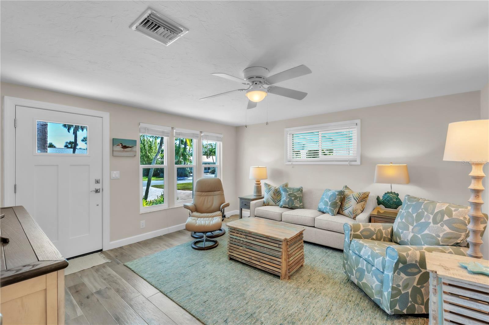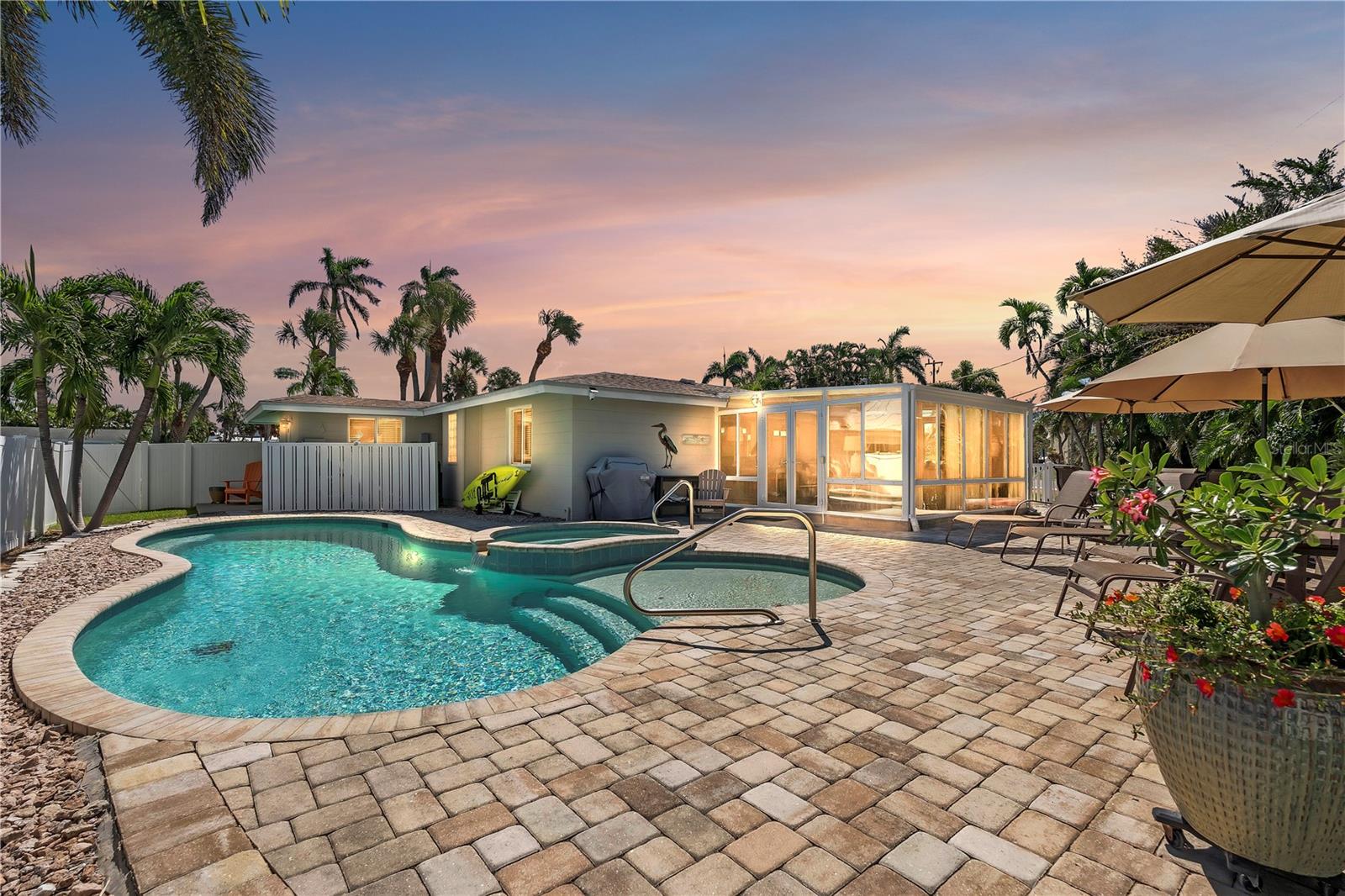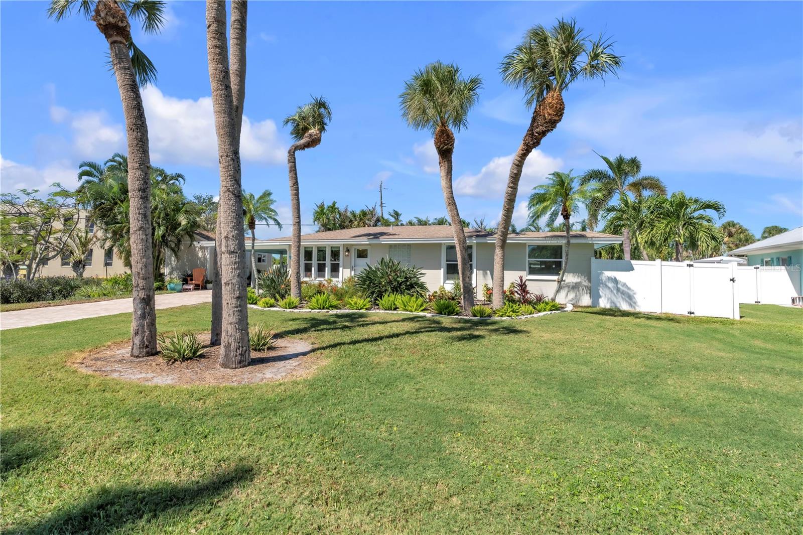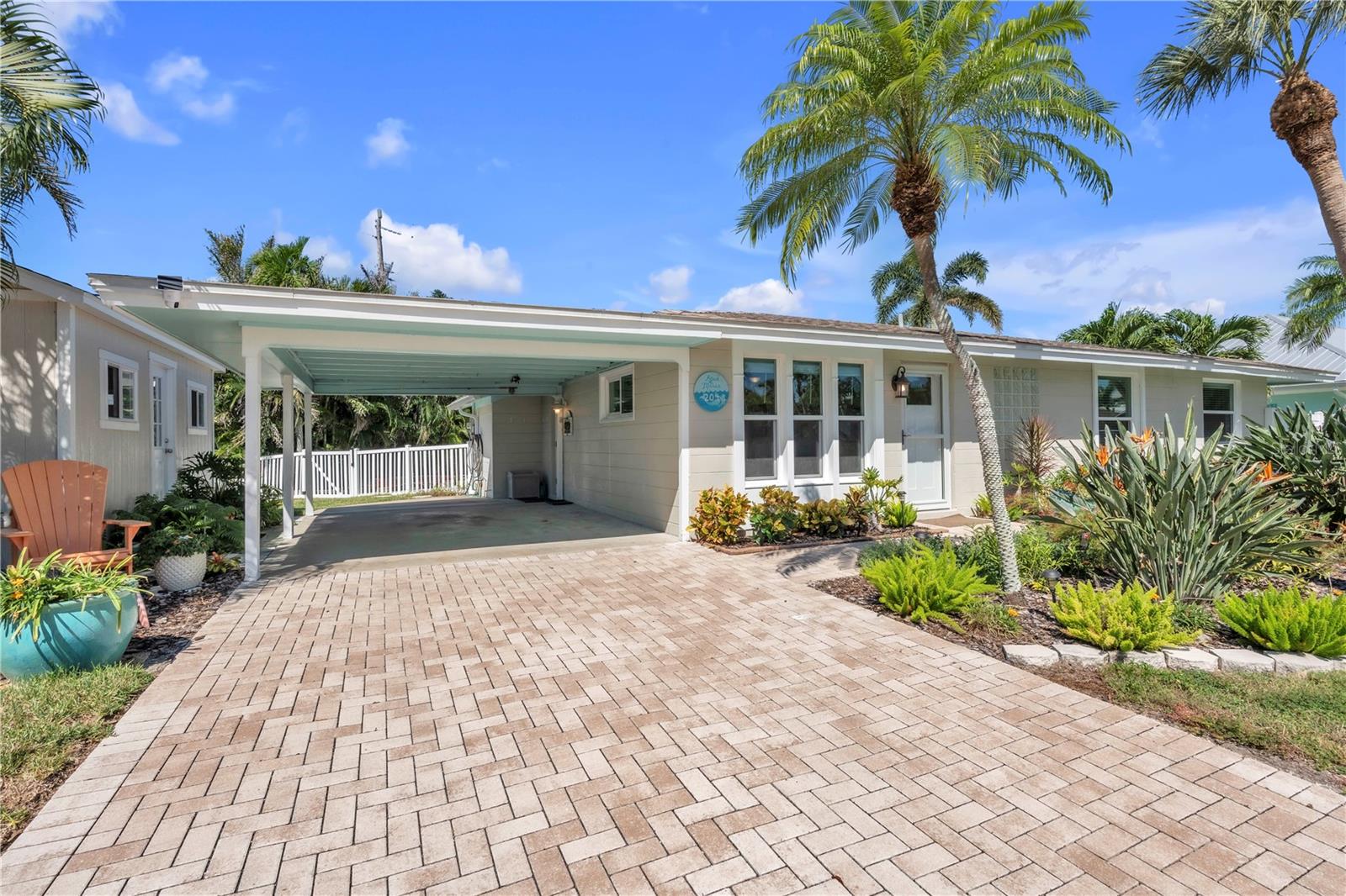 This beautifully updated 3BD/2BA coastal home located on a large 10,709 lot captures the essence of laid back island living with a bright, open interior and a backyard designed for total relaxation. Inside, warm wood-style flooring runs throughout, setting a comfortable tone that pairs perfectly with the home’s coastal palette. The kitchen is crisp and inviting, featuring sleek quartz countertops, stainless steel appliances, and a sea glass toned backsplash that adds a subtle pop of color. Just off the kitchen, the dining area flows into a spacious living room with sunroom style windows that fill the space with natural light and frame views of the lush, tropical landscaping. All bedrooms are generously sized, offering plenty of natural light and a sense of comfort. Sewer line has been scoped, updated electric, new Hvac and all new PEX plumbing. Step outside to discover your own private paradise. The heated pool and spa are surrounded by a spacious paver patio and swaying palms, offering the ideal backdrop for entertaining, unwinding, or soaking up the Florida sun. A detached shed with finished interiors adds flexibility to suit your lifestyle. There also is a boat slip with water, electric and a 10,000 lb lift available for separate purchase right up the street. Located just a short stroll or bike ride to the sugar white sands of the Gulf and the vibrant shops, restaurants, and beachy charm of Anna Maria Island, this home offers the perfect blend of comfort, convenience, and coastal character.
