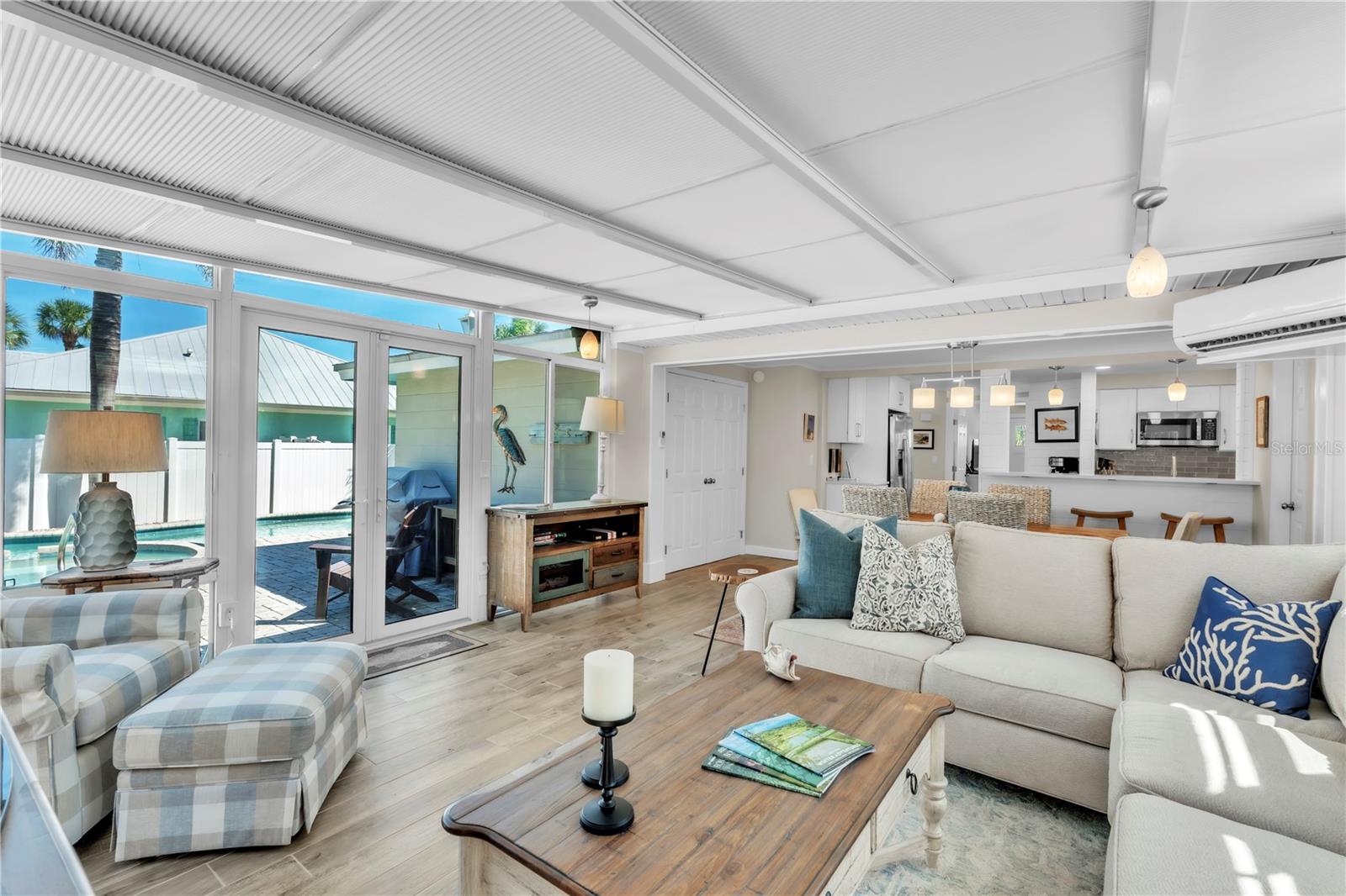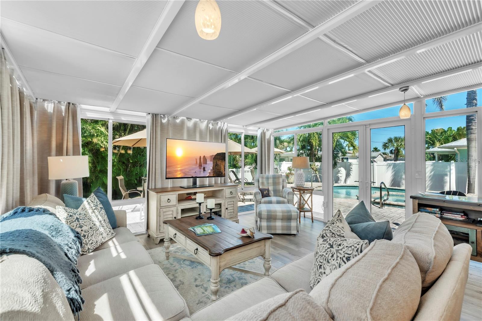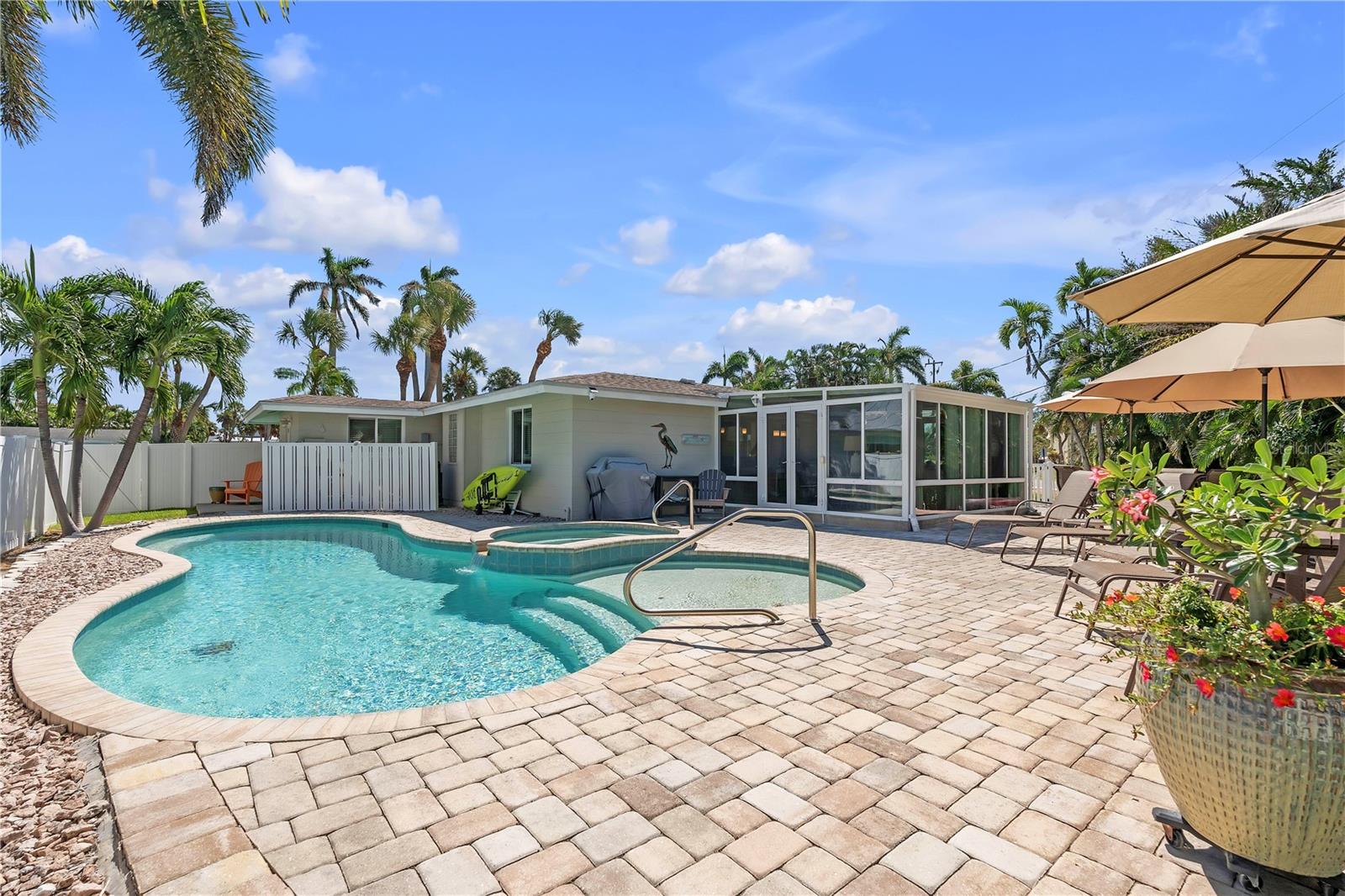 This beautifully updated 3BD/2BA coastal home located on a large 10,709 lot captures the essence of laid back island living with a bright, open interior and a backyard designed for total relaxation. Inside, warm wood-style flooring runs throughout, setting a comfortable tone that pairs perfectly with the home’s coastal palette. The kitchen is crisp and inviting, featuring sleek quartz countertops, stainless steel appliances, and a sea glass toned backsplash that adds a subtle pop of color. Just off the kitchen, the dining area flows into a spacious living room with sunroom style windows that fill the space with natural light and frame views of the lush, tropical landscaping. All bedrooms are generously sized, offering plenty of natural light and a sense of comfort. Sewer line has been scoped, updated electric, new Hvac and all new PEX plumbing. Step outside to discover your own private paradise. The heated pool and spa are surrounded by a spacious paver patio and swaying palms, offering the ideal backdrop for entertaining, unwinding, or soaking up the Florida sun. A detached shed with finished interiors adds flexibility to suit your lifestyle. There also is a boat slip with water, electric and a 10,000 lb lift available for separate purchase right up the street. Located just a short stroll or bike ride to the sugar white sands of the Gulf and the vibrant shops, restaurants, and beachy charm of Anna Maria Island, this home offers the perfect blend of comfort, convenience, and coastal character.