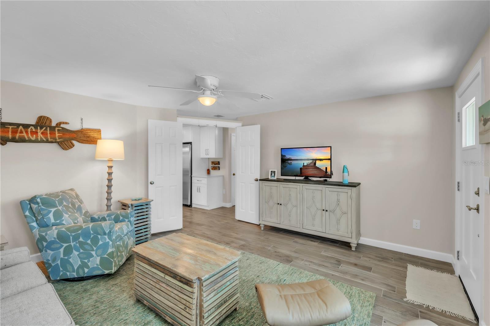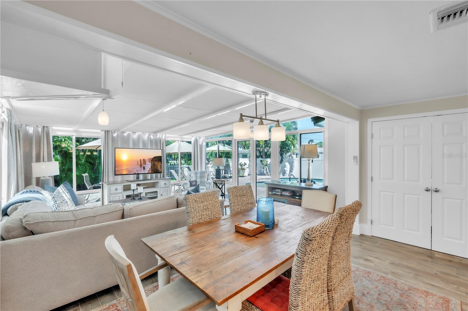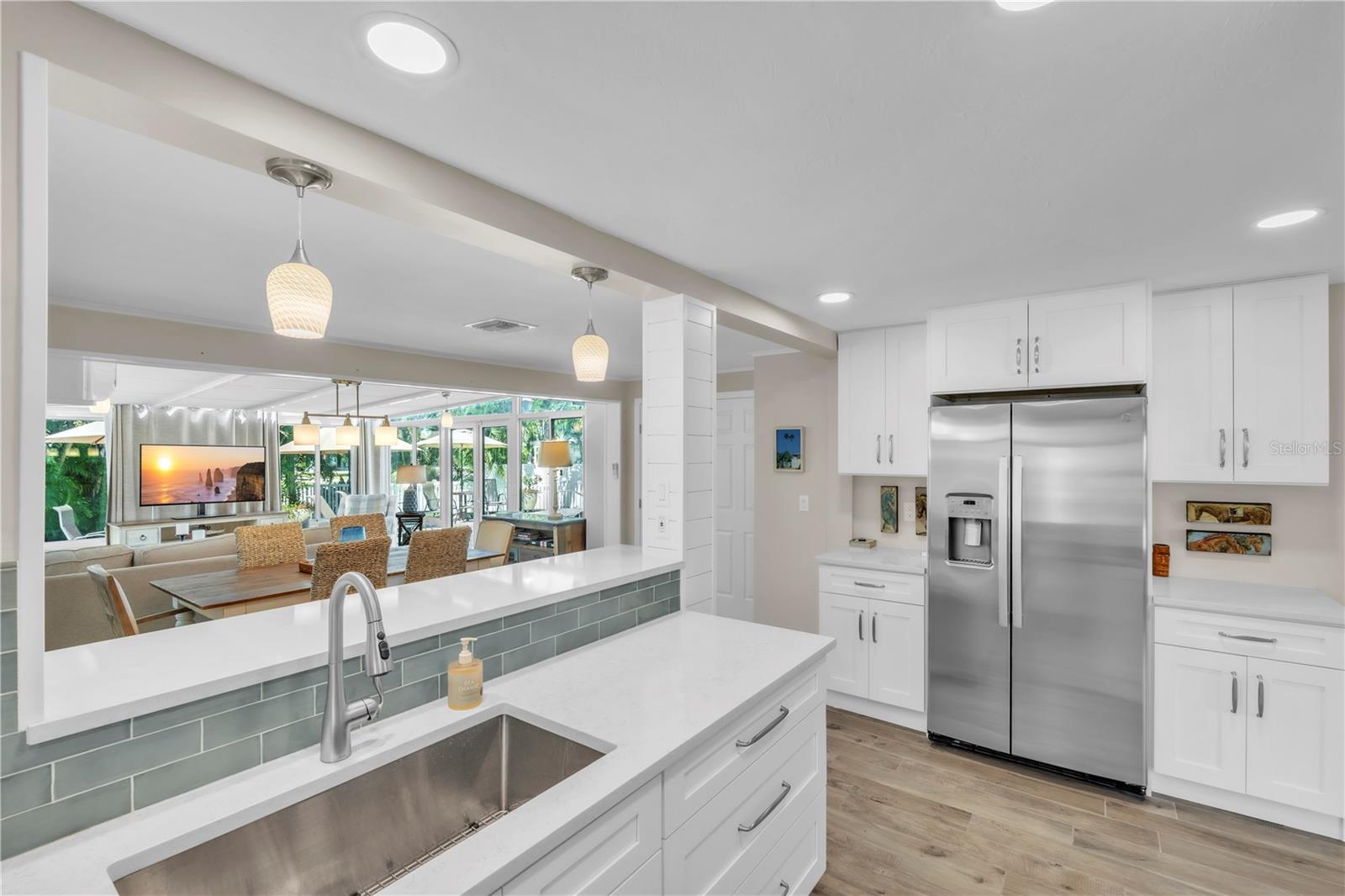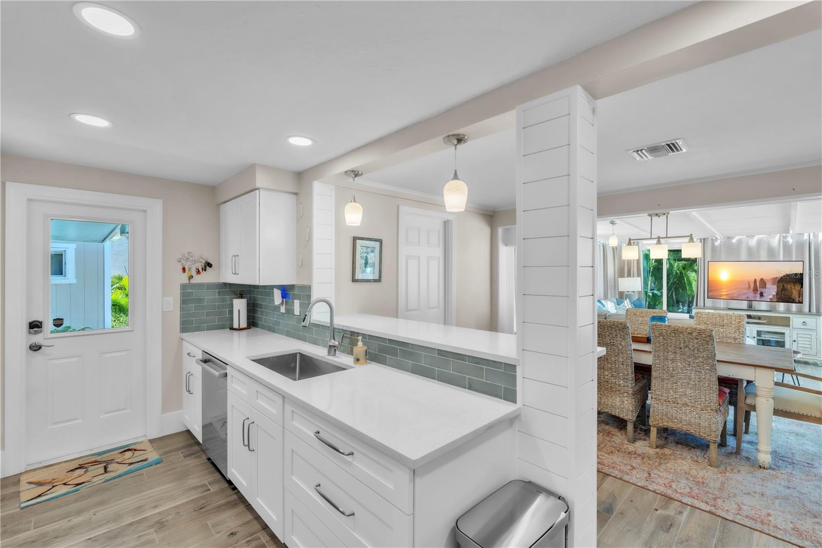 This beautifully updated 3BD/2BA coastal home located on a large 10,709 lot captures the essence of laid back island living with a bright, open interior and a backyard designed for total relaxation. Inside, warm wood-style flooring runs throughout, setting a comfortable tone that pairs perfectly with the home’s coastal palette. The kitchen is crisp and inviting, featuring sleek quartz countertops, stainless steel appliances, and a sea glass toned backsplash that adds a subtle pop of color. Just off the kitchen, the dining area flows into a spacious living room with sunroom style windows that fill the space with natural light and frame views of the lush, tropical landscaping. All bedrooms are generously sized, offering plenty of natural light and a sense of comfort. Sewer line has been scoped, updated electric, new Hvac and all new PEX plumbing. Step outside to discover your own private paradise. The heated pool and spa are surrounded by a spacious paver patio and swaying palms, offering the ideal backdrop for entertaining, unwinding, or soaking up the Florida sun. A detached shed with finished interiors adds flexibility to suit your lifestyle. There also is a boat slip with water, electric and a 10,000 lb lift available for separate purchase right up the street. Located just a short stroll or bike ride to the sugar white sands of the Gulf and the vibrant shops, restaurants, and beachy charm of Anna Maria Island, this home offers the perfect blend of comfort, convenience, and coastal character.