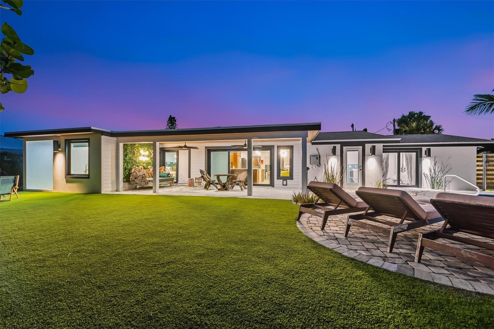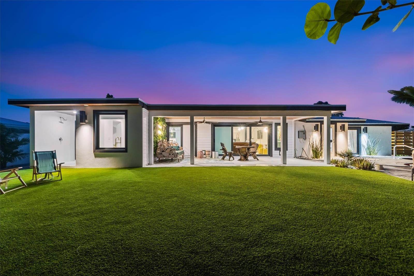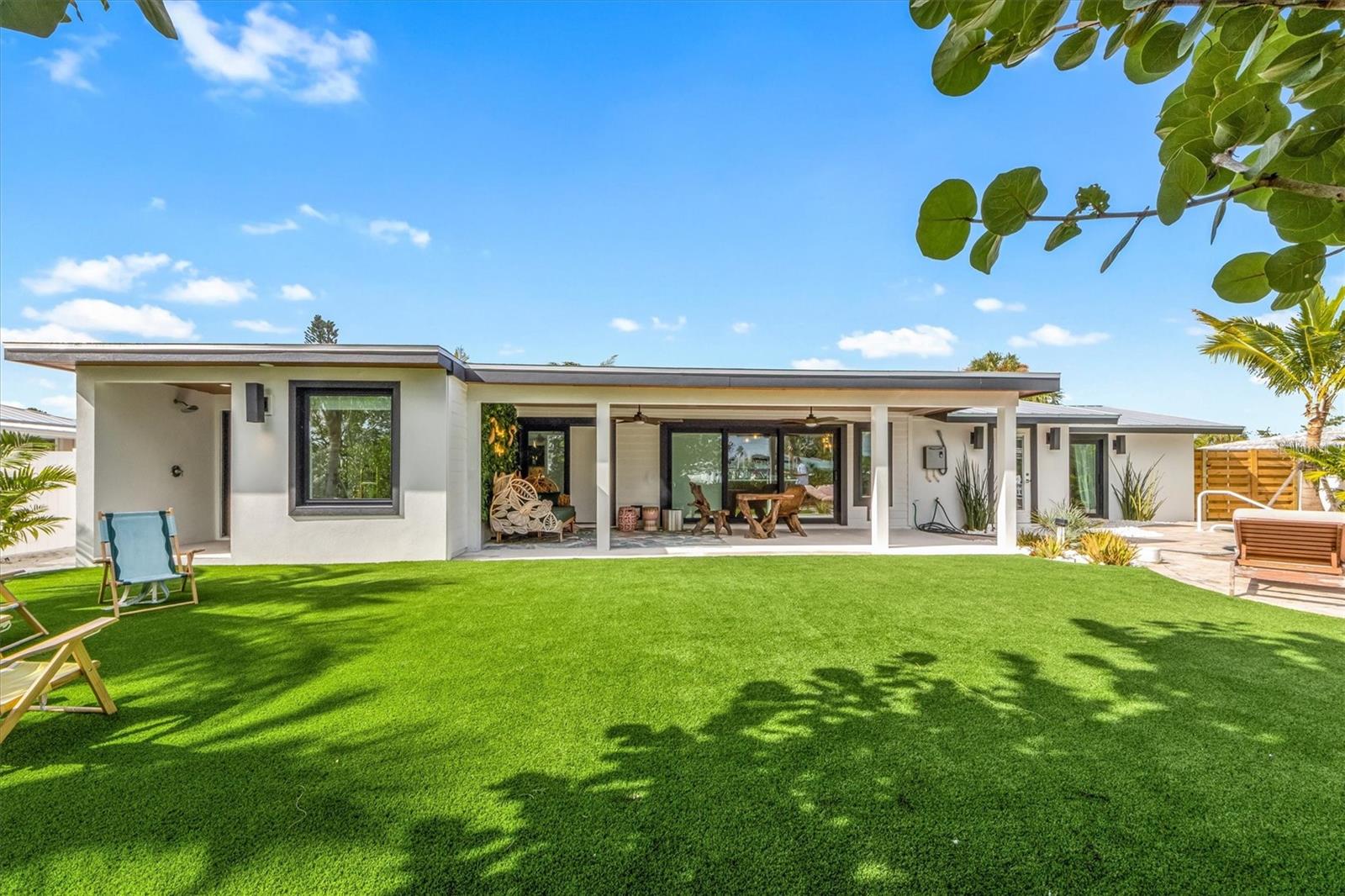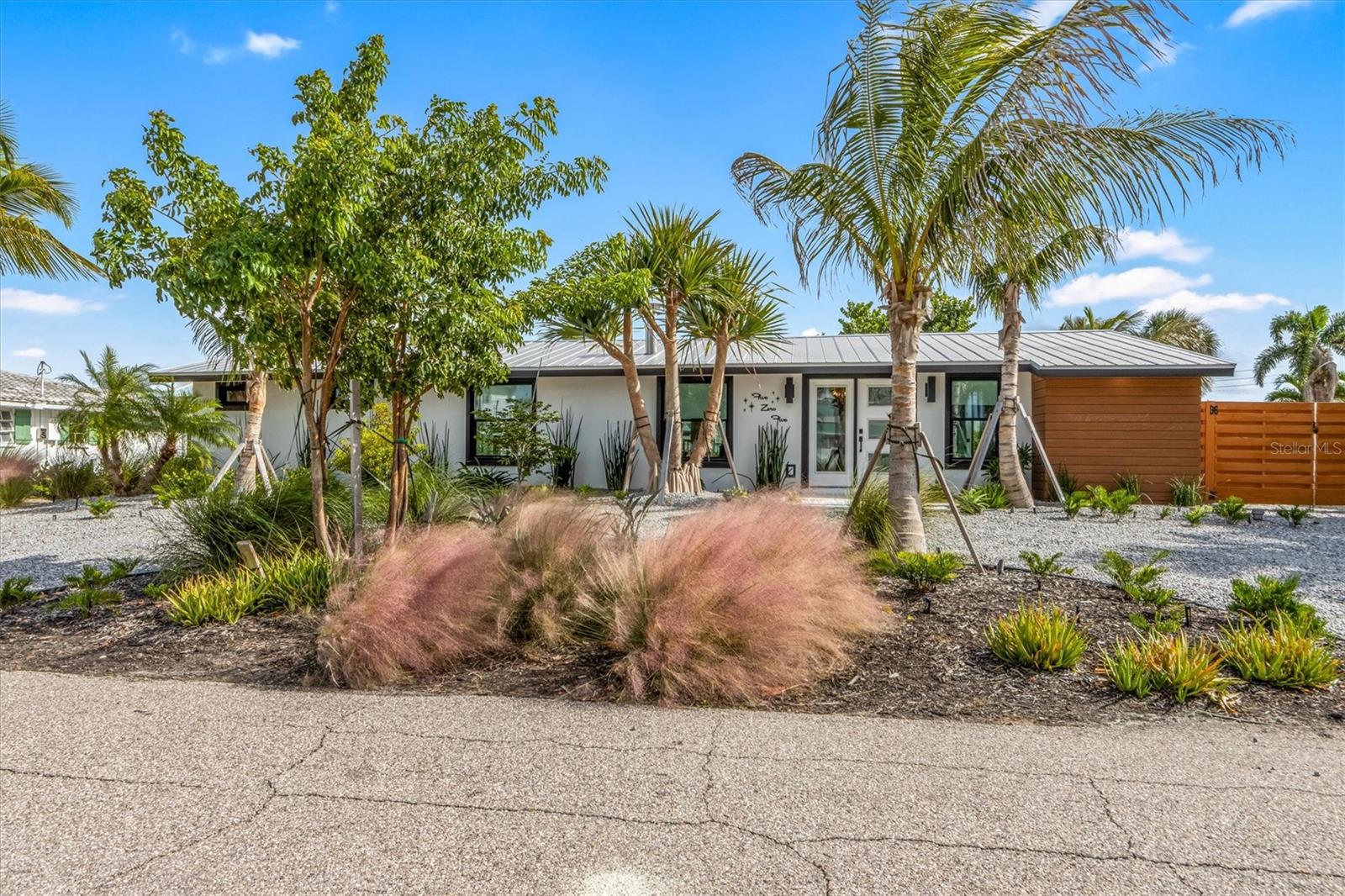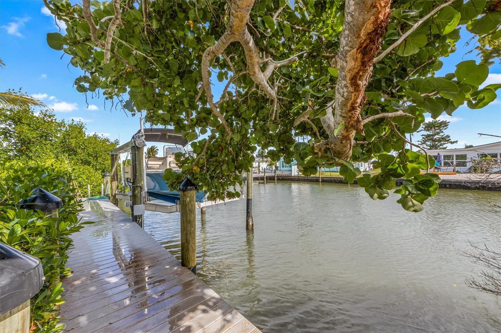 Chic Art Deco Canalfront Retreat! Escape to paradise in this stunning 3 bedroom, 3 bathroom home perfectly blending vibrant Art Deco Palm Springs style with tropical serenity, this residence offers an unforgettable island experience. Step into a world of bold colors, terrazzo tiles, sleek lines, and retro glamour and a brand new remodel built by Moss. The open-concept living space flows seamlessly, filled with natural light, vibrant energy, and showcases a floating fireplace designed for both wood or decorative candles, serves as a striking focal point. The gourmet kitchen boasts modern appliances, Eurotech cabinetry, stylish finishes and a pot filler. Perfect for crafting meals to enjoy by the sparkling, private, heated pool. The primary bedroom suite is a true sanctuary, featuring a wet bar with a refrigerator, ample storage, and an elegant lighted alabaster countertop. Enjoy the luxury of a walk-in closet and a fabulous en-suite bath with a soaking tub, double vanities, and a large walk-in shower with direct access to the open-air outdoor shower and pool area. On the opposite side of the home, a spacious second bedroom offers an en-suite bath and sliders leading out to the outdoors. The third bedroom, located just across the hall from a convenient pool bath, includes a washer/dryer and an exterior door, perfect for guests enjoying the pool. Newly constructed with everything from under-house plumbing to the new electric service, insulation, walls, and floors, this home has been designed for the ultimate comfort and convenience. Outside, enjoy tropical landscaping by Lancaster Design, featuring pavers and turf, along with a sandy area. The brand-new Trex deck, with water and electricity, is perfect for relaxing by the canal, and the 10,000 lb. boat lift provides easy access to the water for boating adventures. This home is being sold turnkey furnished, with a custom golf cart and a 2022 Carolina Skiff included!! The canalfront location offers direct water access for kayaking, paddleboarding, or simply enjoying the serene views. Located just minutes from the Gulf beaches, local dining, and vibrant island attractions, this home is a perfect blend of style, comfort, and coastal living!