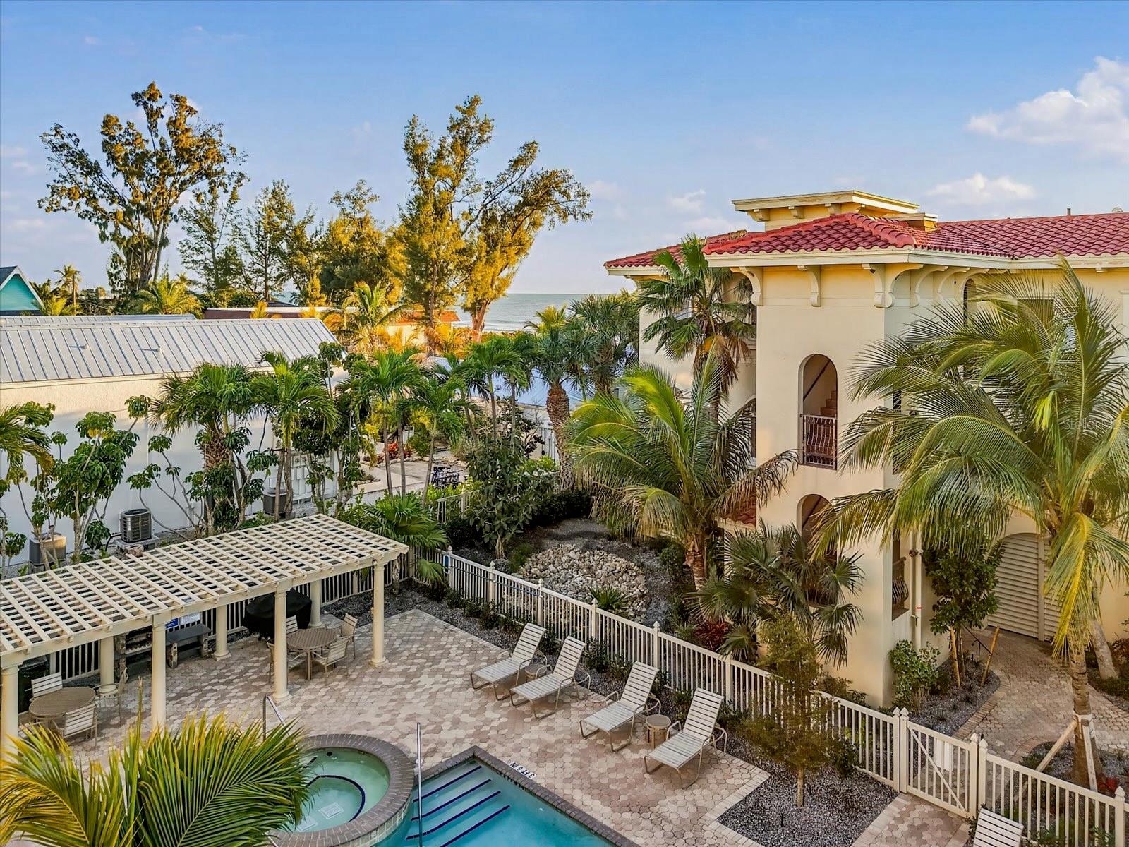 Step into effortless coastal luxury in this exquisite Gulf-front condominium, where soaring ceilings, an open floor plan, and refined finishes set the tone the moment you arrive. Sliders frame stunning partial Gulf views straight ahead, filling the living space with natural light and sea-kissed serenity. Designed for both comfort and entertaining, the living room features premium surround sound, a cozy fireplace, and an elegant wet bar—perfect for evenings with friends or quiet nights in after a day on the beach. This residence offers three beautifully appointed ensuite bedrooms, providing privacy and comfort for family and guests alike. Offered fully turnkey, the condo is dressed in sophisticated coastal furnishings and finishes that complement the relaxed elegance of island living. Additional conveniences include an in-unit laundry room, private elevator access, a two-car garage, and a large dedicated storage unit. Life here unfolds at a slower, sunnier pace. Spend your days lounging by the community pool, grilling fresh seafood in the poolside gazebo, or taking long walks along the sugar-sand beach as dolphins and manatees play in the surf. Each evening, Anna Maria Island’s world-famous sunsets pour a golden glow into your rooms, a daily reminder that you’ve found your own slice of paradise. Centrally located to the island’s many beloved restaurants and boutique shops, this elevated residence is built with concrete and rebar construction, hurricane-rated windows, and new roofs—offering lasting quality and peace of mind. With a minimum weekly rental period, the property presents an exceptional opportunity to generate substantial investment income, enjoy as a family retreat, or seamlessly blend both. This is beachfront living at its finest—luxurious, carefree, and undeniably Anna Maria.