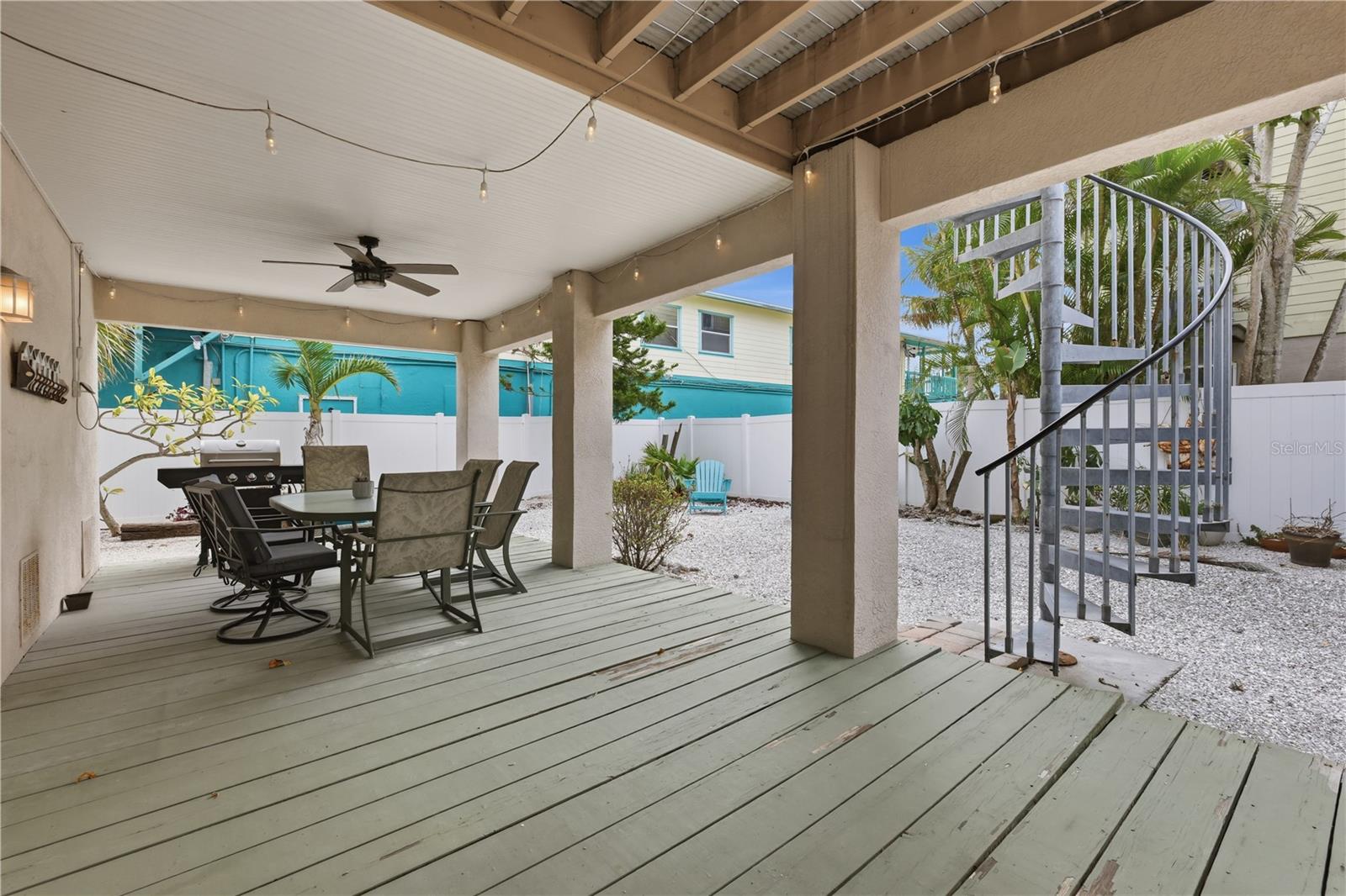 Just steps from the sugar white sands of the Gulf, this elevated coastal retreat captures the essence of relaxed beachside living with the comfort of thoughtful design. Bright, airy interiors welcome you with an open concept layout where the living area flows seamlessly into a charming kitchen featuring stainless steel appliances, beadboard cabinetry, and soft coastal hues that mirror the shoreline just beyond. The star of the home is the massive primary suite, perched privately on the top level with soaring ceilings, generous space for lounging or a reading nook, and an ensuite bath with a soaking tub and a walk-in shower. A second bedroom and a flexible den or office add versatility to the layout, easily adapting to your lifestyle needs. Step outside to a breezy balcony nestled among swaying palms, perfect for morning coffee or winding down after a day at the beach. Two separate private patios extend your outdoor living options, while generous parking and a three-story elevation maximize functionality and comfort. A private backyard offers even more space to relax or entertain in a tranquil setting. Recent updates include a brand new HVAC system and a roof replacement in 2021, adding long-term value and peace of mind. Low maintenance tropical landscaping sets the tone for effortless island living, and the oversized garage offers ample room for all your beach gear. Just steps away, you'll find local dining, charming shops, and a convenient trolley stop right at the house, making it easy to explore everything the island has to offer. Located in a weekly rental zone, this home presents excellent income potential alongside its inviting coastal charm. Whether you're seeking a full time residence, winter escape, or a dreamy vacation rental, this home delivers endless potential in an unbeatable location. *Pool is a rendering and only used for visualization purposes.