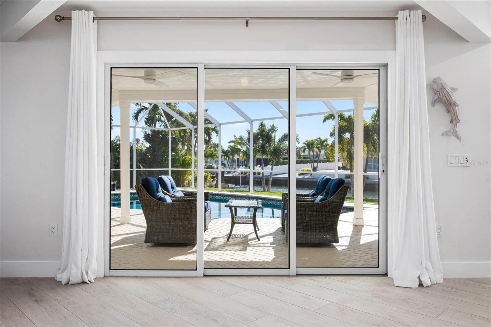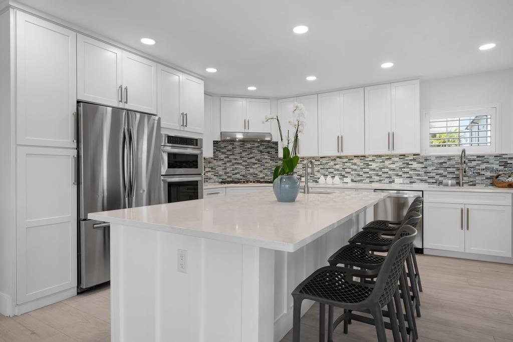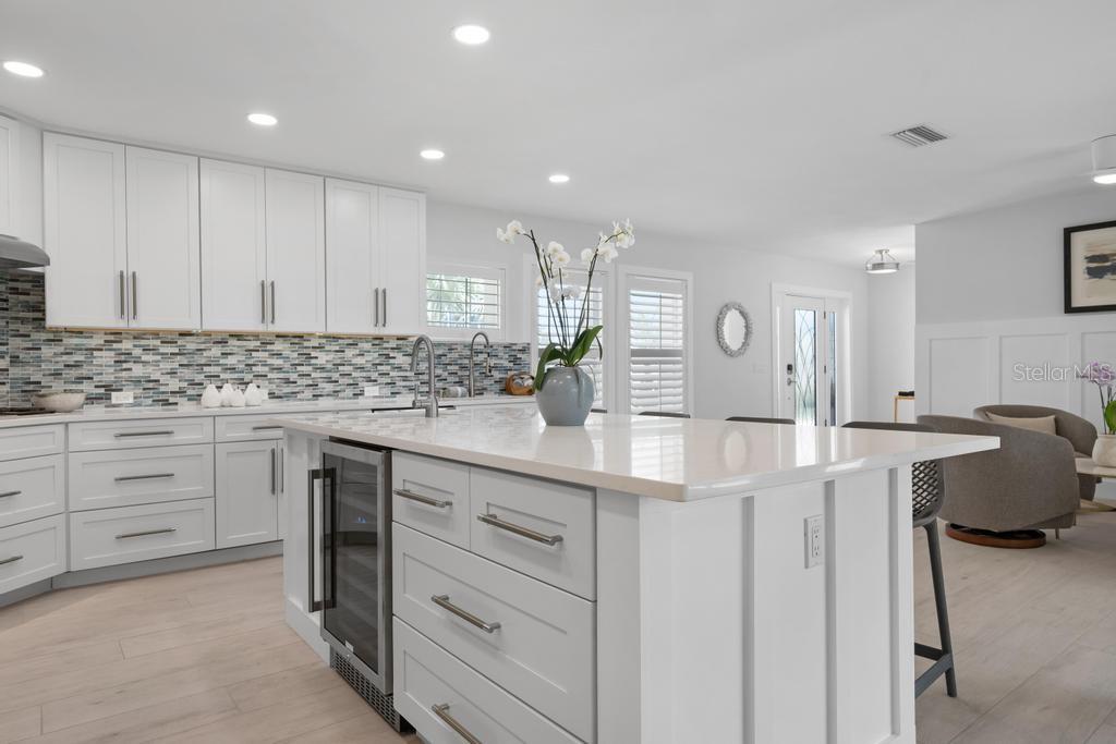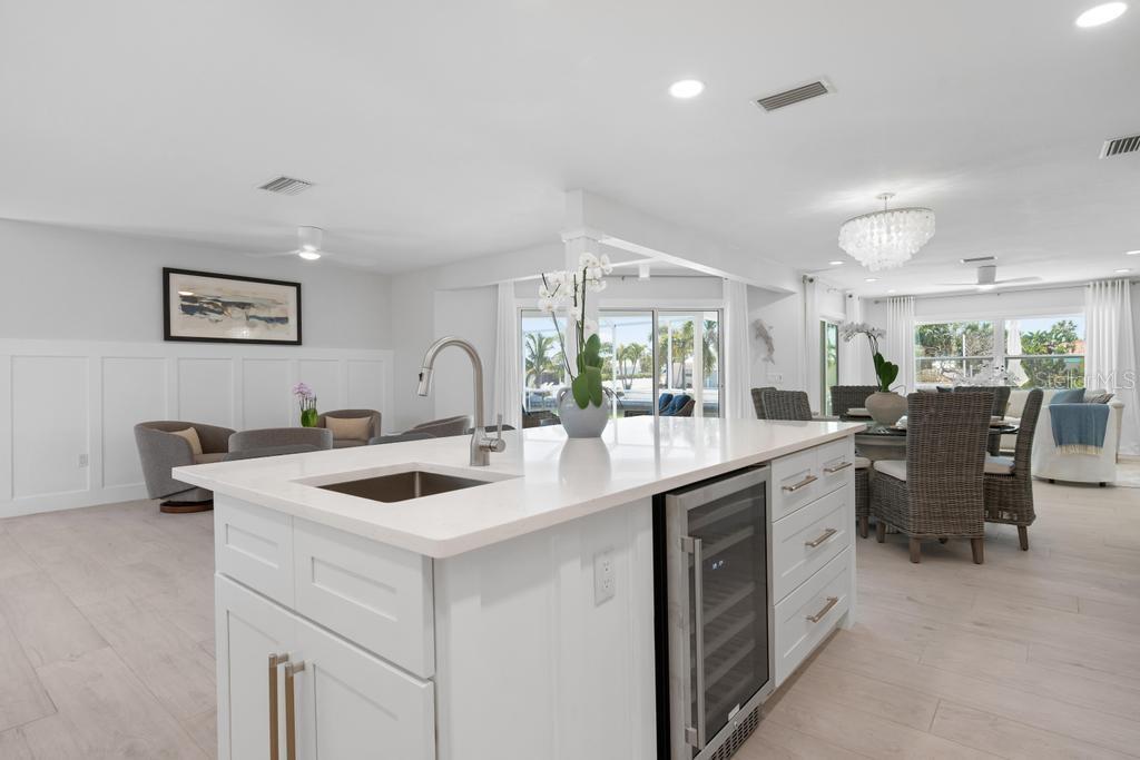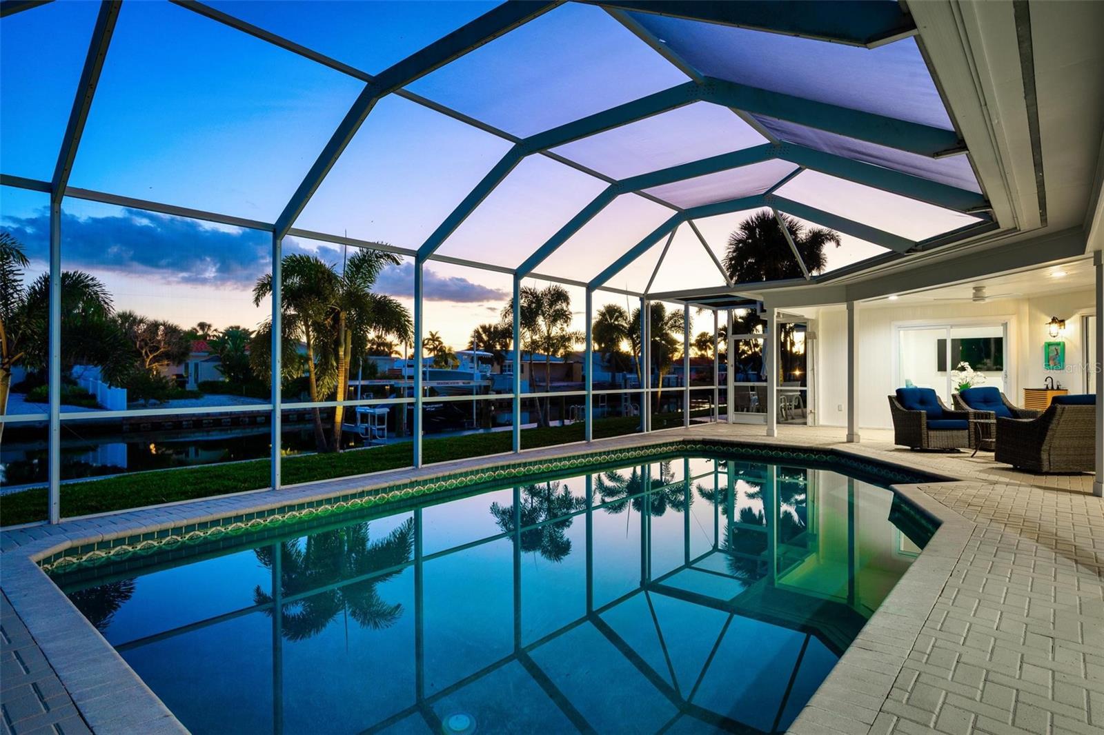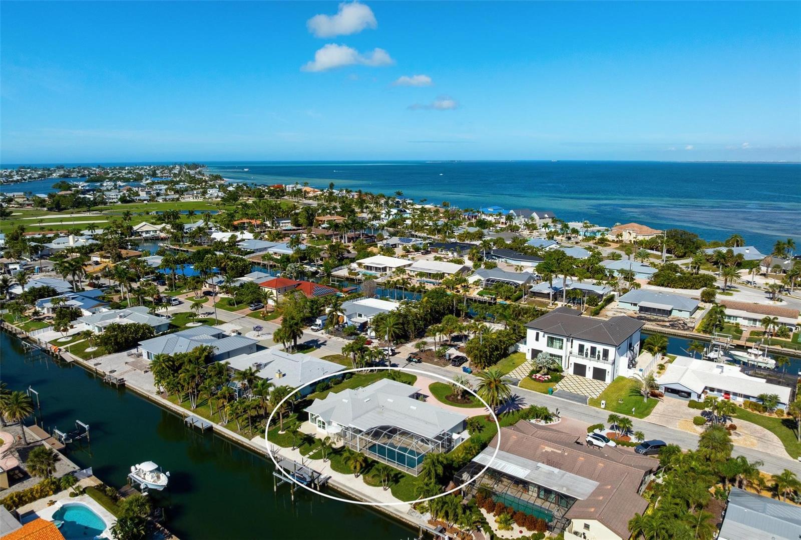 Step into effortless luxury with this meticulously renovated canal-front retreat, ideally located on 100 feet of waterfront, on an 11,543 sq ft lot in the heart of the Key Royale community. Designed for relaxed coastal living, this beautifully updated 3-bedroom, 3.5-bath home offers the perfect blend of style, comfort, and waterfront lifestyle. The home has a chef-inspired kitchen featuring wood cabinetry, quartz countertops, a gas range, wall oven, wet bar with wine refrigerator, and a generous center island perfectly suited for both everyday living and elegant entertaining. Walls of sliding glass doors bathe the interior in natural light and open to a private outdoor oasis, creating a seamless indoor-outdoor flow. Two of the bedrooms have private ensuite baths, including the primary bedroom which features a spacious bedroom with an en-suite bath with a soaking tub, a walk-in shower and an outdoor shower providing comfort and privacy. Outside, enjoy the resort-style pool designed for lounging in both sun and shade, or take in peaceful canal views framed by lush tropical landscaping. A new irrigation system and new elegant landscape lighting have also been installed. A true boater’s dream, the property features a private dock with electric and water, plus a 10,000 lb boat lift and kayak launch, offering quick access to the sparkling waters of Bimini Bay, Tampa Bay and beyond. Additional updates include a roof installed in 2017 for added peace of mind. Just a short stroll or bike ride from Anna Maria Island’s sugary beaches and moments from charming shops, dining, and island attractions; the location is as exceptional as the home itself. Residents of Key Royale have the option to join the private Key Royale Club, a 9-hole golf course with a clubhouse, creating a lifestyle that perfectly balances boating, golf, and island leisure. Bring your boat, fishing poles, golf cart, and clubs and start living the island lifestyle you’ve been dreaming of. This is a rare opportunity to own a truly special slice of waterfront paradise.