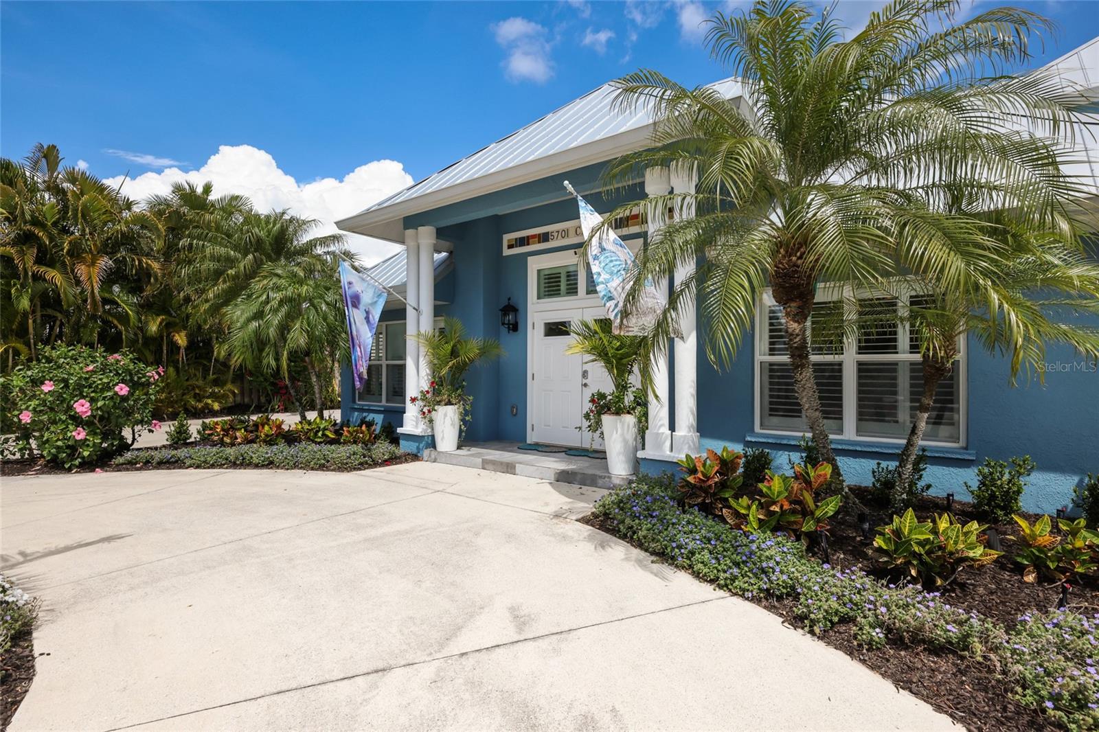 Tucked away in a quiet area of the island in a lush, tropical setting just moments from the beach, this beautiful 5BD/4BA residence captures the essence of coastal living with effortless style and thoughtful functionality, offering an exceptional opportunity in a desirable weekly rental zone. Framed by swaying palms and vibrant landscaping, the home welcomes you into a light-filled interior where a spacious living room with soaring ceilings, elegant plantation shutters, and a cozy gas fireplace creates an inviting space to gather and unwind. The open flow continues into a well appointed kitchen equipped with everything the family chef could want including a dining nook, but that family chef will love the scullery area with an additional stove and dishwasher for all the family gatherings. The scullery opens to the exterior where the outdoor grill and pizza oven are right at your finger tips. Two ensuite bedrooms, including a serene primary suite, offer comfort and privacy, while the remaining spacious bedrooms provide generous accommodations for the whole family. Step outside to a private pool area designed for soaking up the Florida sunshine and surrounded by ample space for lounging and entertaining. Practical features abound with natural gas service, a whole house generator, a durable metal roof, impact windows and more. There is also an exterior storage shed for all the beach toys, and abundant parking including two circular driveways on this corner lot. Located in the heart of Holmes Beach this location can’t be beat with a short walk to local shops, eateries and most importantly the sugar white sand and turquoise gulf waters.