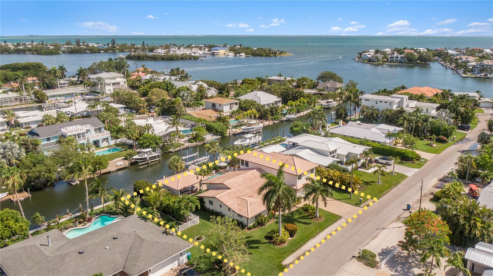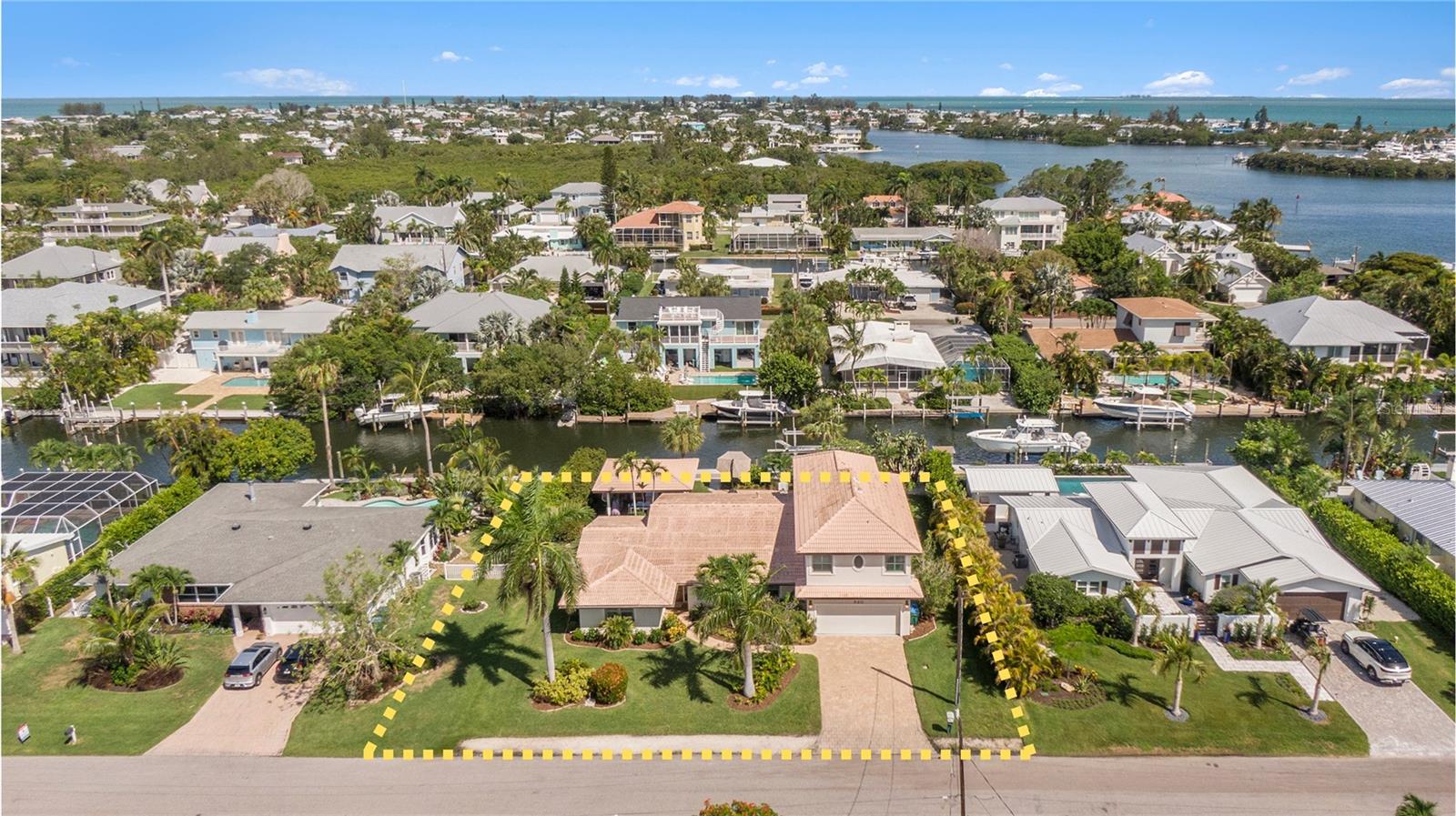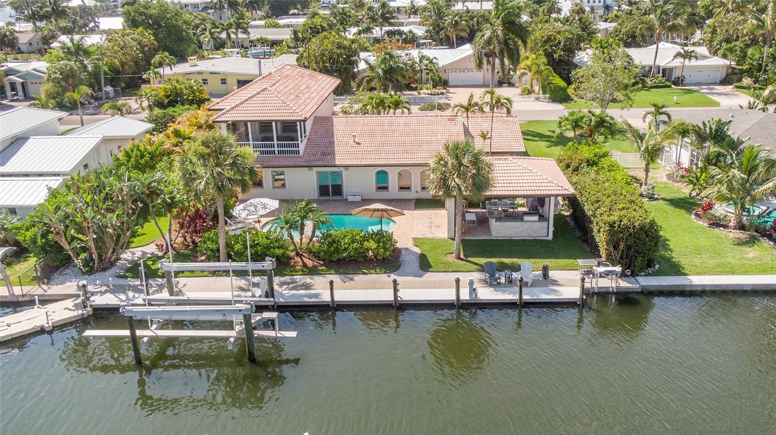 Discover EXQUISITE COASTAL LIVING in this stunning SPANISH-INSPIRED residence! Nestled in Holmes Beach on Anna Maria Island, this home offers over 3,232 square feet of heated living space with a 3-bedroom, 3.5-bathroom SPLIT FLOOR PLAN. Situated just five lots from BIMINI BAY this 1/3-ACRE WATERFRONT LOT sports 118-FEET OF CANAL & ROAD FRONTAGE and is 120-FEET DEEP, a rarity in Holmes Beach. This property is a BOATER’S HAVEN, featuring a NEW DOCK & SEAWALL, UPGRADED ELECTRICAL, a QUAD-MOTOR 32K-POUND BOAT LIFT (currently housing a 46' boat) and a FISH CLEANING STATION to enhance your boating and fishing adventures. Enjoy DIRECT WATER ACCESS to BIMINI BAY, TAMPA BAY, & BEYOND, making it a BOATER’S PARADISE and an ideal spot for FISHING, KAYAKING, and soaking in the NATURAL BEAUTY of the island. The home sustained damage from hurricanes in 2024 and is being sold as-is, offering a prime opportunity for renovation or a complete rebuild. NEW CONSTRUCTION plans are available for a 4,445 square foot, 6-bedroom/5.5-bath CUSTOM RESIDENCE, which includes a 3,554 square foot, 5-bed/4.5-bath PRIMARY HOME and an 891 square foot, 1-bed/1-bath LOFTED GUEST RETREAT. Whether you choose to restore or build anew, this exceptional location offers UNMATCHED POTENTIAL.The COVERED PAVILION, complete with a GRILLING STATION, PLUMBING FOR A WET BAR, & plenty of COVERED SPACE for dining and entertaining. The OPEN-AIR POOL with a PAVER DECK invites you to soak up the Florida sunshine while enjoying picturesque canal views. After a swim or a day on the water, rinse off in the DEDICATED OUTDOOR SHOWER. Inside, IMPACT WINDOWS with PLANTATION SHUTTERS provide both elegance and efficiency. The home also features an EXPANSIVE LAUNDRY ROOM with extra storage and a convenient half bath. The EXPANSIVE PRIMARY BEDROOM on the second floor boasts a PRIVATE SCREENED-IN BALCONY, perfect for breathtaking sunrise and sunset views over the canal and Bimini Bay. This luxurious suite includes ENGINEERED HARDWOOD FLOORS, a DEDICATED OFFICE, TWO SPACIOUS WALK-IN CLOSETS, DUAL VANITIES, a WALK-IN SHOWER, and a SOAKING TUB. Surrounded by PICTURESQUE ISLAND SCENERY, this home is the epitome of the ISLAND LIFESTYLE. Don’t miss out on this rare opportunity. Come see this exceptional WATERFRONT RETREAT and start living your ISLAND DREAM today! ***Current photos were taken prior to the hurricanes in 2024 and installation of new fence along the southwest property line***