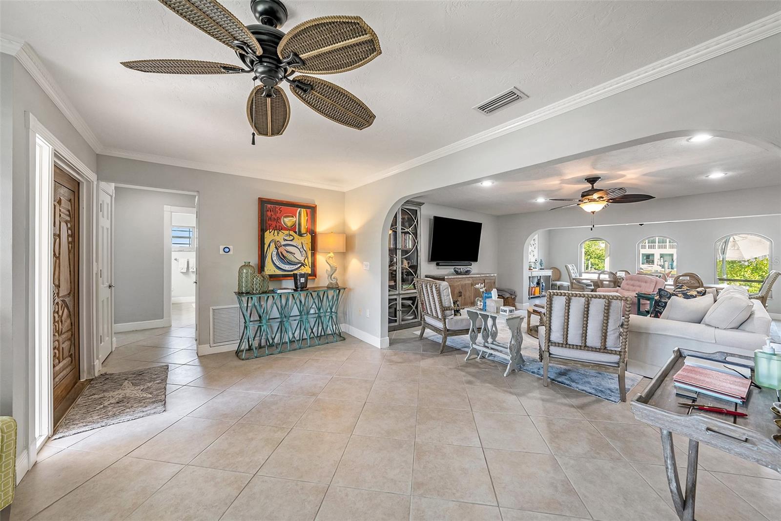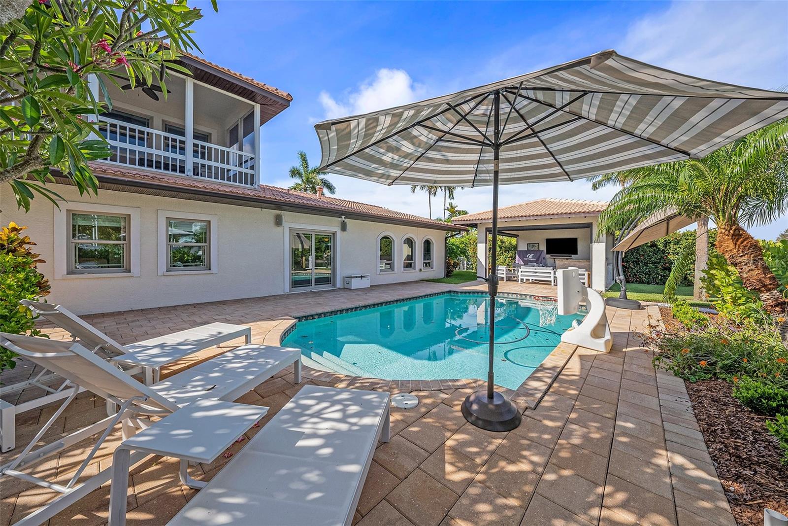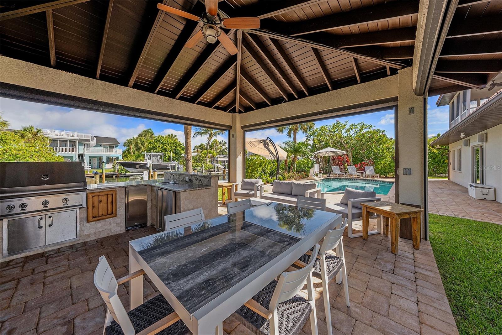 Discover EXQUISITE COASTAL LIVING in this stunning SPANISH-INSPIRED residence! Nestled in Holmes Beach on Anna Maria Island, this home offers over 3,232 square feet of heated living space with a 3-bedroom, 3.5-bathroom SPLIT FLOOR PLAN. Situated just five lots from BIMINI BAY this 1/3-ACRE WATERFRONT LOT sports 118-FEET OF CANAL & ROAD FRONTAGE and is 120-FEET DEEP, a rarity in Holmes Beach. This property is a BOATER’S HAVEN, featuring a NEW DOCK & SEAWALL, UPGRADED ELECTRICAL, a QUAD-MOTOR 32K-POUND BOAT LIFT (currently housing a 46' boat) and a FISH CLEANING STATION to enhance your boating and fishing adventures. Enjoy DIRECT WATER ACCESS to BIMINI BAY, TAMPA BAY, & BEYOND, making it a BOATER’S PARADISE and an ideal spot for FISHING, KAYAKING, and soaking in the NATURAL BEAUTY of the island. The home sustained damage from hurricanes in 2024 and is being sold as-is, offering a prime opportunity for renovation or a complete rebuild. NEW CONSTRUCTION plans are available for a 4,445 square foot, 6-bedroom/5.5-bath CUSTOM RESIDENCE, which includes a 3,554 square foot, 5-bed/4.5-bath PRIMARY HOME and an 891 square foot, 1-bed/1-bath LOFTED GUEST RETREAT. Whether you choose to restore or build anew, this exceptional location offers UNMATCHED POTENTIAL.The COVERED PAVILION, complete with a GRILLING STATION, PLUMBING FOR A WET BAR, & plenty of COVERED SPACE for dining and entertaining. The OPEN-AIR POOL with a PAVER DECK invites you to soak up the Florida sunshine while enjoying picturesque canal views. After a swim or a day on the water, rinse off in the DEDICATED OUTDOOR SHOWER. Inside, IMPACT WINDOWS with PLANTATION SHUTTERS provide both elegance and efficiency. The home also features an EXPANSIVE LAUNDRY ROOM with extra storage and a convenient half bath. The EXPANSIVE PRIMARY BEDROOM on the second floor boasts a PRIVATE SCREENED-IN BALCONY, perfect for breathtaking sunrise and sunset views over the canal and Bimini Bay. This luxurious suite includes ENGINEERED HARDWOOD FLOORS, a DEDICATED OFFICE, TWO SPACIOUS WALK-IN CLOSETS, DUAL VANITIES, a WALK-IN SHOWER, and a SOAKING TUB. Surrounded by PICTURESQUE ISLAND SCENERY, this home is the epitome of the ISLAND LIFESTYLE. Don’t miss out on this rare opportunity. Come see this exceptional WATERFRONT RETREAT and start living your ISLAND DREAM today! ***Current photos were taken prior to the hurricanes in 2024 and installation of new fence along the southwest property line***