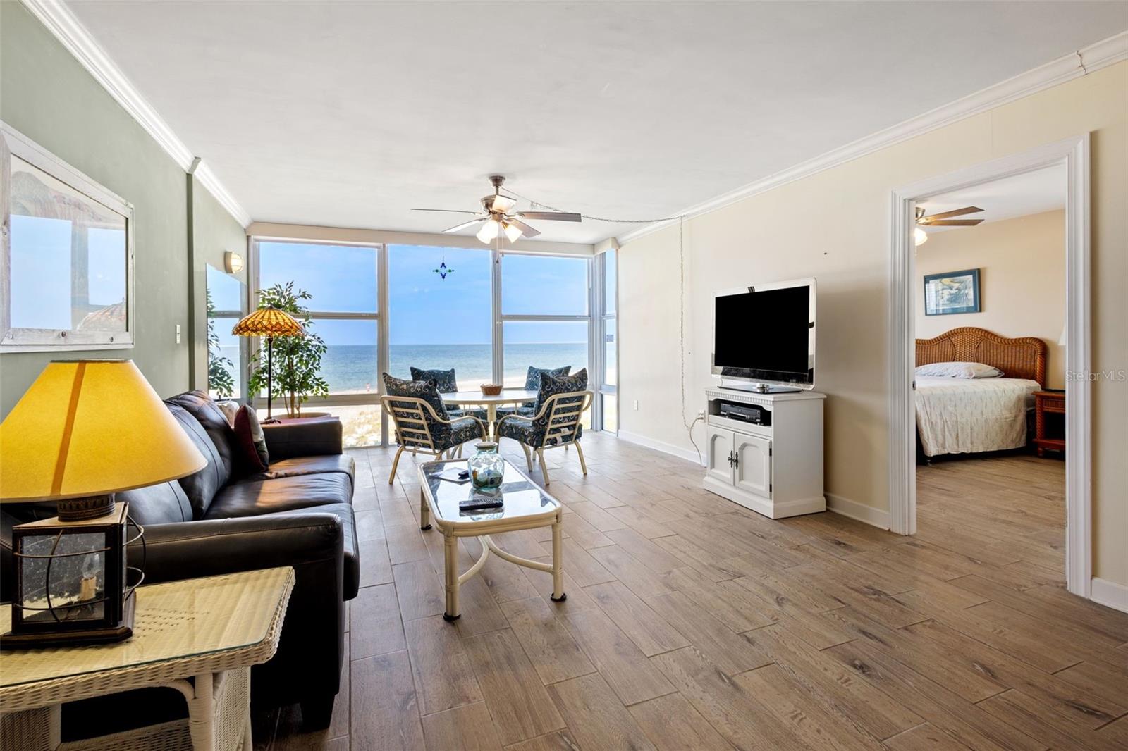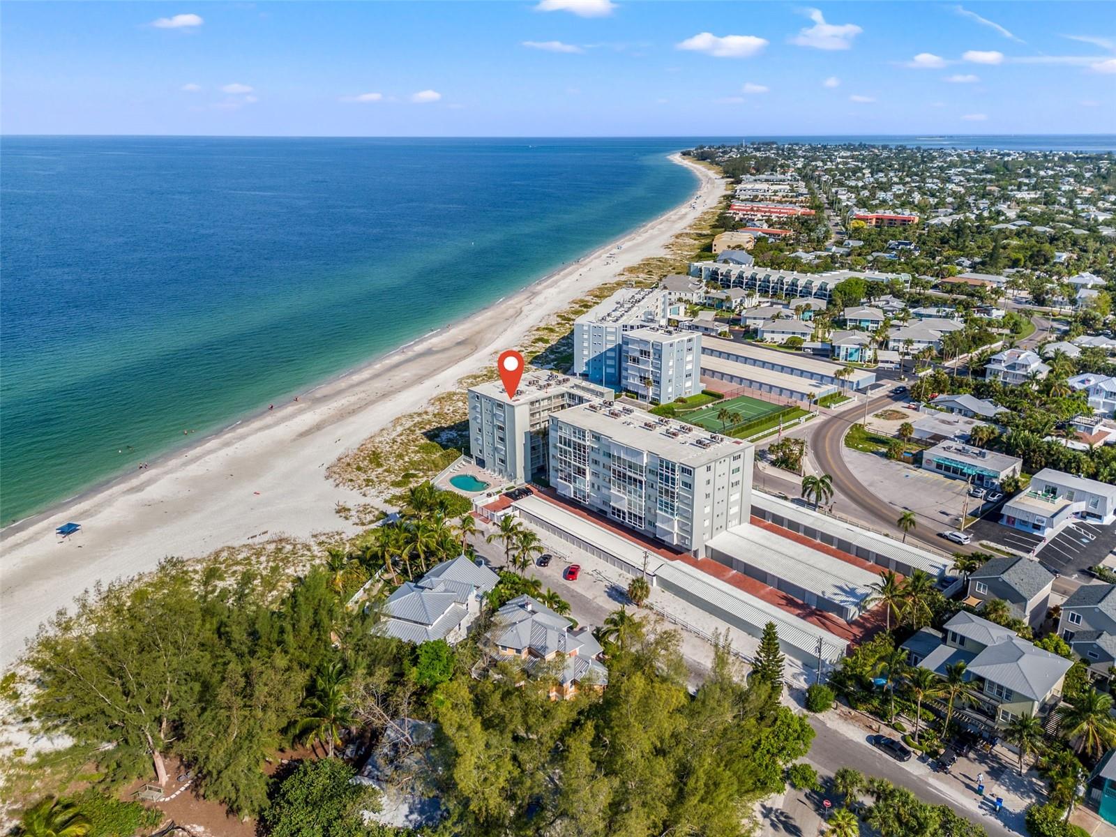 VERY RARE END UNIT in the highly desirable Martinique South building with SWEEPING PANORAMIC WATER VIEWS from this second floor unit! It has been 2 years since a condo has been available for sale in this amazing BEACHFRONT building. This 2 bedroom, 2 bathroom corner unit abounds with natural light that pours in through the floor to ceiling windows. Sunsets that will truly take your breath away. Some of the updates include hurricane impact rated windows, hurricane shutters, luxury tile planks throughout, crown molding, and stainless steel Frigidaire appliances. This condo also comes with a 1-CAR GARAGE and storage unit! The building amenities include a heated swimming pool, tennis courts, outdoor grills, community room, outdoor dining area, fitness room, on site building manager, and library! Holmes Beach in Anna Maria Island is quintessential Florida living with access to a seemingly private beach, walkability to amazing shops and restaurants, and so much more! Pets are not allowed but with an ESA and HOA approval, you may be able to bring your furry friends. Don’t delay and call today to be the envy of family, friends, and neighbors!