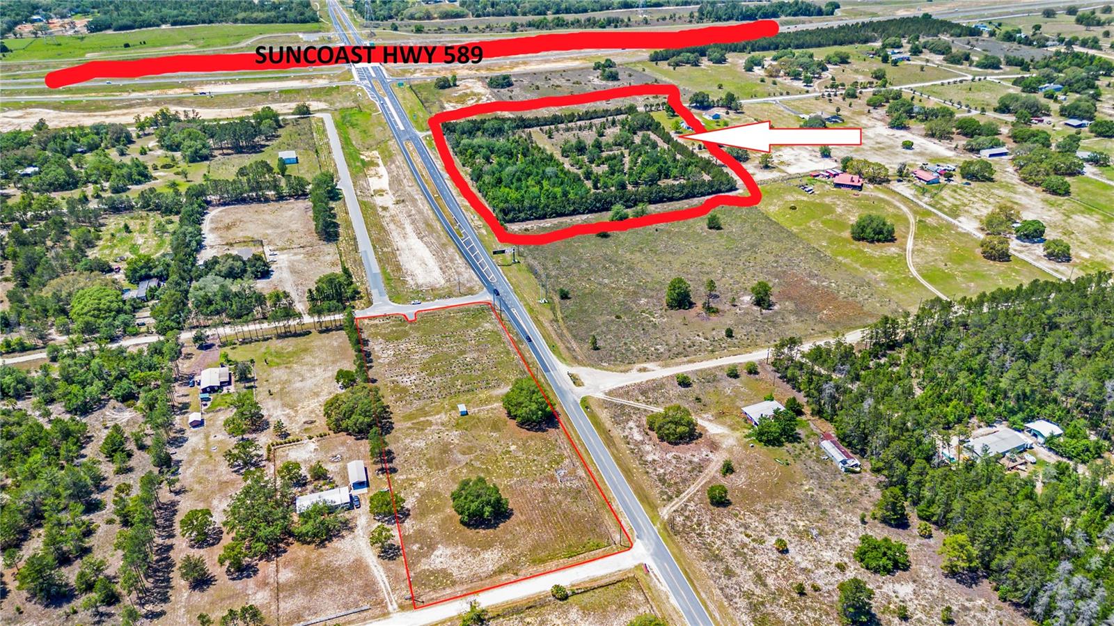 Take advantage of a one-of-a-kind investment opportunity in Citrus County. This is the first buildable lot on the northeast corner of Exit #60 from Highway 589 (Suncoast Parkway), offering 635+ feet of frontage along W Cardinal Street. Strategically situated within the Economic Development Target Area (EDTA) of the Cardinal Interchange Management Zone, this property is perfectly positioned to benefit from the area's rapid growth and development. The 8.57-acre parcel is high, dry featuring a well and complete—from W Cardinal Street and Georgian. With the Suncoast Parkway interchange at Cardinal Street currently under construction, this lot is poised to become a hub of activity in a region with unparalleled growth potential. Citrus County is on the brink of transformation with the Suncoast Parkway extension. This 55-mile expressway, connecting Tampa's Veterans Expressway to SR 44, is a catalyst for economic expansion. The EDTA designation prioritizes job creation and encourages land uses such as light industrial, manufacturing, restaurants, and transportation-related businesses. Future infrastructure upgrades, including water and sewer extensions, add even more value to this prime location. Whether you're looking to invest or develop, this property offers endless possibilities. Don’t miss your chance to secure this premier real estate before prices and values soar. Act now to take advantage of this rare opportunity at the gateway to Citrus County’s future! Additional property available for sale