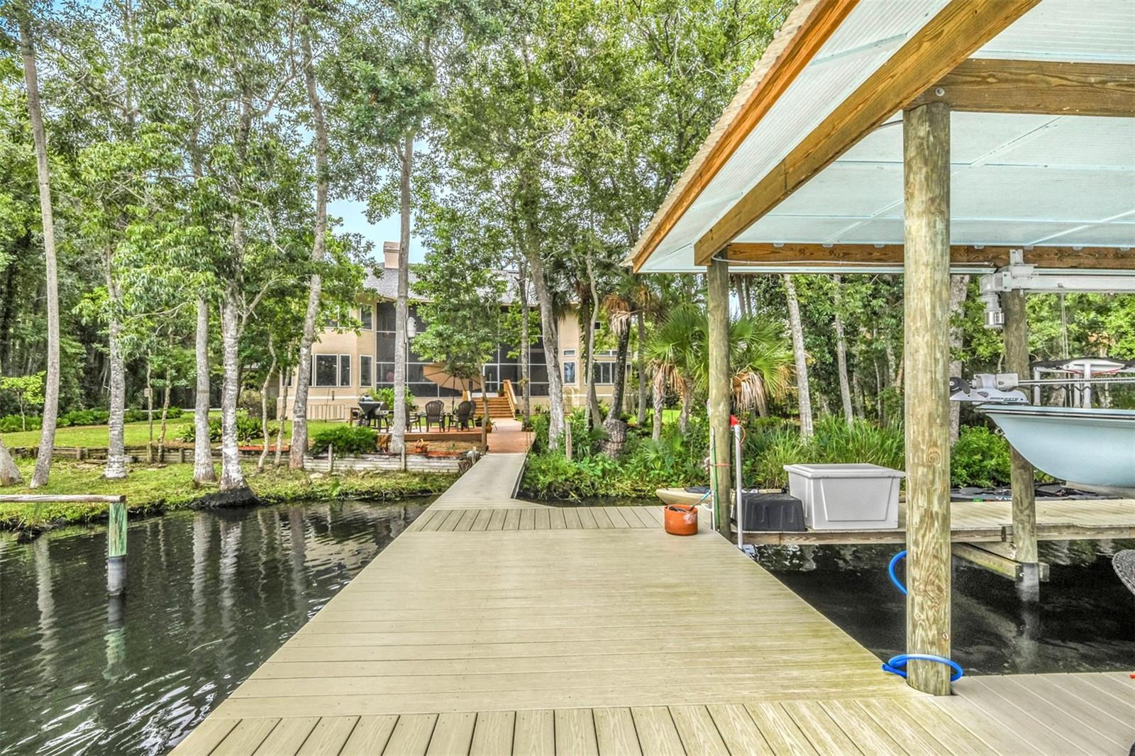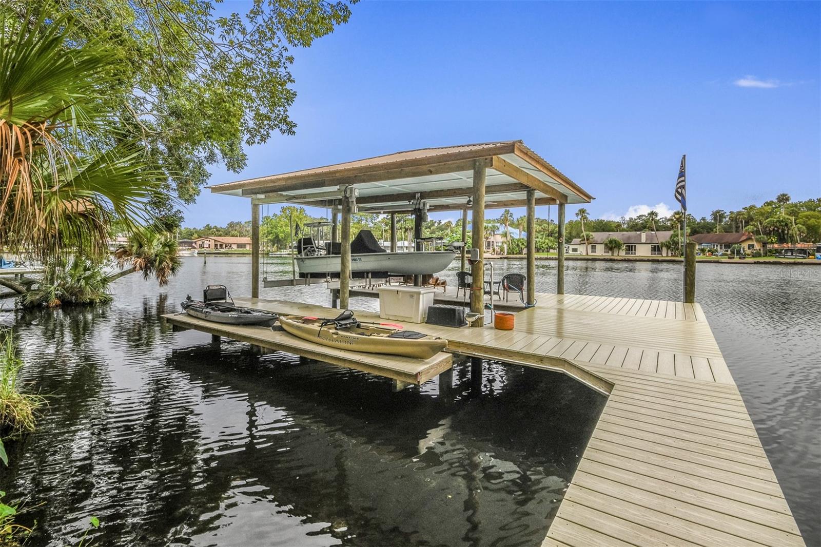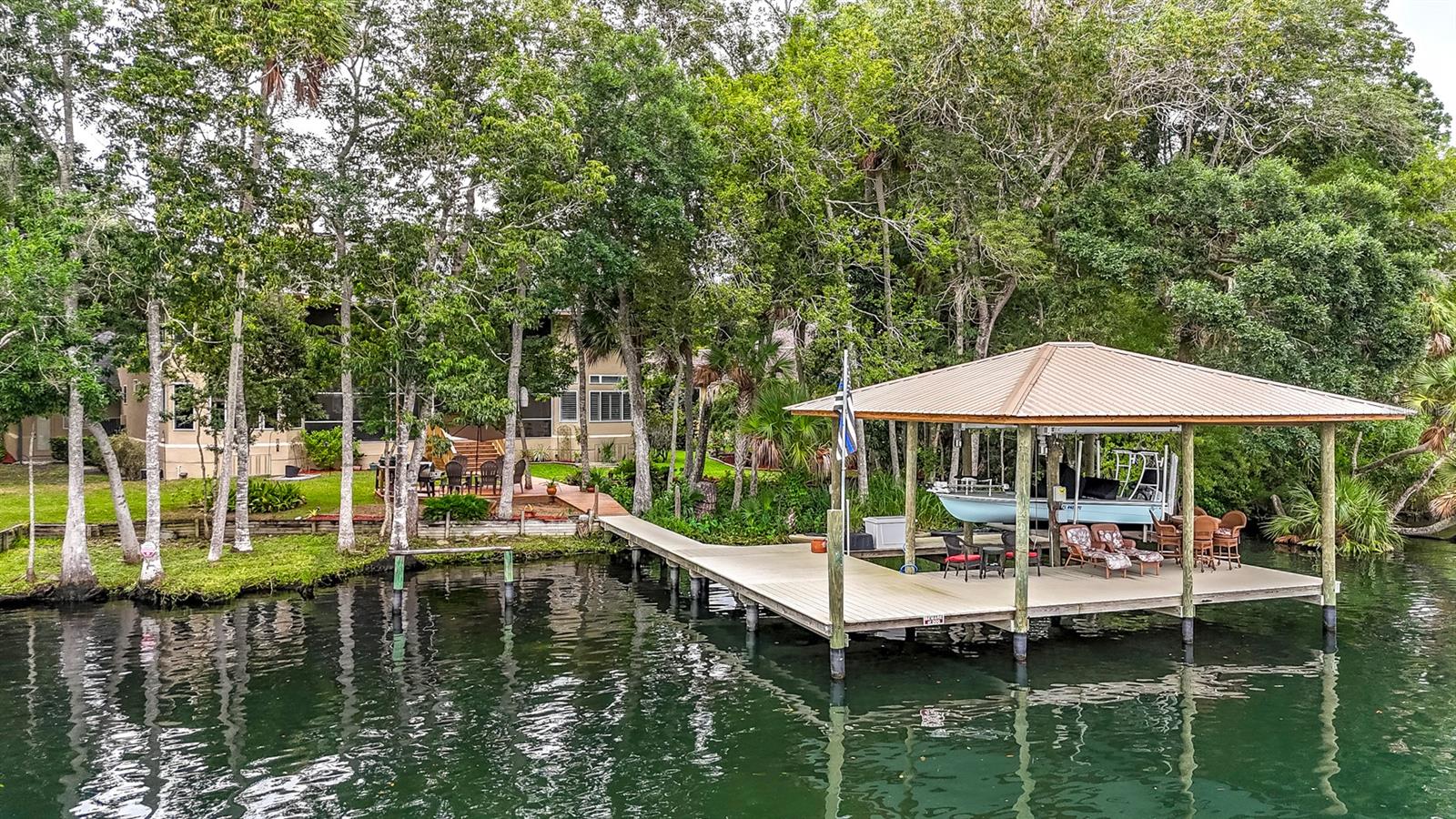 WATERFRONT LIVING AT ITS BEST with direct access to the Gulf of Mexico! Swim with the manatees right from your backyard, just a few yards away from the beautiful freshwater of Ellie Schiller Homosassa Springs State Park. Restaurants and entertainment are just a short boat ride from this EQUISITELY REMODELED, CUSTOM-BUILT two-story home, located in the secluded four-home, gated community of Blue River Cove East. The soaring ceiling of the living area, with its stone wall and live edge hearth over the gas fireplace, set off the GRAND VIEWS OF THE HOMOSASSA RIVER. The primary suite with an expansive ensuite bath and connected office/sitting room is conveniently situated on the main floor. Any aspiring chef would enjoy cooking for family and friends in the ENORMOUS, SPLENDIDLY UPGRADED KITCHEN, which includes new cabinets, granite countertops, new GE Monogram appliances with induction stovetop, double ovens, a beverage center and drawer microwave. This dream kitchen also features a generous walk-in pantry. The upstairs boasts TWO GUEST SUITES with ensuite baths, an additional cozy living area, and two large, air-conditioned bonus rooms that could be used as extra bedrooms, craft rooms, or additional storage space. To top it off, the NEW COVERED DOCK has water, electricity, a 10,000 lb boat lift, a kayak launch and ladder providing hours of entertainment as you watch the manatees and boats float by. Make this UNIQUE RETREAT your home today! (See Floorplan For Room Dimensions)