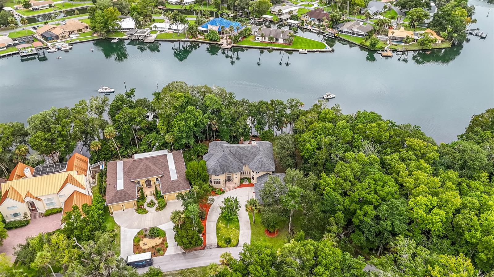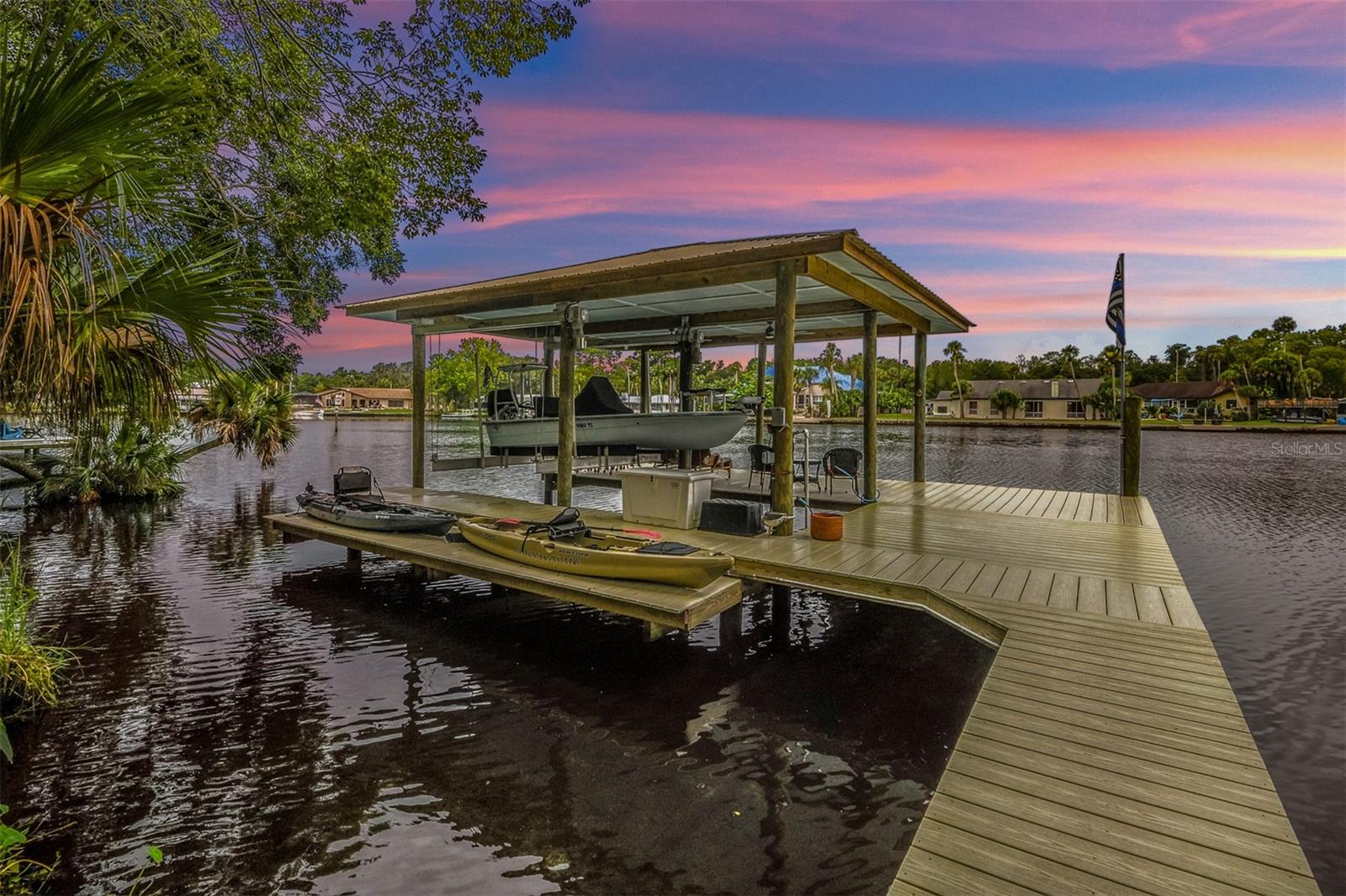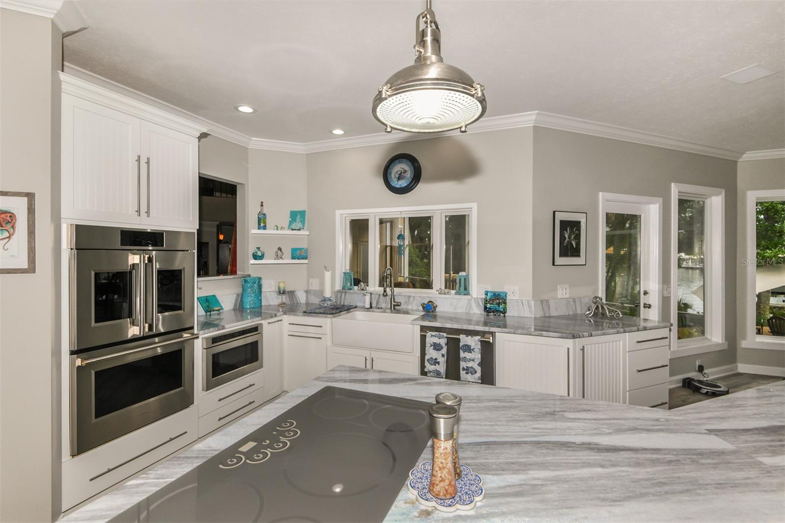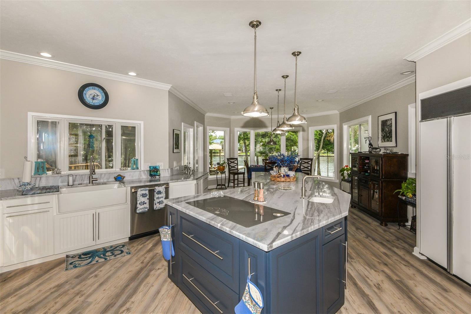 WATERFRONT LIVING AT ITS BEST with direct access to the Gulf of Mexico! Swim with the manatees right from your backyard, just a few yards away from the beautiful freshwater of Ellie Schiller Homosassa Springs State Park. Restaurants and entertainment are just a short boat ride from this EQUISITELY REMODELED, CUSTOM-BUILT two-story home, located in the secluded four-home, gated community of Blue River Cove East. The soaring ceiling of the living area, with its stone wall and live edge hearth over the gas fireplace, set off the GRAND VIEWS OF THE HOMOSASSA RIVER. The primary suite with an expansive ensuite bath and connected office/sitting room is conveniently situated on the main floor. Any aspiring chef would enjoy cooking for family and friends in the ENORMOUS, SPLENDIDLY UPGRADED KITCHEN, which includes new cabinets, granite countertops, new GE Monogram appliances with induction stovetop, double ovens, a beverage center and drawer microwave. This dream kitchen also features a generous walk-in pantry. The upstairs boasts TWO GUEST SUITES with ensuite baths, an additional cozy living area, and two large, air-conditioned bonus rooms that could be used as extra bedrooms, craft rooms, or additional storage space. To top it off, the NEW COVERED DOCK has water, electricity, a 10,000 lb boat lift, a kayak launch and ladder providing hours of entertainment as you watch the manatees and boats float by. Make this UNIQUE RETREAT your home today! (See Floorplan For Room Dimensions)