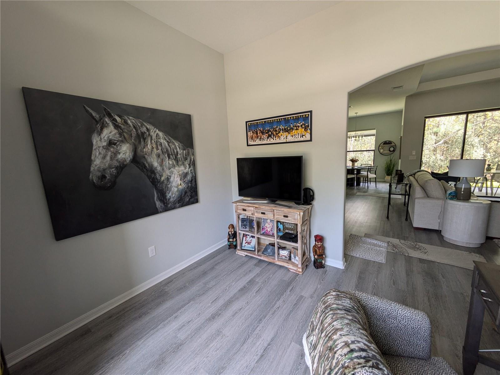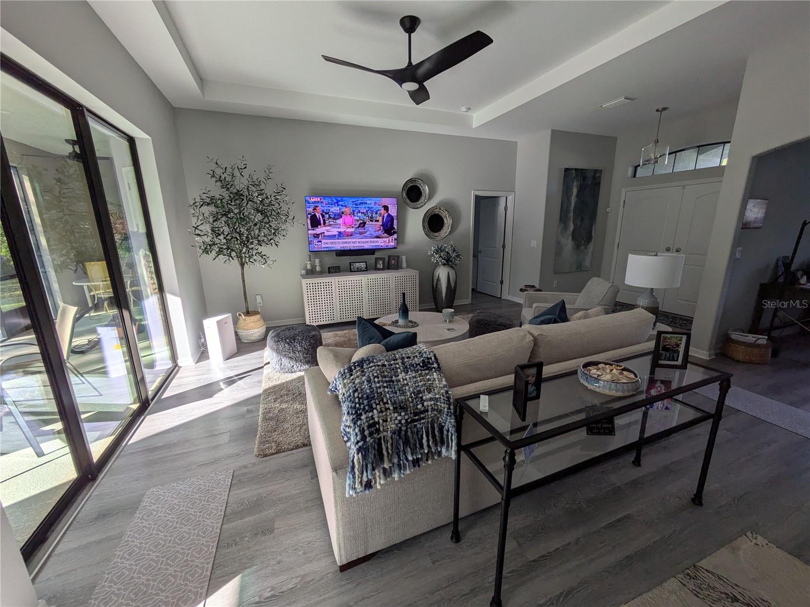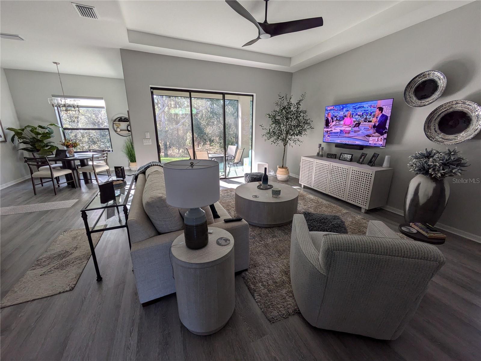 Stunning Sweetwater home on a quiet cul-de-sac with deep greenbelt on a 0.35acre lot. All the upgrades you would expect from this Top builder in Cyprus Village of Sugarmill Woods. Gorgeous LVP plank flooring throughout, upgraded tile surrounds both bathrooms shower/tub area. Nice size flex room, which is used as an office, kitchen has upgraded stainless steel appliances, glass top stove, microwave, dishwasher are included. Gorgeous soft close wood cupboards throughout with Quartz countertops and under mount stainless steel sink. Large master bedroom with access to the lanai, in suite bathroom with double sinks, garden tub and full shower, large walk-in closet with plenty of shelving. Second bedroom has a walk-in closet; the spare rooms are generous size with plenty of storage. The dining area has a large window and sliders to access the lanai and a 3-panel pocket slider off the great room provides plenty of natural light throughout the open floor plan. Full screened lanai with a beautiful view of the greenbelt. Private quiet and serene yard with nature passing through, deer, fox squirrels, woodpeckers and a variety of birds to say the least. SMW offers a mix of nature, golfing, a restaurant and community amenities. It includes the Oak Village sports complex which offers tennis, pickleball, a lap pool fitness room. The elevation is 82 ft. no flooding here. Homosassa is a spring fed treasure with manatees, paddlers and boaters. Fishing, scallops, kayaking and wildlife state park for the outdoor enthusiast. Close to Crystal River and Weeki Wachee where the mermaids reside. Excellent seafood restaurants, karaoke bar and grills along with local dining. This is a must see to appreciate! Furnishings are negotiable.
