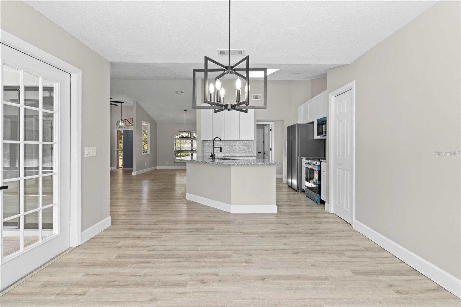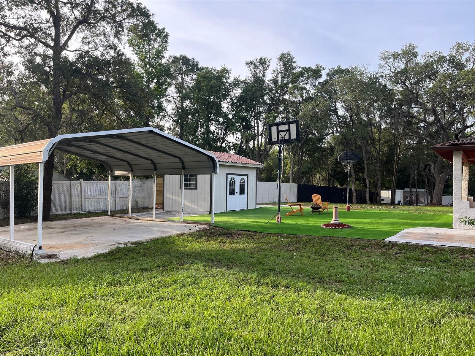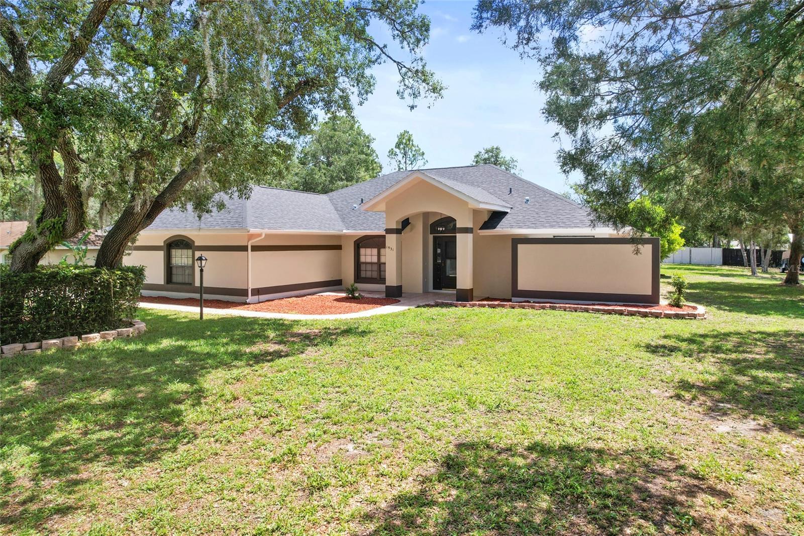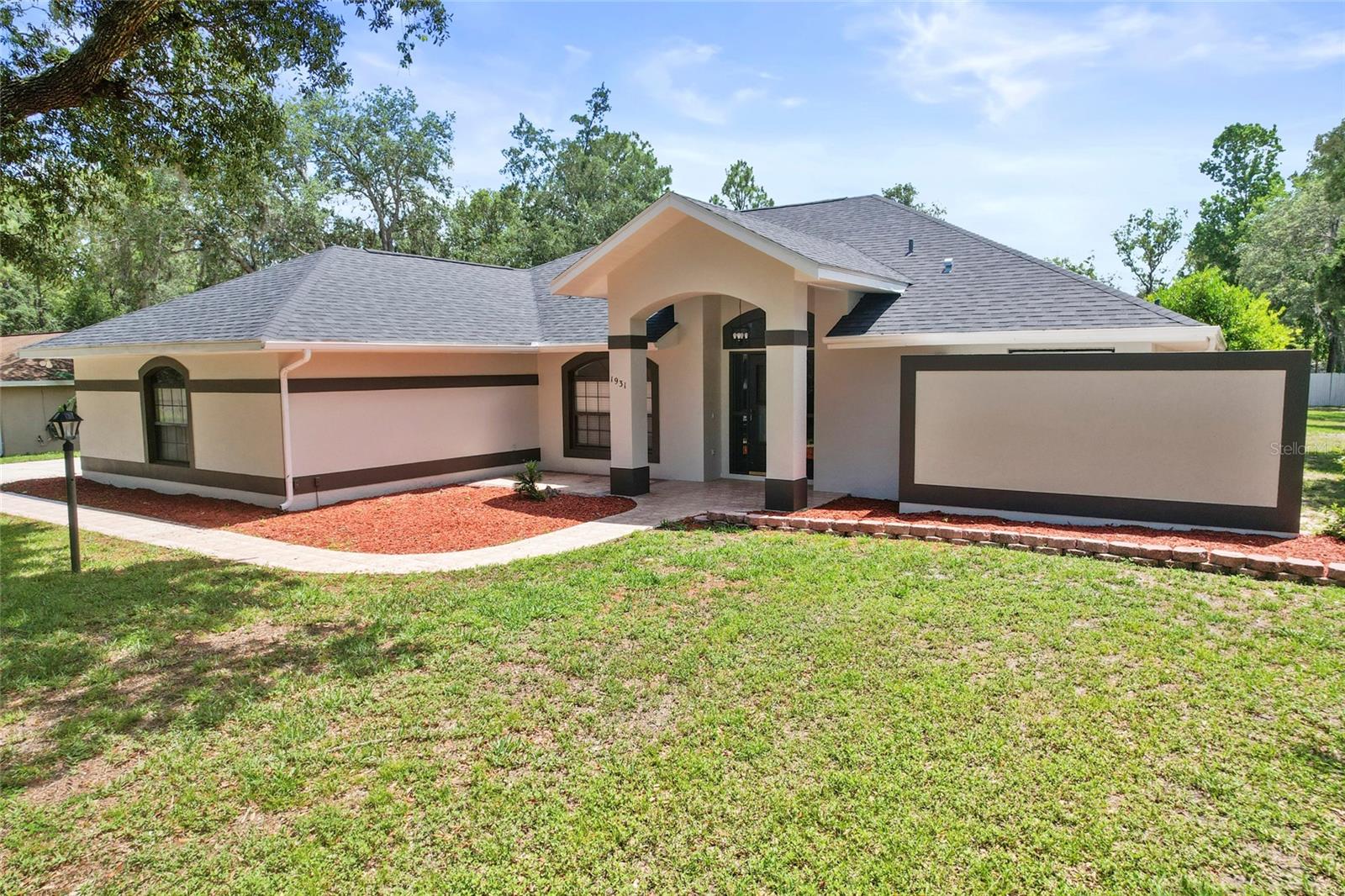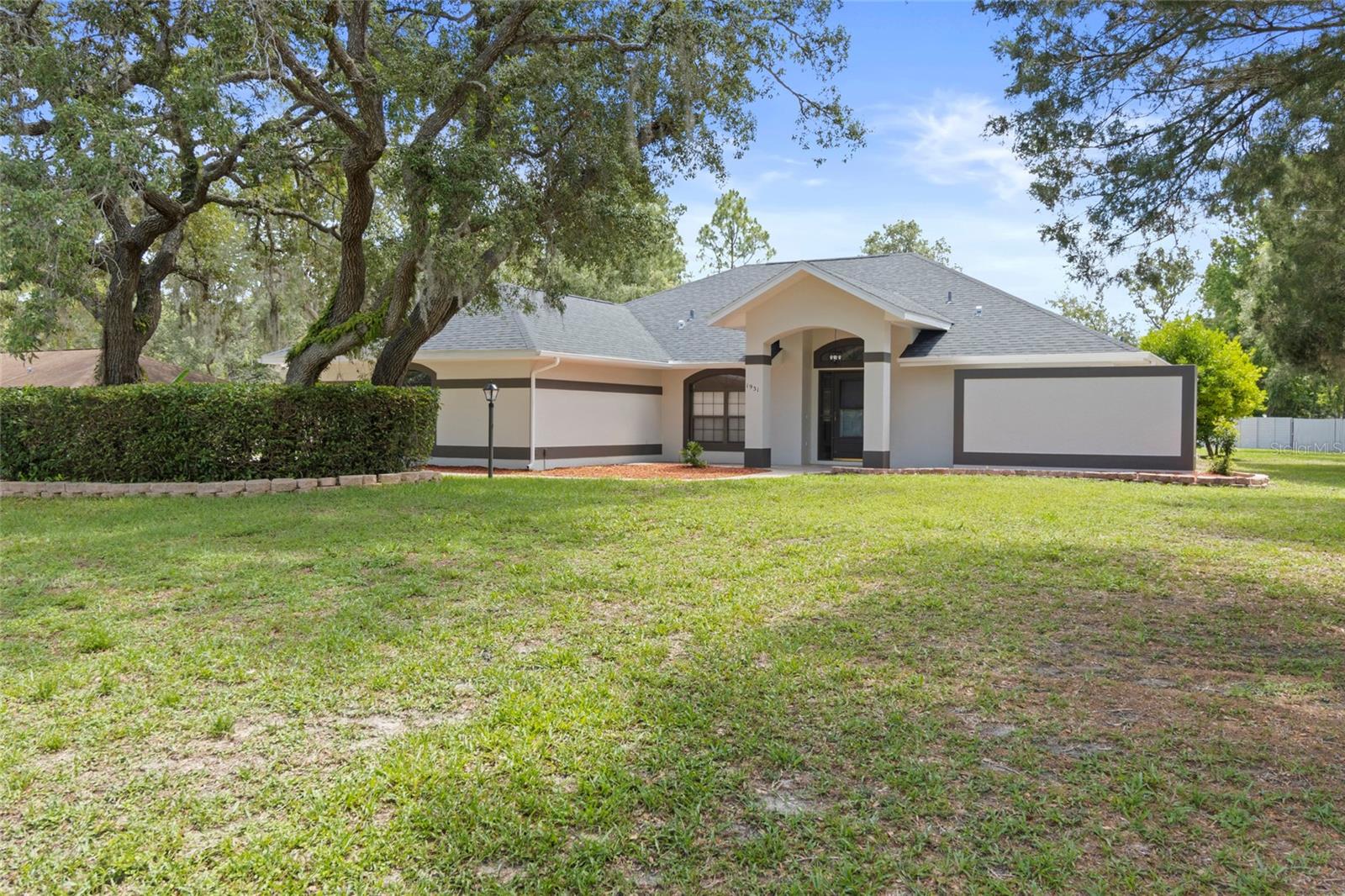Welcome to this stunningly updated 3-bedroom, 2-bathroom, 2-car garage home located in the desirable Campbell Woods community. Sitting on a spacious half-acre lot, this home features a split-bedroom floor plan and offers modern comfort and style throughout. Enjoy peace of mind with recent updates including a brand-new roof, fresh interior and exterior paint, and new laminate flooring throughout. The bright, eat-in kitchen has been fully remodeled with new cabinets, granite countertops, and stainless steel appliances—perfect for everyday living and entertaining. The formal living and dining rooms provide plenty of space for gatherings. Retreat to the large master suite, which includes a walk-in closet and a beautifully remodeled en-suite bathroom with a garden tub, separate shower, and dual vanities. A spacious sunroom leads to the private backyard, complete with a shed, carport, and plenty of room to store your boat or RV. Whether you're hosting guests, gardening, or relaxing under the Florida sun, this backyard is your personal retreat. Conveniently located near shopping, dining, medical facilities, top-rated schools, and just minutes from the new Suncoast Parkway offering easy access to Tampa. Plus, you're only a short drive away from the Gulf of Mexico, Crystal River, and world-famous natural springs perfect for boating, fishing, and outdoor adventures. Don't miss your chance to own this move-in ready gem in a peaceful and friendly neighborhood!