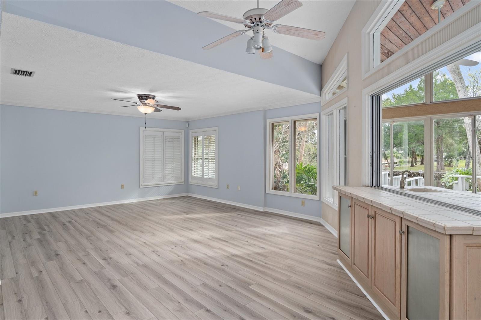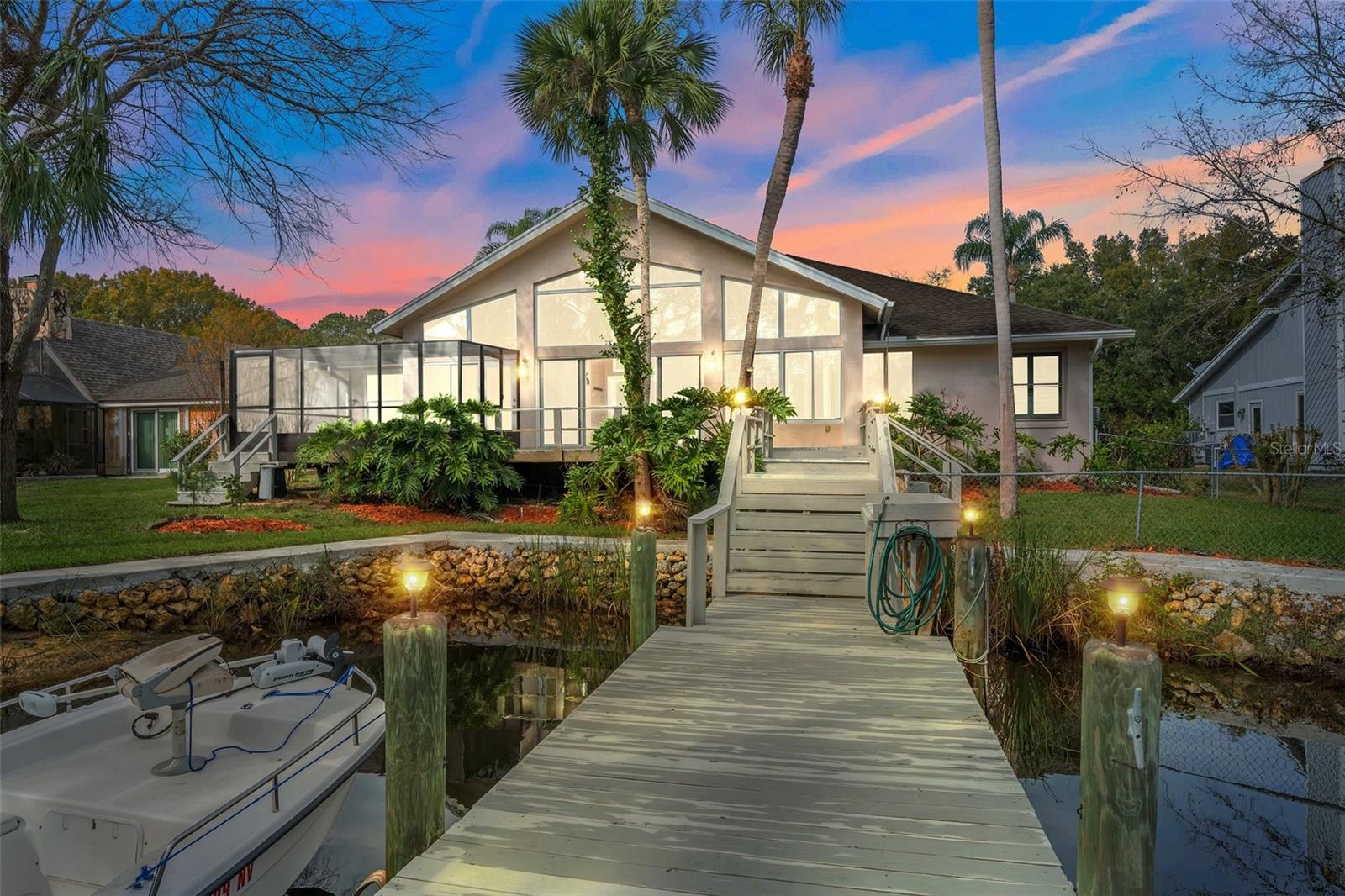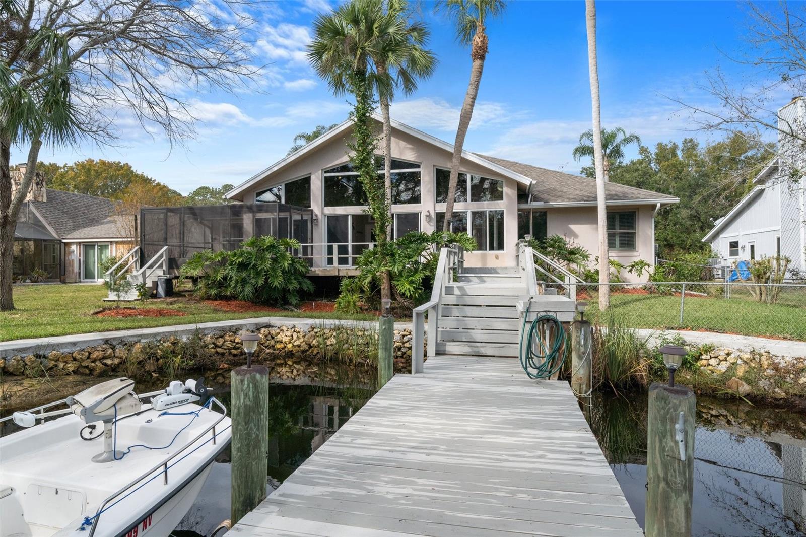 This home has Never Flooded even during Helene! Waterfront Paradise Awaits you in Riverhaven Village. As you step through the front door, you are greeted by soring ceilings and an expansive living space bathed in natural light pouring in from large windows that showcase panoramic views of the water. The open floor plan connects the living, dining, and kitchen areas, creating an ideal environment for both daily living and entertaining. A culinary delight awaits with a modern kitchen featuring real wood cabinets, granite counters, and brand-new stainless-steel appliances. The Florida room, adorned with wood ceilings, provides a panoramic view of the water, creating a space where the indoors seamlessly blend with the natural beauty outdoors. The screened porch offers more ways to entertain or just sit and have morning coffee watching the Manatees and Dolphins. . Plantation shutters grace every window, adding a touch of elegance to each room. The master suite is a sanctuary of luxury, including crown molding featuring new carpeting, a walk-in closet, and an ensuite bathroom with a rejuvenating jacuzzi tub, separate shower and dual sinks. Step outside to your own dock and waterfront backyard, where it is just minutes to the Homosassa River with no bridges and then to the Gulf of Mexico. You will be pleased with the boat dock and riprap seawall this home offers The yard has a chain link fence, sprinkler system, paver and concrete driveway, beautifully landscaped and outdoor lighting round out the elegance of this home. Come hear the sounds of the water create a soothing backdrop for relaxation in this beautiful backyard. Must see to appreciate.