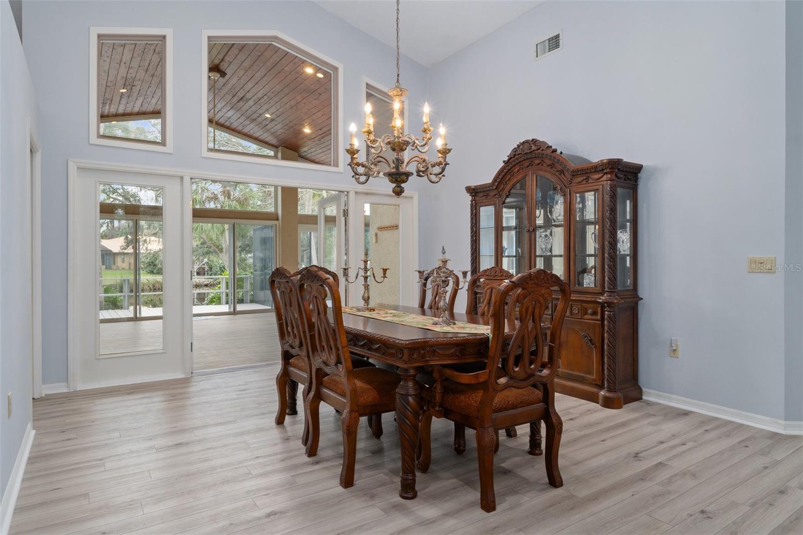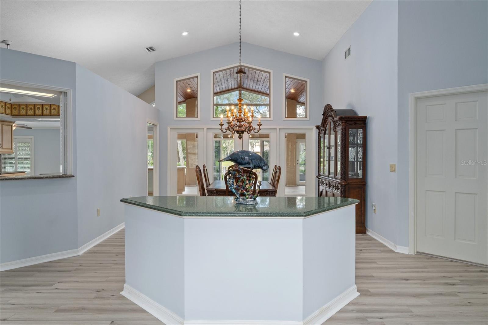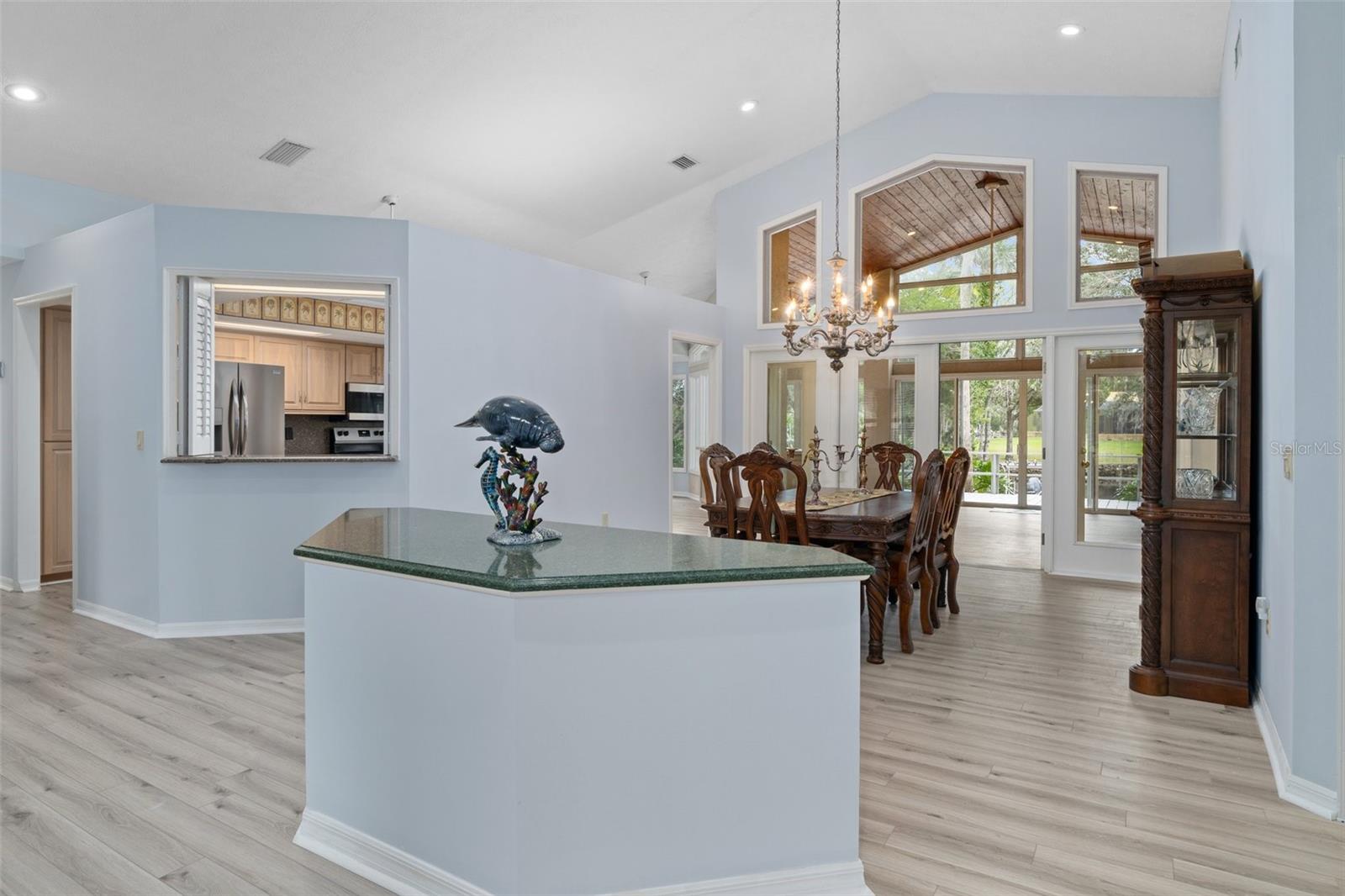 This home has Never Flooded even during Helene! Waterfront Paradise Awaits you in Riverhaven Village. As you step through the front door, you are greeted by soring ceilings and an expansive living space bathed in natural light pouring in from large windows that showcase panoramic views of the water. The open floor plan connects the living, dining, and kitchen areas, creating an ideal environment for both daily living and entertaining. A culinary delight awaits with a modern kitchen featuring real wood cabinets, granite counters, and brand-new stainless-steel appliances. The Florida room, adorned with wood ceilings, provides a panoramic view of the water, creating a space where the indoors seamlessly blend with the natural beauty outdoors. The screened porch offers more ways to entertain or just sit and have morning coffee watching the Manatees and Dolphins. . Plantation shutters grace every window, adding a touch of elegance to each room. The master suite is a sanctuary of luxury, including crown molding featuring new carpeting, a walk-in closet, and an ensuite bathroom with a rejuvenating jacuzzi tub, separate shower and dual sinks. Step outside to your own dock and waterfront backyard, where it is just minutes to the Homosassa River with no bridges and then to the Gulf of Mexico. You will be pleased with the boat dock and riprap seawall this home offers The yard has a chain link fence, sprinkler system, paver and concrete driveway, beautifully landscaped and outdoor lighting round out the elegance of this home. Come hear the sounds of the water create a soothing backdrop for relaxation in this beautiful backyard. Must see to appreciate.
